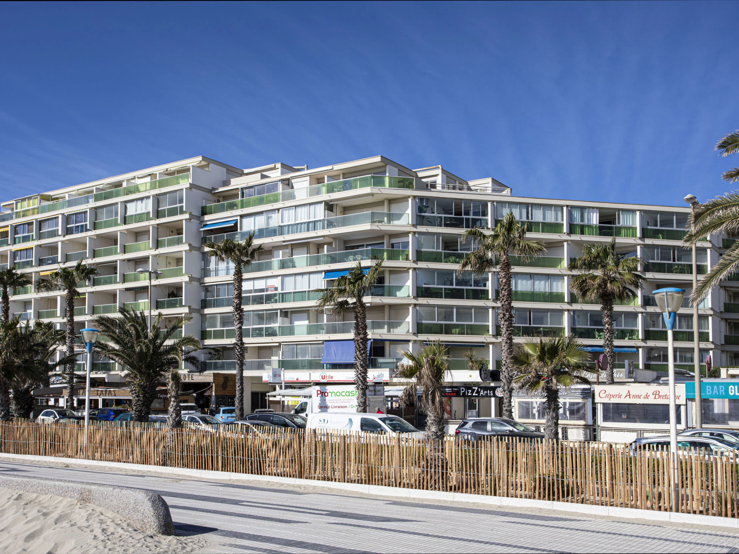 Canet Plage: Residence "Rose des Sables", 7 storeys, terraced. In the district of Canet Sud, 50 m from the sea, 50 m from the beach, road to cross. In the complex: lift. Shop, grocery, supermarket 50 m, shopping centre 8 km, restaurant, bar, bakery, bus stop 50 m, railway station "Perpignan" 12 km, sandy beach 50 m, diving center 18 km, outdoor swimming pool 3 km, indoor swimming pool 3 km, lake Etang de Canet 2 km. Sports harbour 5 km, golf course (18 hole) 8 km, sailing school 5 km, minigolf 1 km. Nearby attractions: Perpignan 12 km, Collioure 25 km, Banyuls 37 km, Espagne 35 km, Andorre 180 km, Barcelone 200 km. Well-known lakes can easily be reached: Lac de Villeneuve de la Raho 19 km, Lac de St Jean Pla de Corts 29 km, Gorges du Gouleyrous 42 km. Hiking paths: Abbaye de St Martin du Canigou 70 km, Pic du Canigou 77 km, Lac des Bouillouses 105 km. Please note: Additional accommodations can be booked.