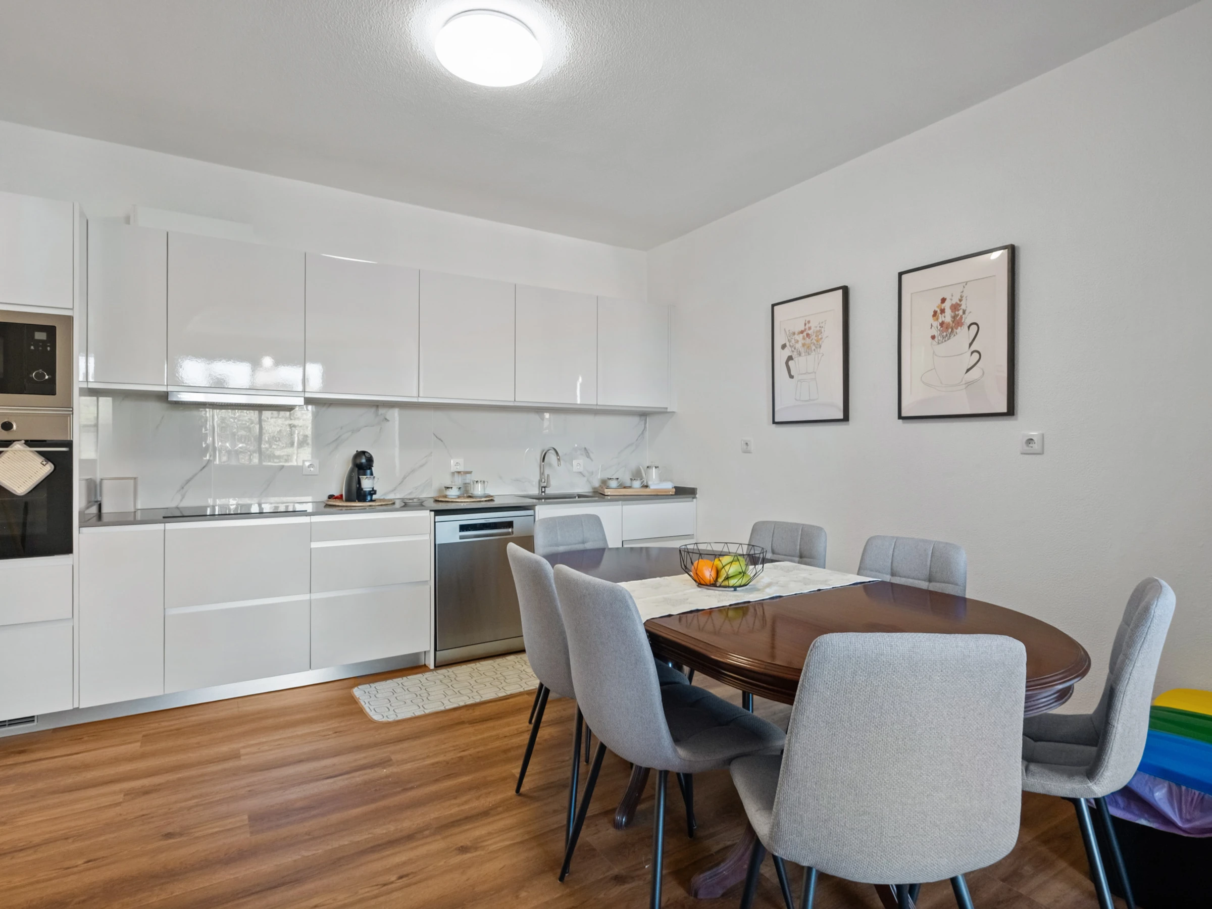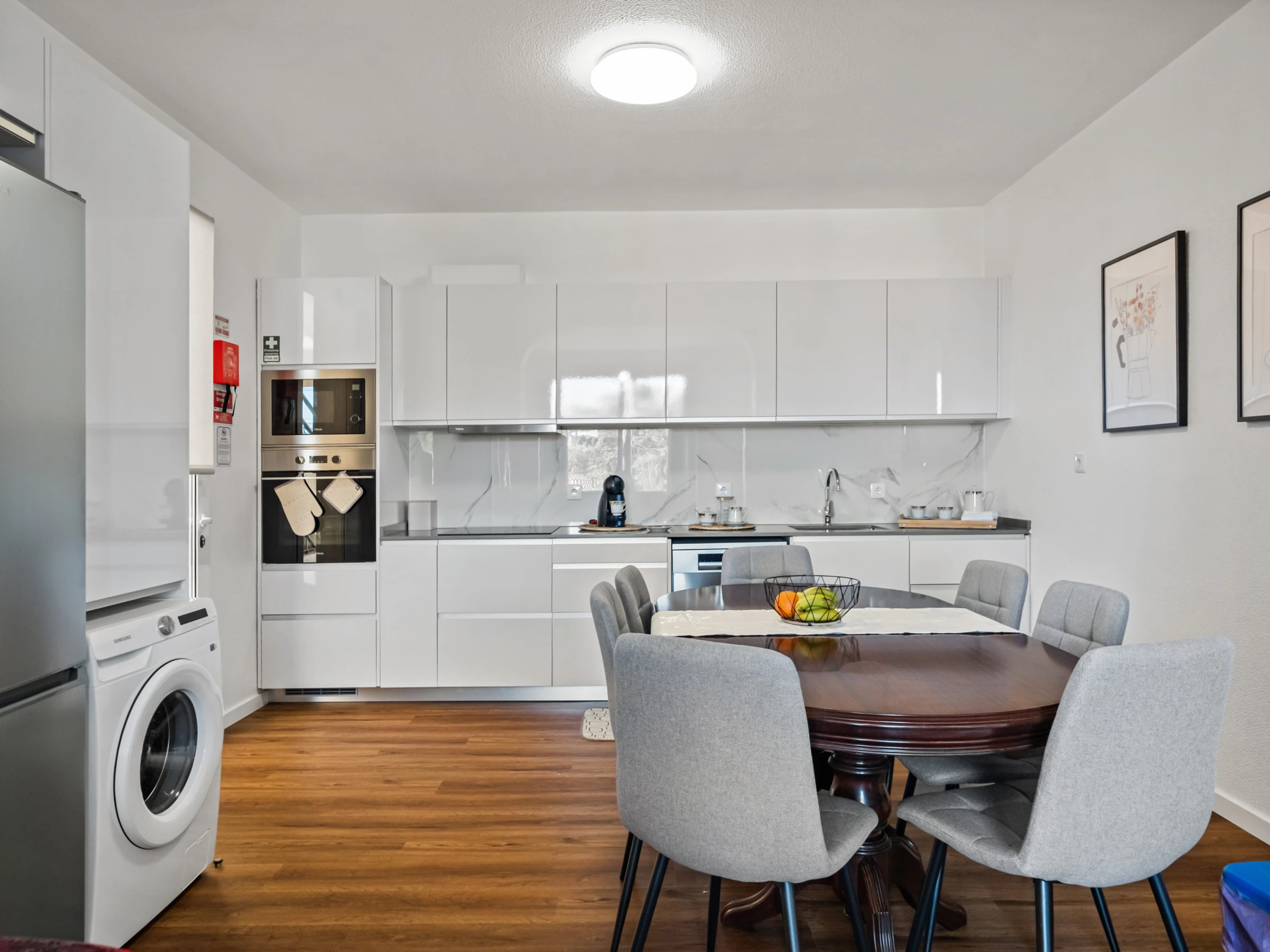 The kitchen is fully equipped, allowing you to prepare everything from quick meals to more elaborate dinners, with all the convenience. The dining table becomes the ideal meeting point to share moments with family and create unforgettable memories.