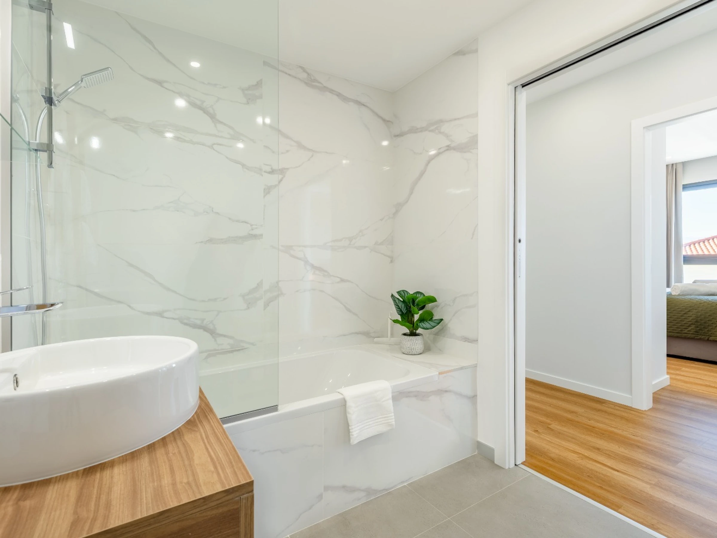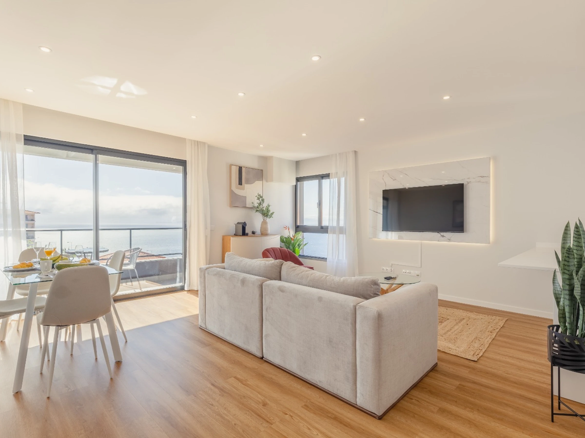 The living area includes a Smart TV with access to a box, and from the balcony you can enjoy wide views over the Atlantic Ocean. An elevator provides easy access to the apartment, and a private parking space is available in the garage.