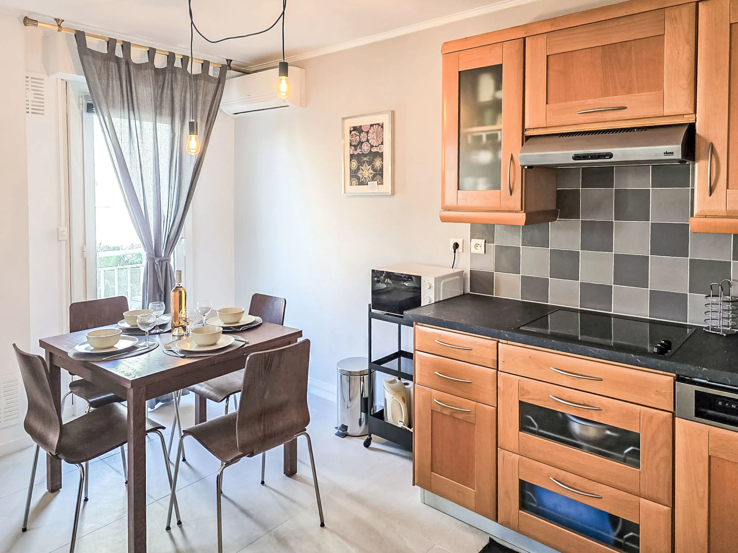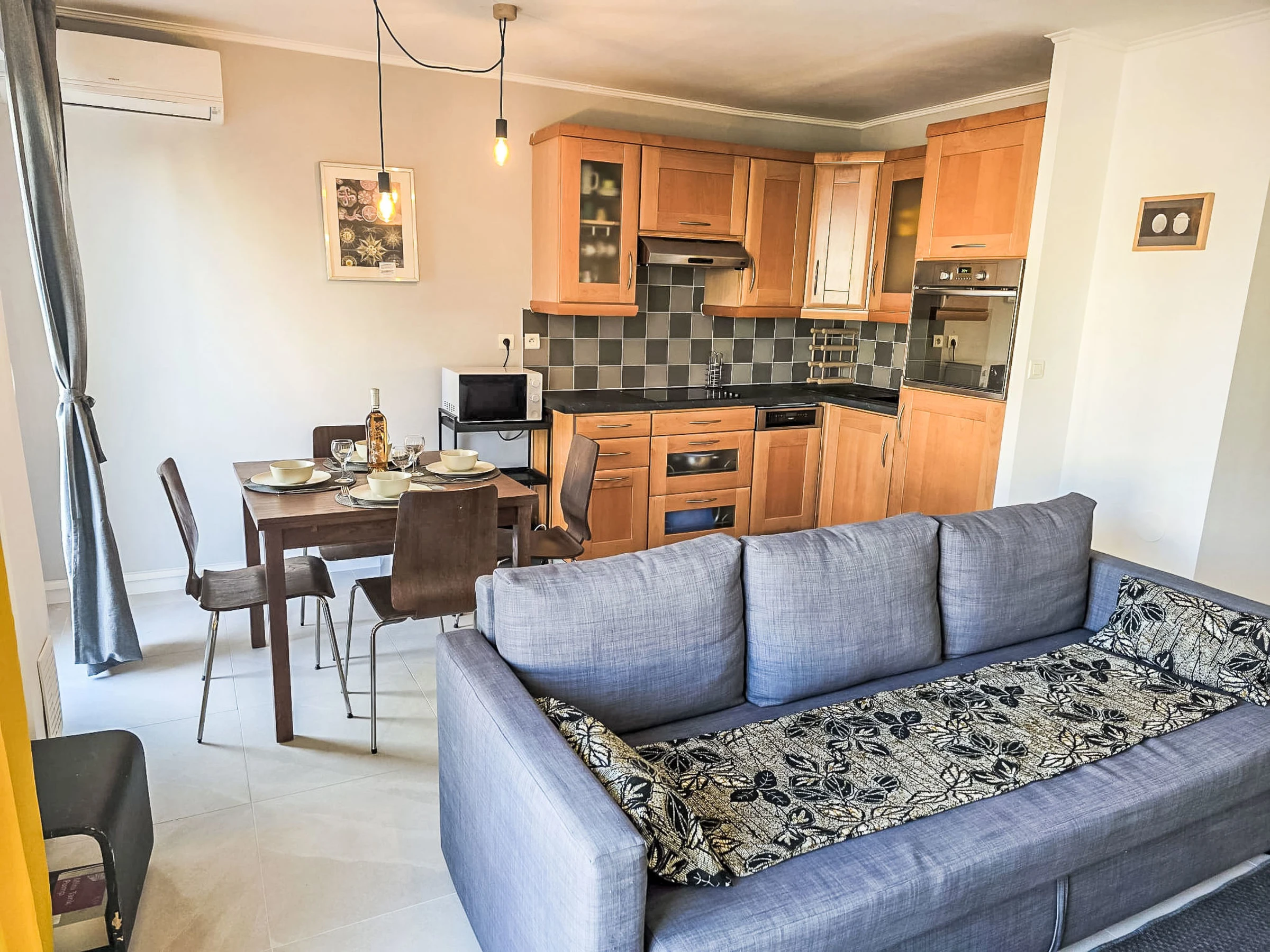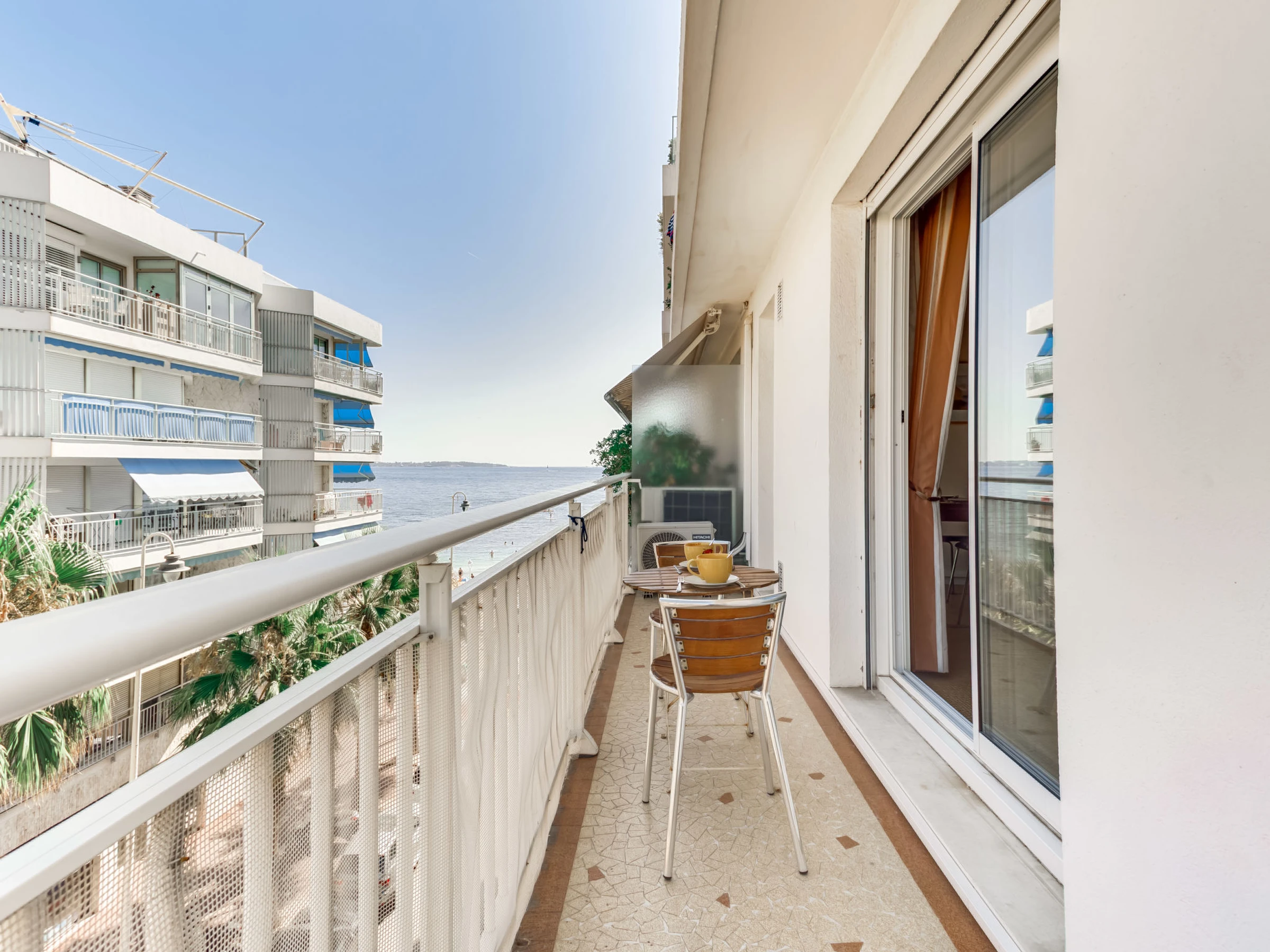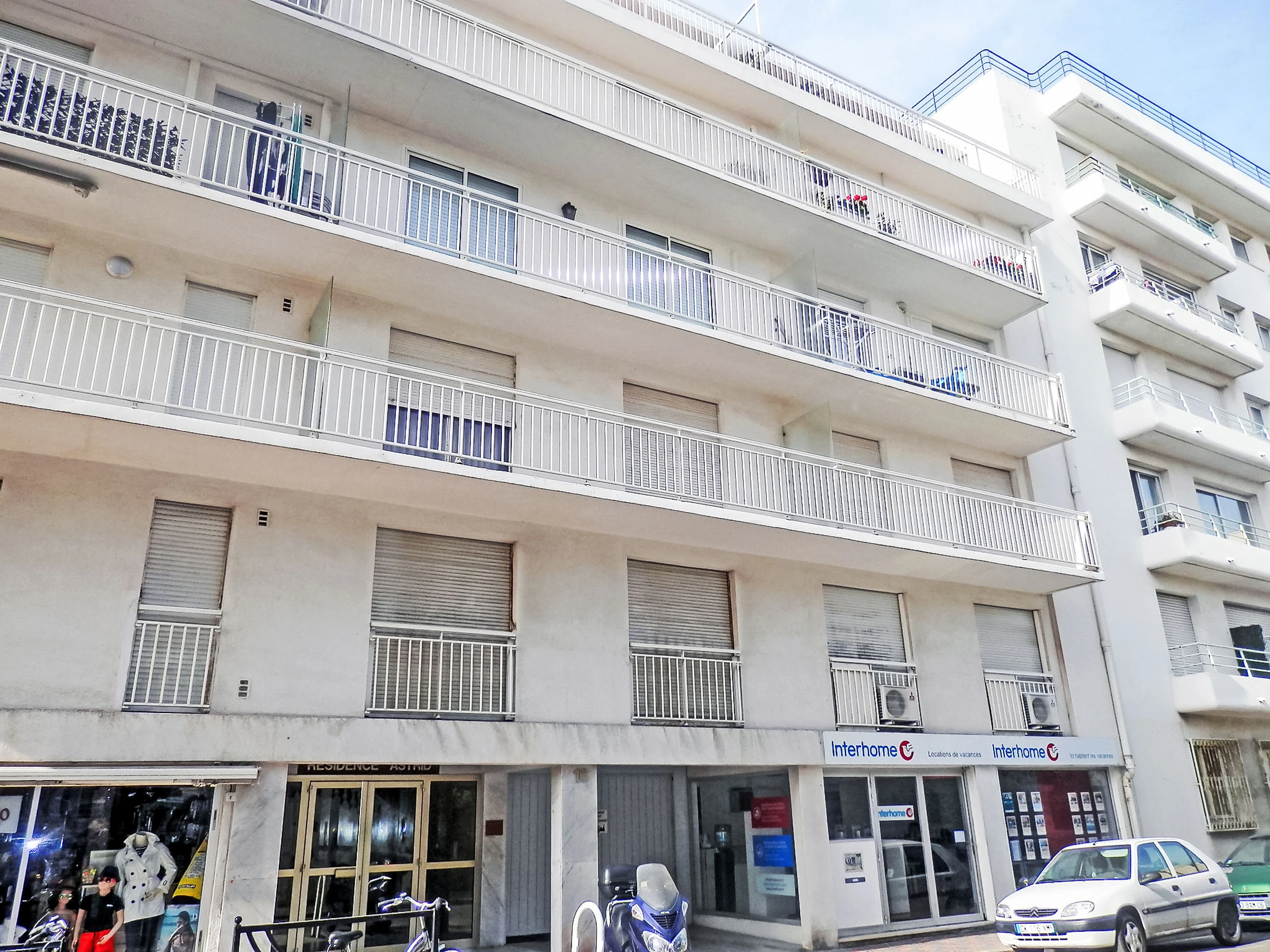 "Résidence Astrid", 2-room apartment 58 m2 on 4th floor. Renovated in 2025, very comfortable and beautiful furnishings: large living/dining room with 1 double sofabed (140 cm, length 190 cm), TV (flat screen), air conditioning. Exit to the terrace. 1 room with 1 double bed (140 cm, length 190 cm), air conditioning. Exit to the terrace. Open kitchen (oven, dishwasher, 4 ceramic glass hob hotplates, toaster, kettle, microwave, electric coffee machine, Capsules for coffee machine (Senseo) extra) with hi-fi system. Bathroom. Forced-air heating. Terrace 8 m2, north facing position. Balcony furniture. Side view of the sea. Facilities: washing machine, iron. Internet (WiFi, free). Parking space n 34 (fenced). Please note: smoke alarm. [hidden]