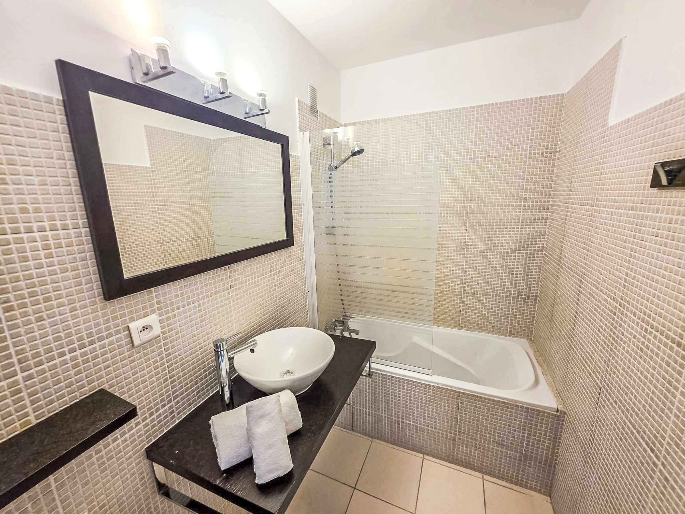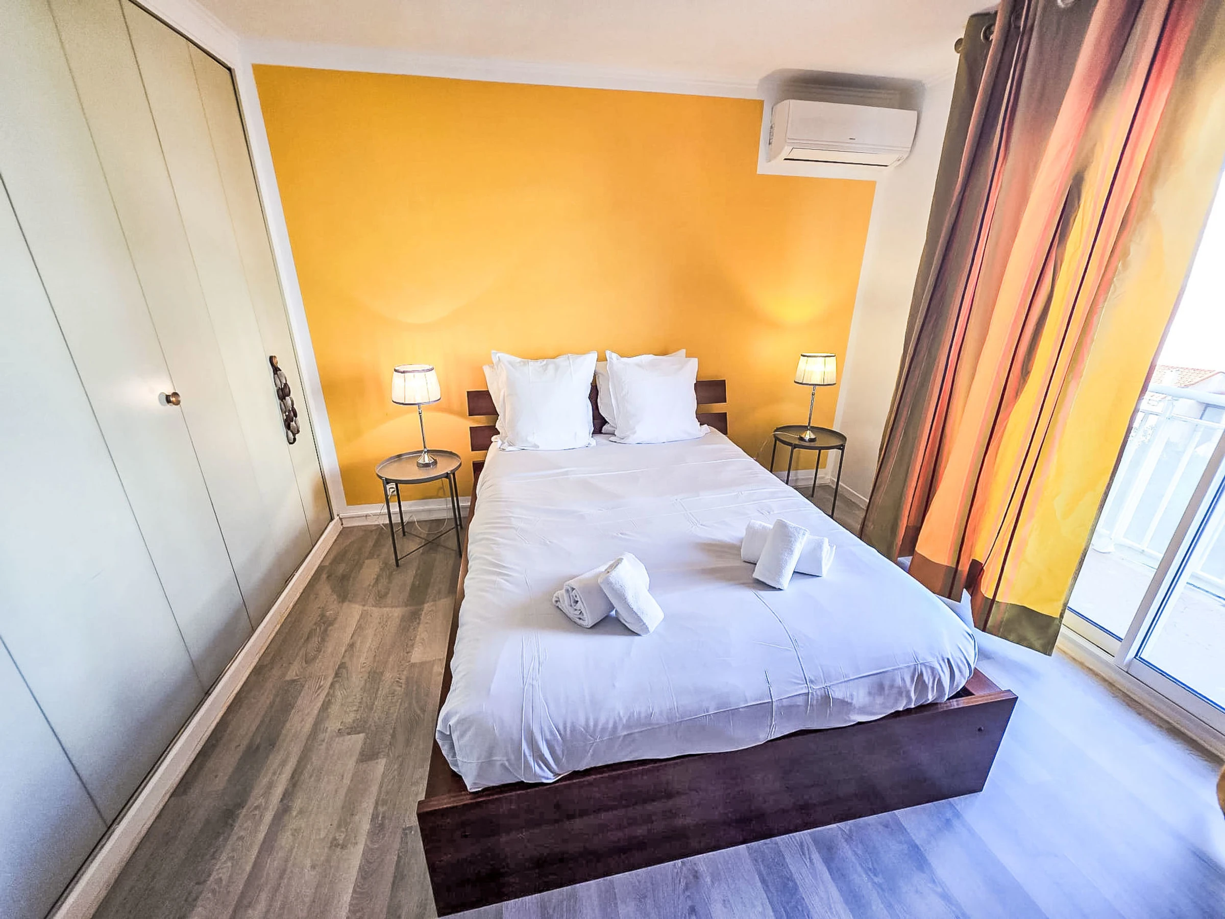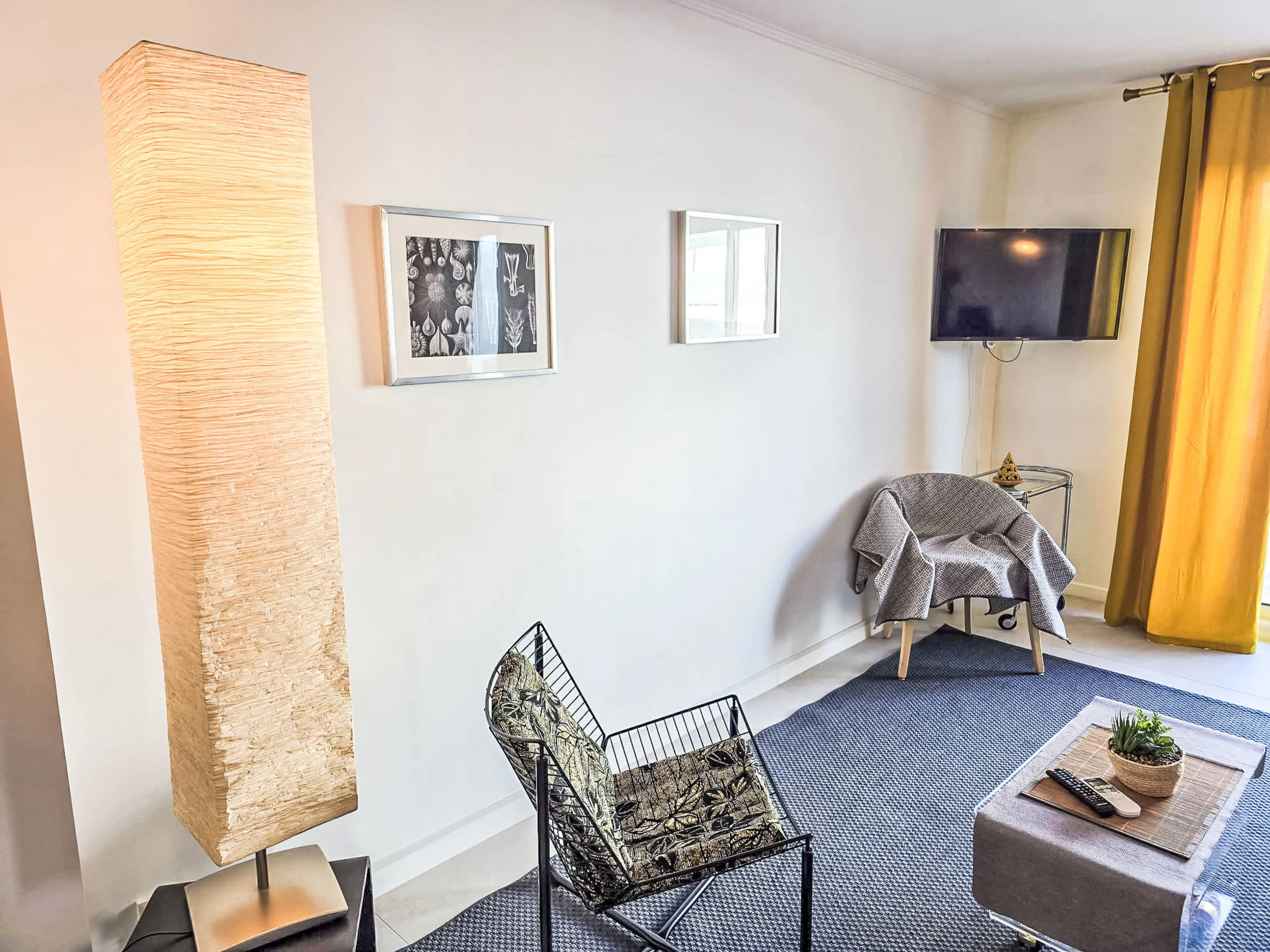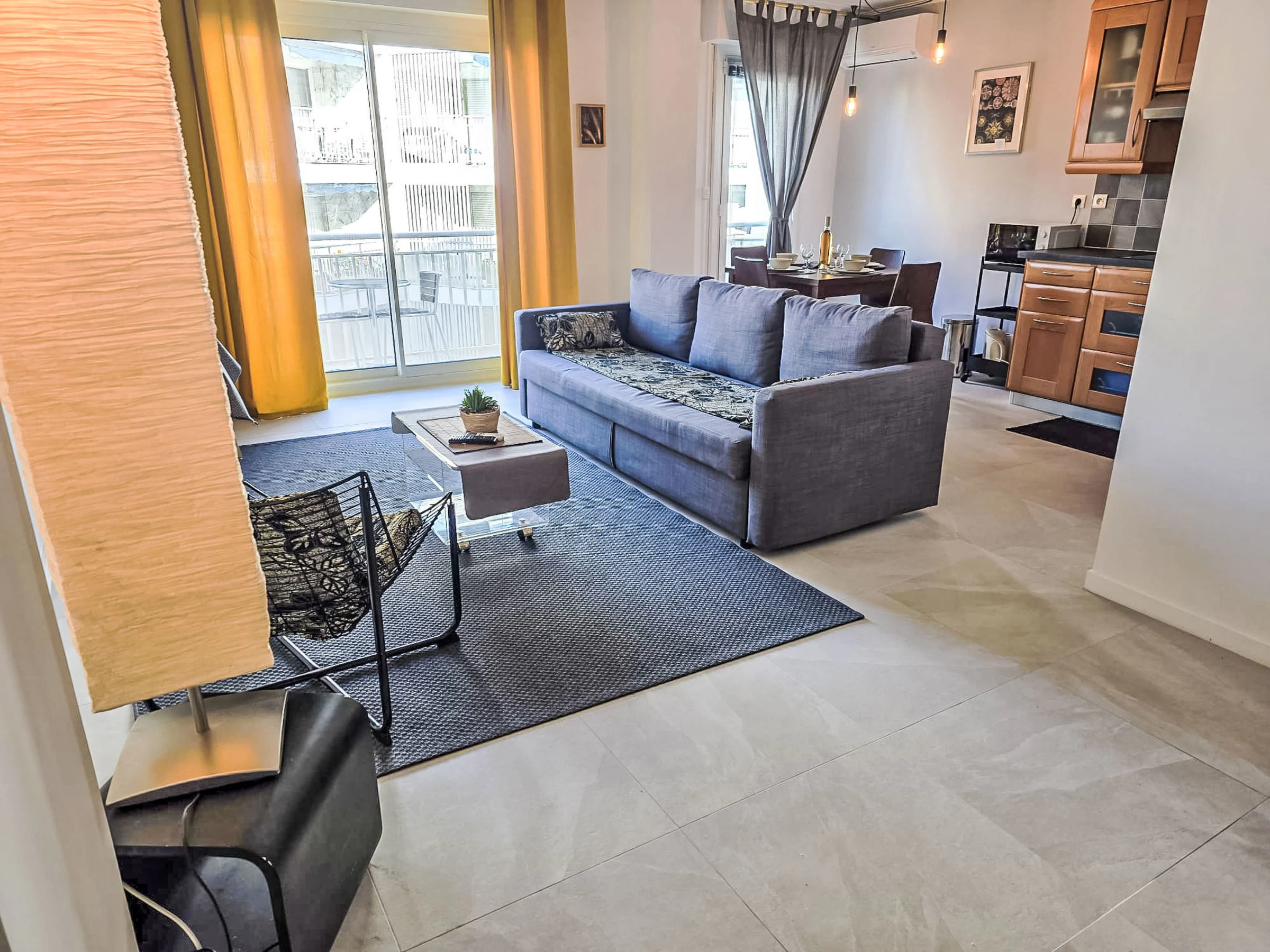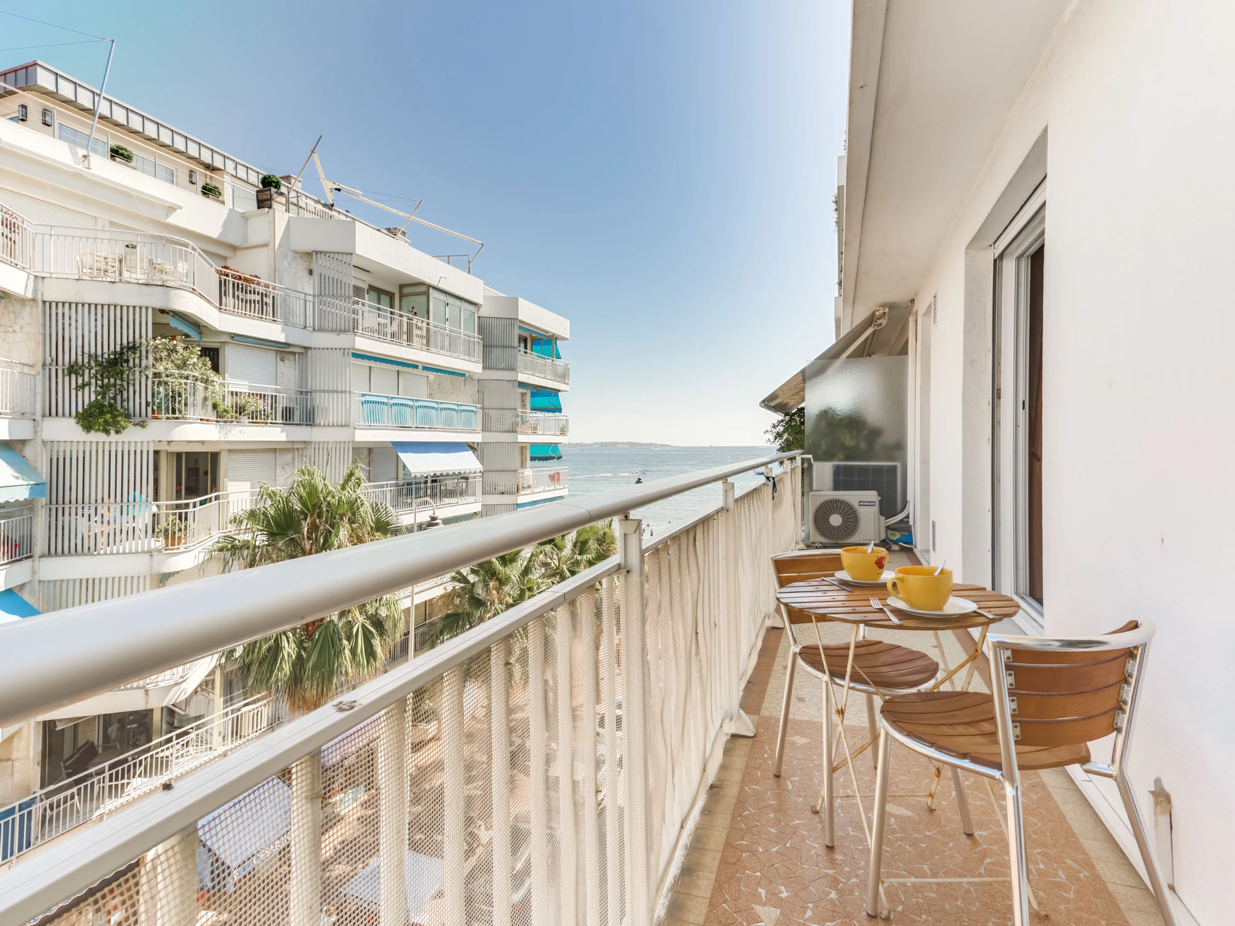 "Résidence Astrid", 2-room apartment 58 m2 on 4th floor. Renovated in 2025, very comfortable and beautiful furnishings: large living/dining room with 1 double sofabed (140 cm, length 190 cm), TV (flat screen), air conditioning. Exit to the terrace. 1 room with 1 double bed (140 cm, length 190 cm), air conditioning. Exit to the terrace. Open kitchen (oven, dishwasher, 4 ceramic glass hob hotplates, toaster, kettle, microwave, electric coffee machine, Capsules for coffee machine (Senseo) extra) with hi-fi system. Bathroom. Forced-air heating. Terrace 8 m2, north facing position. Balcony furniture. Side view of the sea. Facilities: washing machine, iron. Internet (WiFi, free). Parking space n 34 (fenced). Please note: smoke alarm. [hidden]