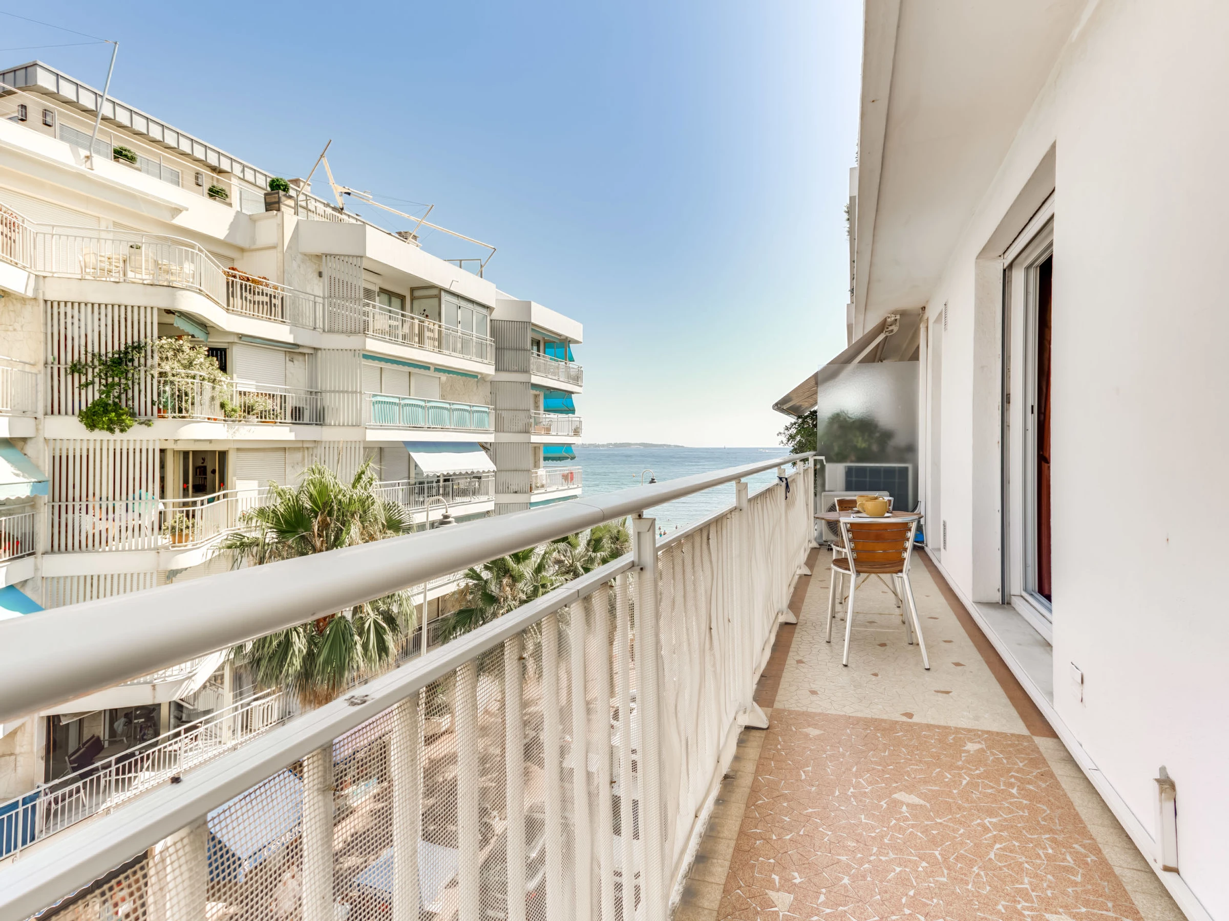 Apartment block "Reine Astrid", 5 storeys. In the district of Palm Beach, in a quiet position, 20 m from the sea, 20 m from the beach. In the complex: lift. Public parking on the road. Grocery, restaurant 50 m, bakery 10 m, bus stop "Place de l'étang", sandy beach 20 m. Sailing school 200 m. Nearby attractions: Palais des Festivals 2.5 km, Antibes 10 km, Nice 30 km, Ile de Lérins ferry de cannes 8 km, Monaco 46 km, Aqualand Fréjus 39 km. Well-known lakes can easily be reached: Lac-de-Saint Cassien 37 km, Lac de Sainte-Croix 112 km. Hiking paths: La pointe de l'Aiguille l'Estérel 15 km, Le sentier du littoral Antibes 13 km.