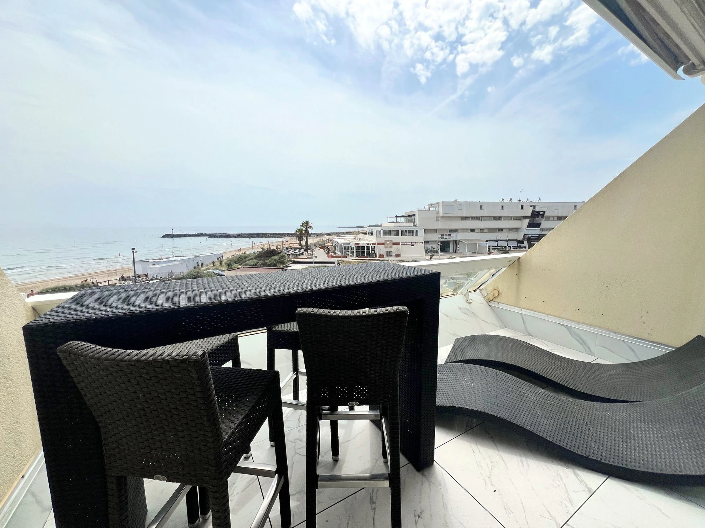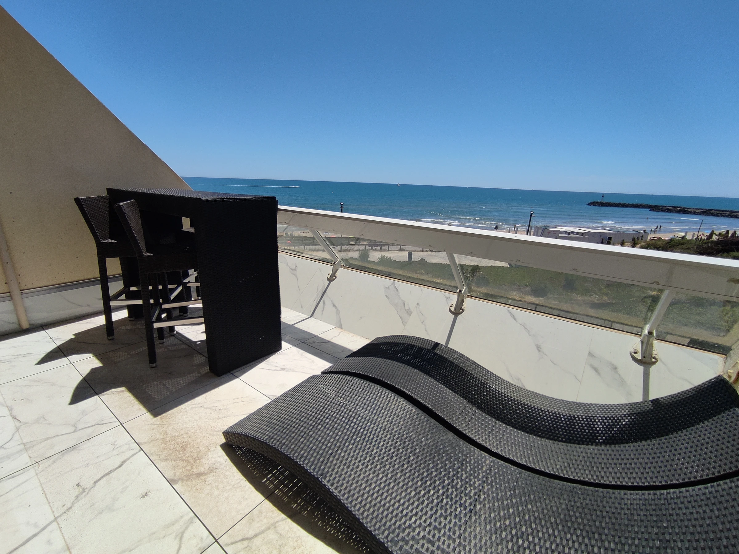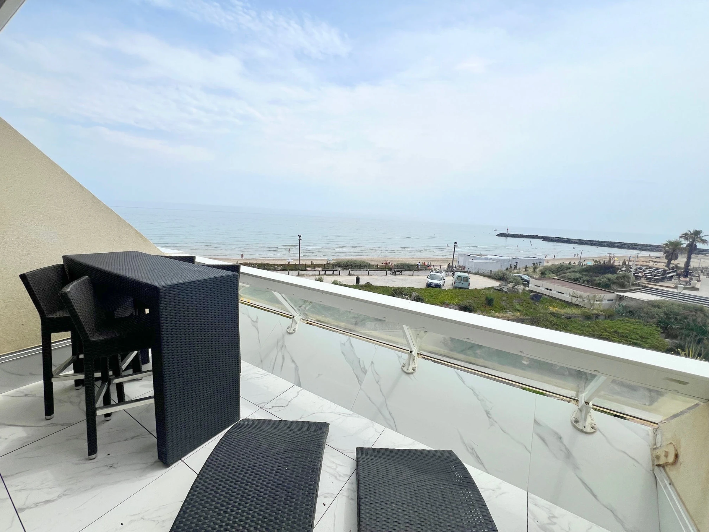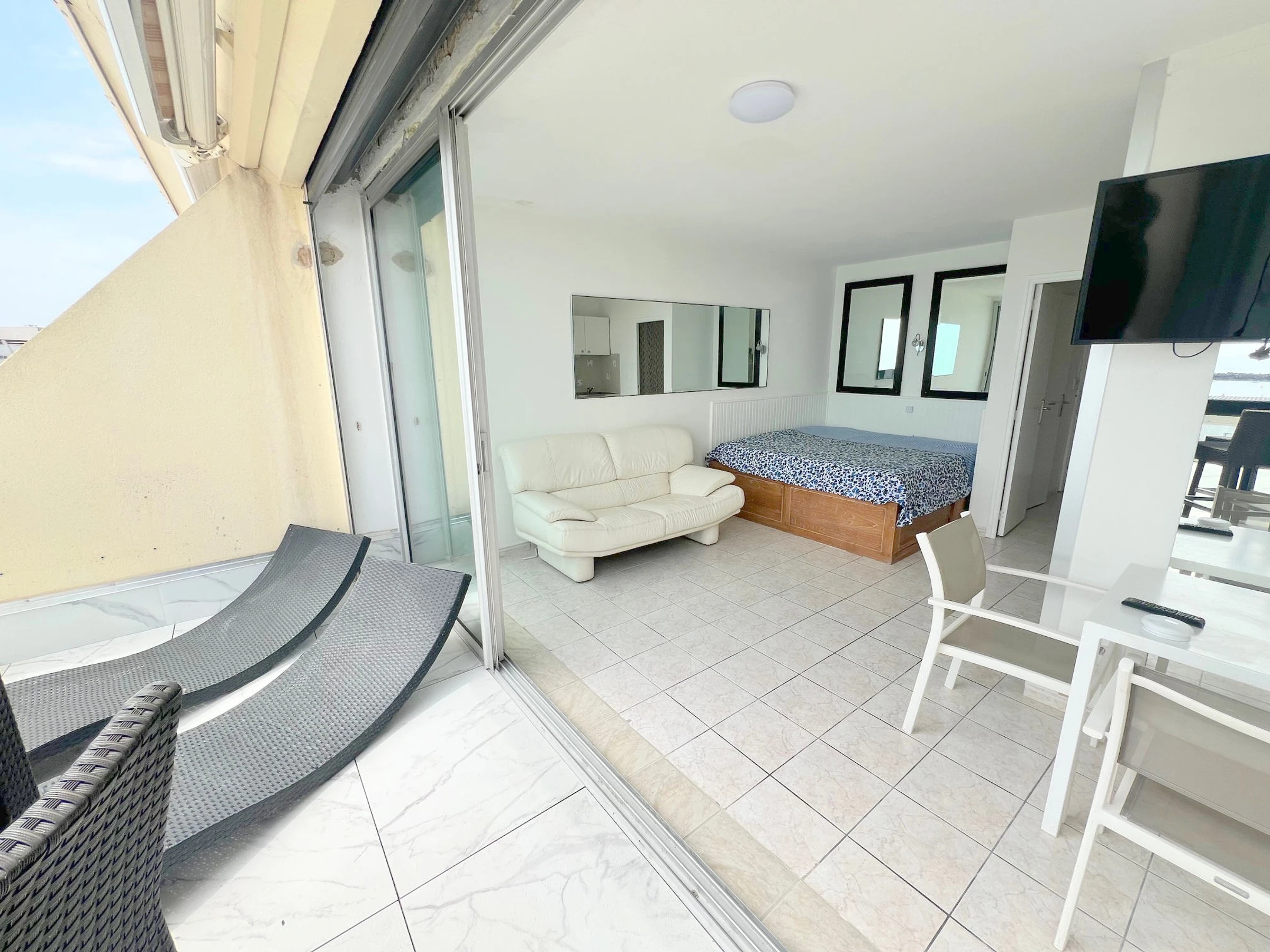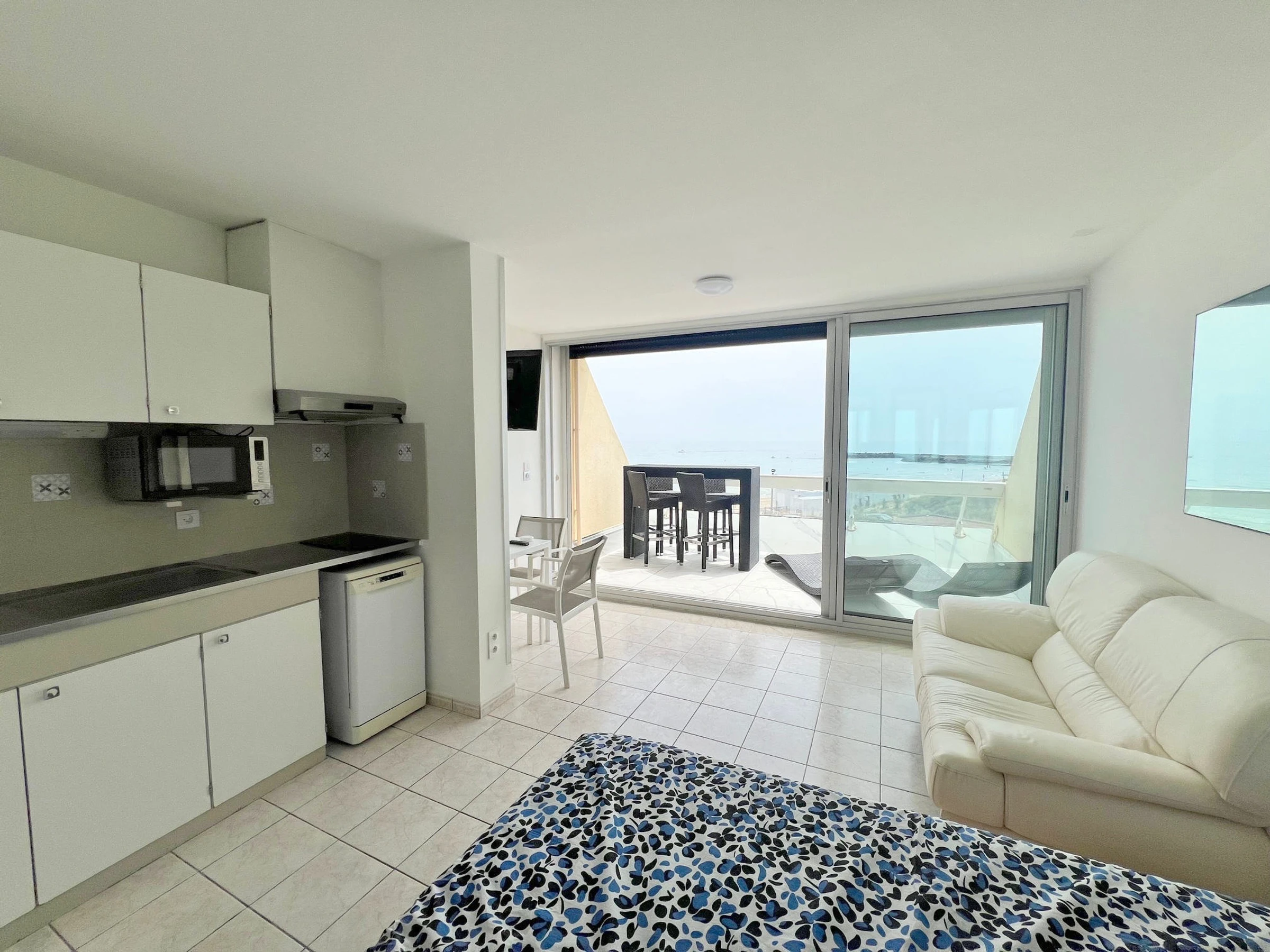 Air-conditioned studio for 2 people, located Résidence Heliopolis Building C. On the 3th floor with lift. Beautifull sea view. Living room with bed 180 cm and equipped kitchen area : dishwasher, washing machine, microwave, nespresso coffee machine. Bathroom. WC separate. Terrace. Garage N°D16.