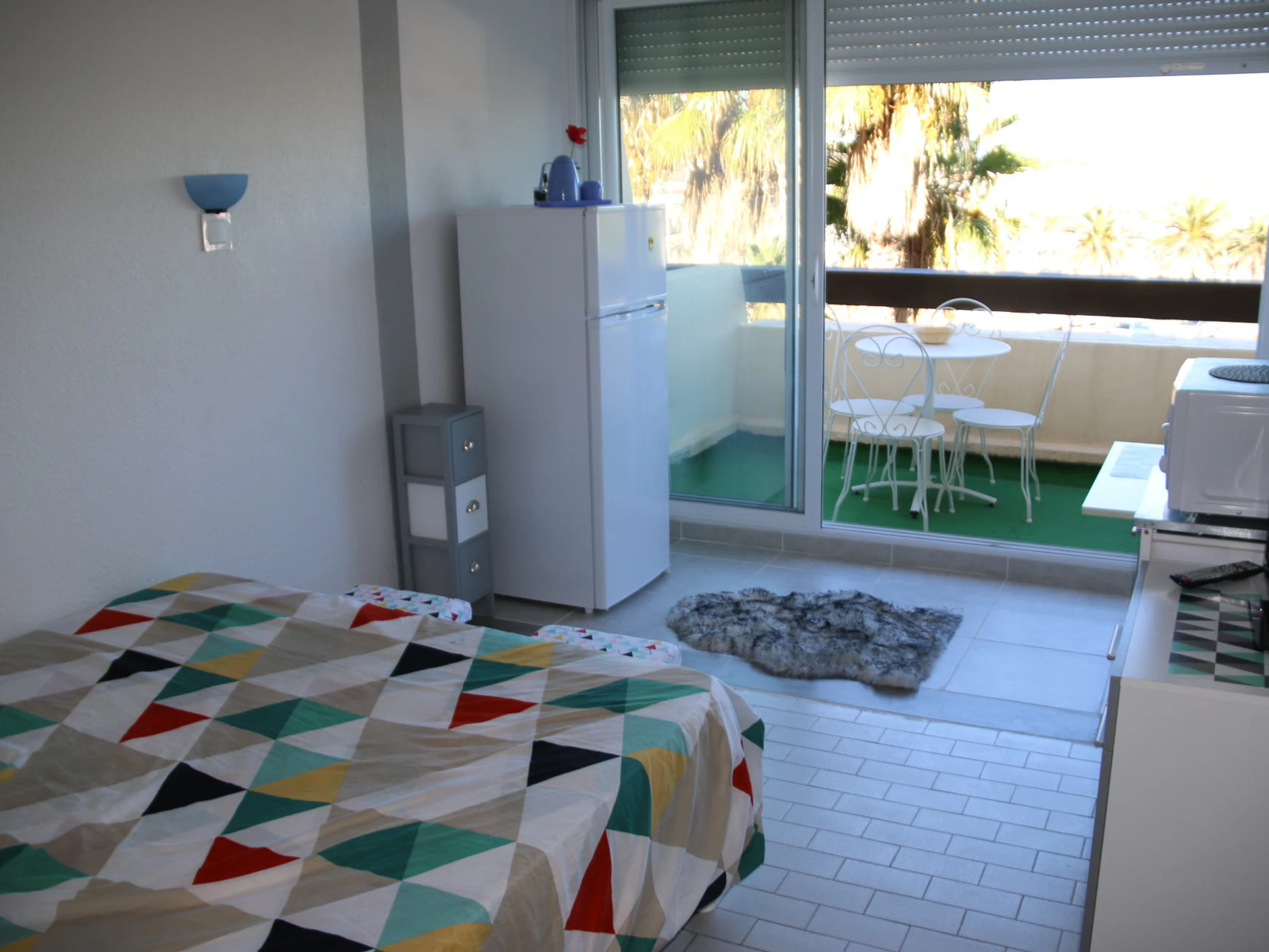 Studio for 2 people , no renovated,situated at Port Nature Colline 6, 3rd floor with lift, port side. Living room with 160cm bed. TV, fan. Kitchen area with large fridge, microwave, coffee machine, toaster. Separate bathroom and WC. West facing terrace. Parking n°283.