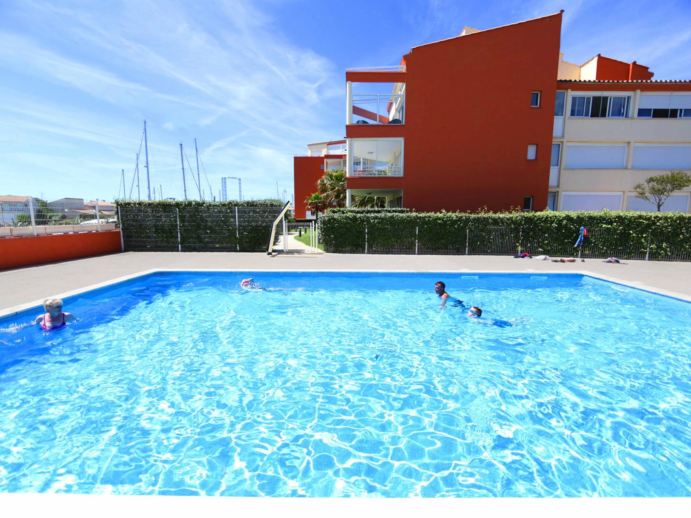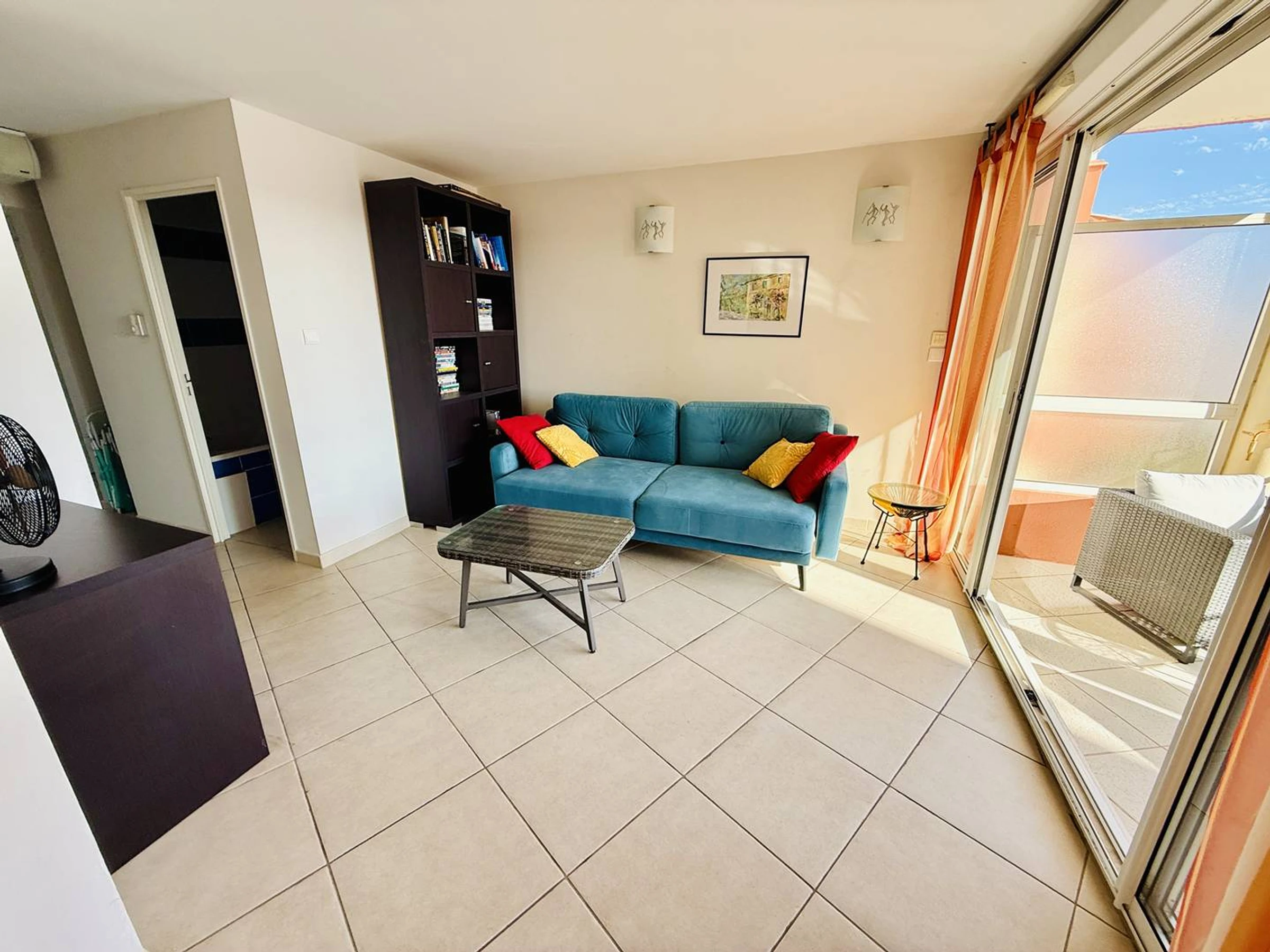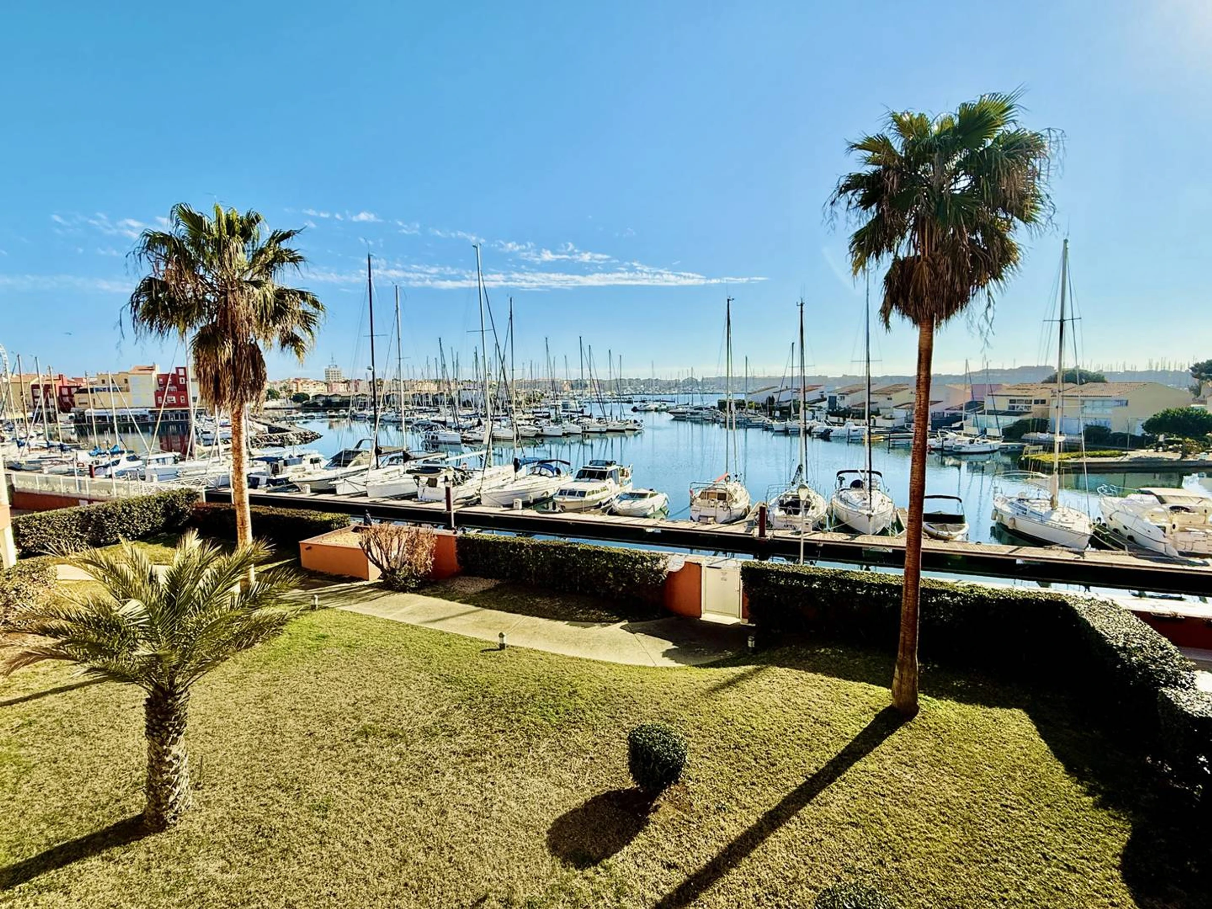 * Large living/dining room opening onto the sunny terrace with a view of the Cap d'Agde Marina.