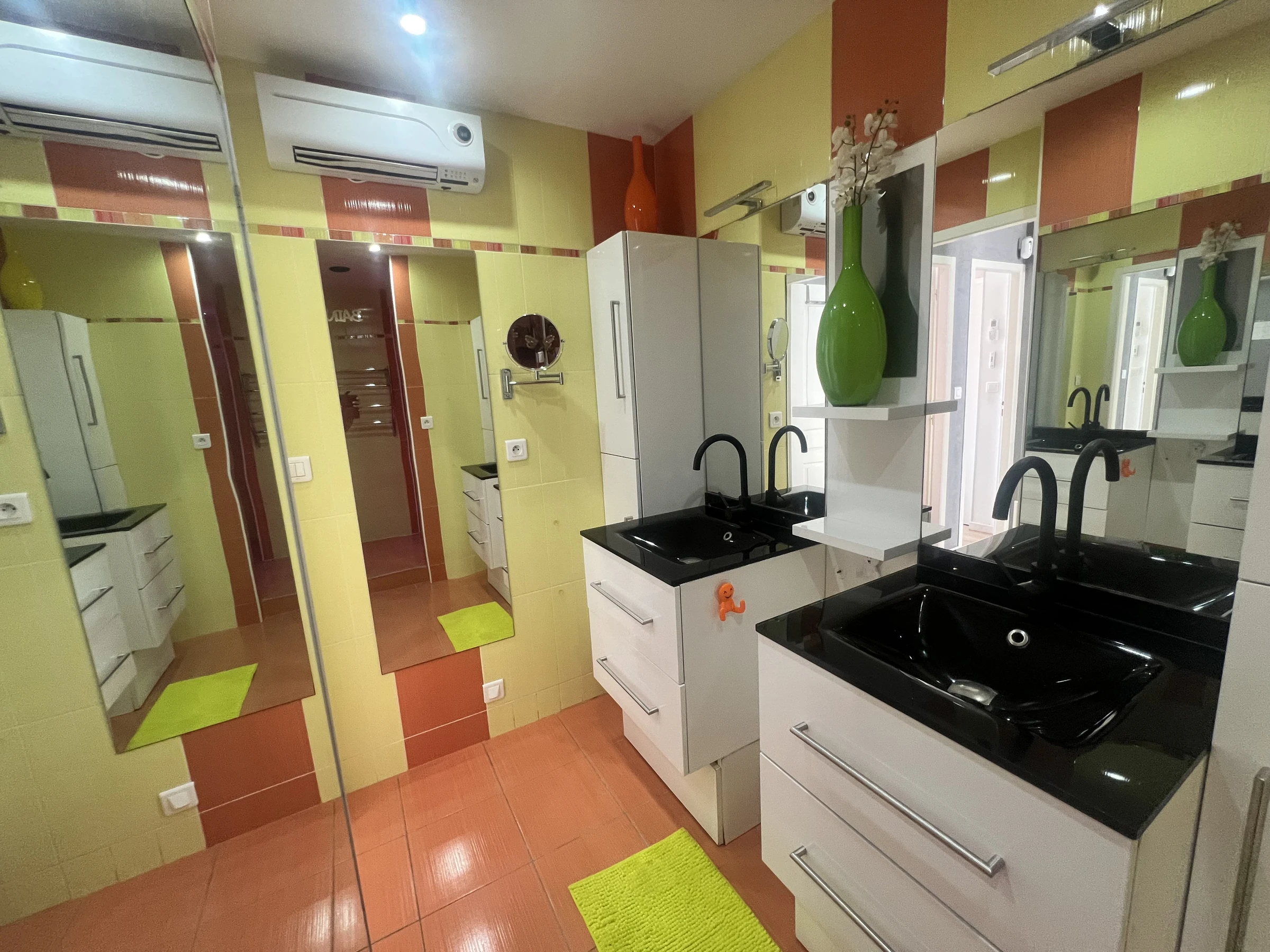 Large air-conditioned villa for 4 people in Port Nature on the ground floor with a jacuzzi and hammam. Large living room. TV, Wi-Fi. Equipped kitchen with a large refrigerator, microwave, Nepresso coffee maker, electric coffee maker, kettle, dishwasher, walk-in closet with washing machine, safe, and vacuum cleaner. One bedroom with a 160 cm bed and one bedroom with a 10 cm bed. Large bathroom with two showers. Separate toilet. Two terraces, one with an awning. Parking space n° 486 at the end of the channel.