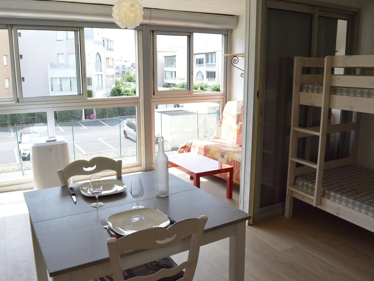 Une loggia lumineuse utilisée en coin repas,exposition Sud. Piscine au sein de la résidence ainsi que l'accès gratuit au cours de tennis. Climatiseur mobile.