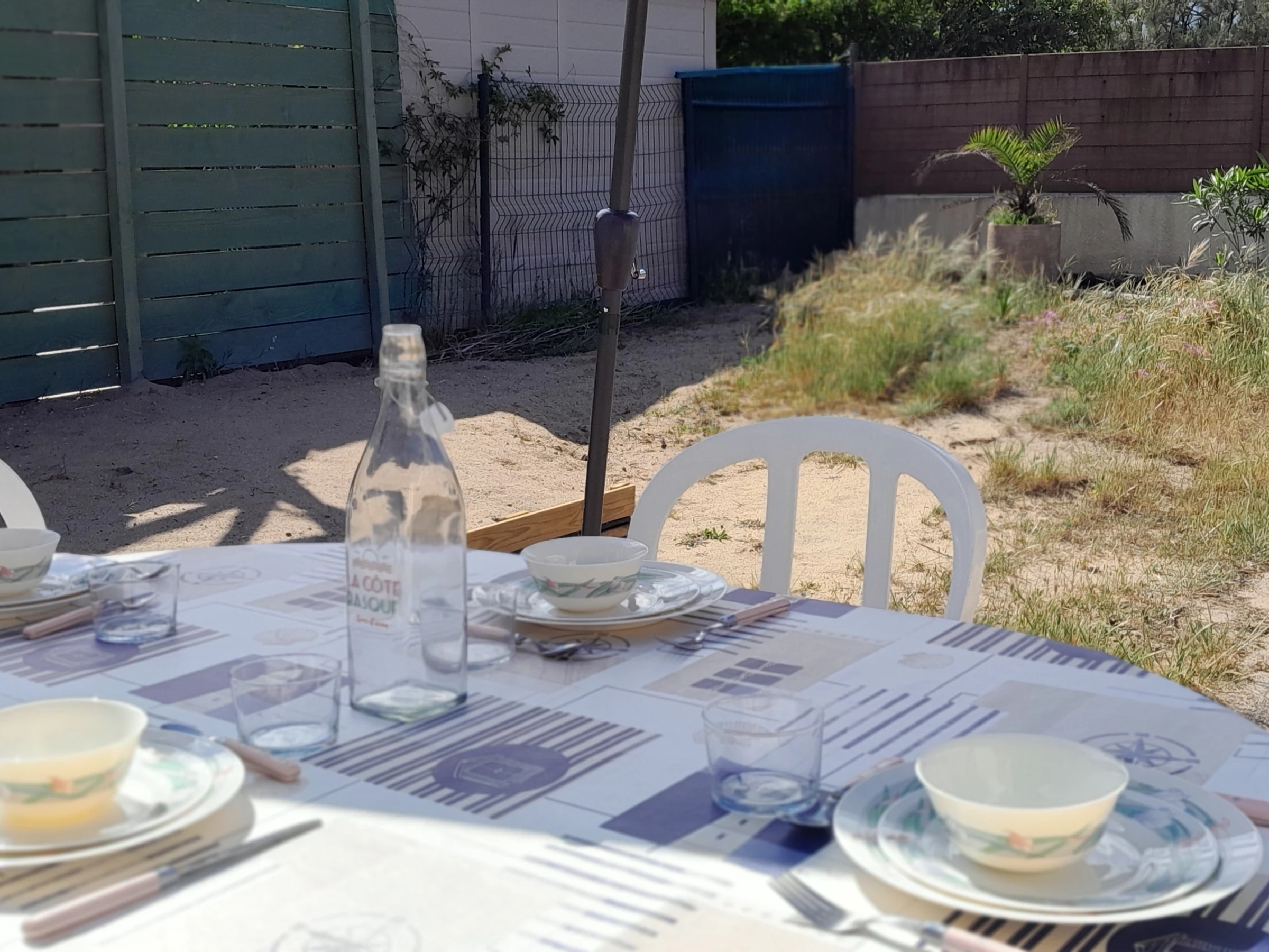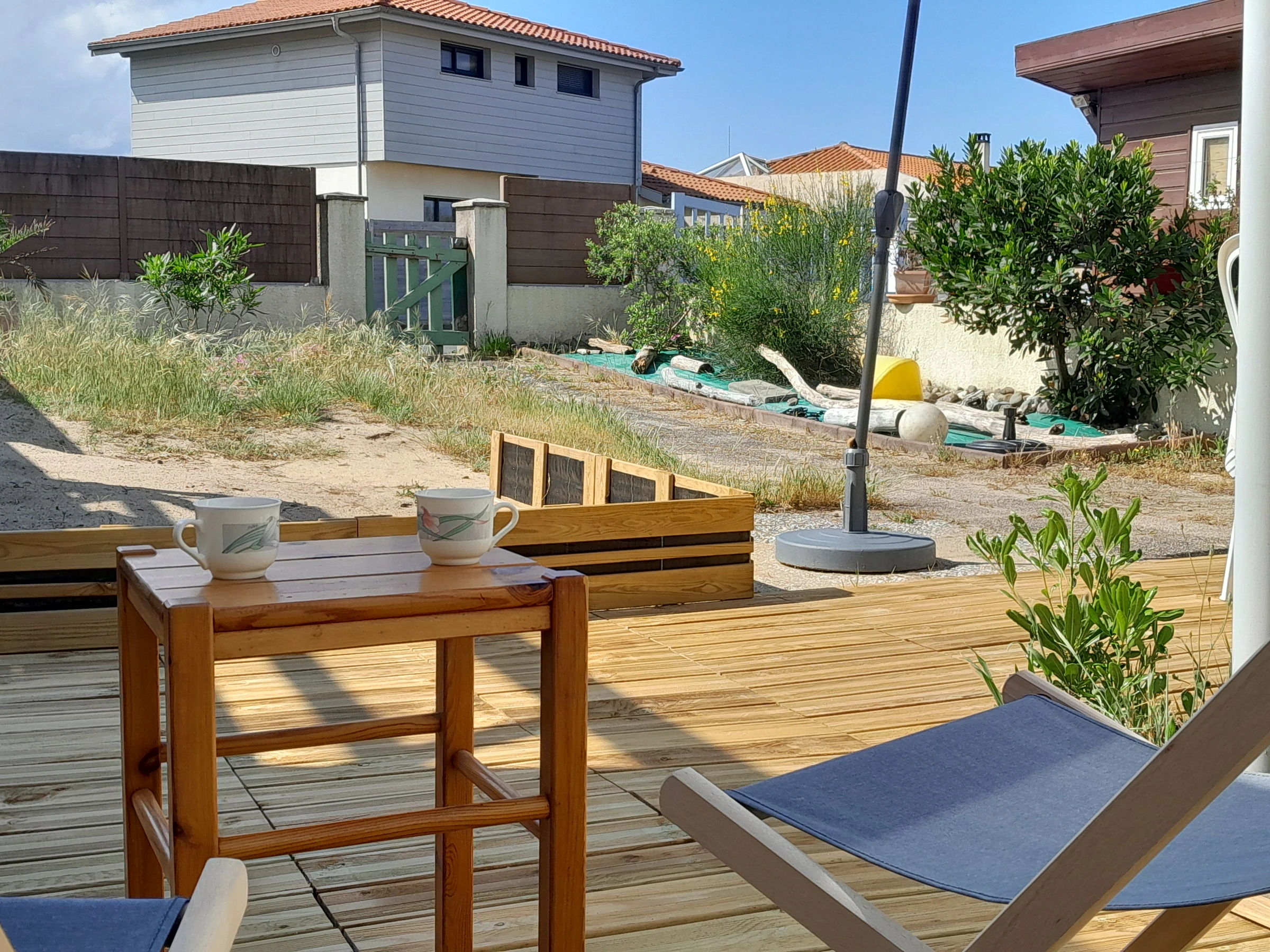 In a privileged area, this little haven of peace can accommodate up to 4 people. You will have a bright living room with a large sofa as well as a small, fully equipped open kitchen (filter coffee maker, dishwasher, multifunction microwave). The sleeping area includes a 160 cm bed on the mezzanine as well as a cabin area with two 90 cm bunk beds. A bathroom with WC completes the ensemble. The accommodation is equipped with plenty of storage space. You will have a cozy and bright veranda opening onto the garden with a pretty wooden terrace equipped with a dining table. The advantage of this accommodation is its location facing the beach of the slope in Capbreton. Private parking space is available in front of the house. You can only be seduced by the location as well as the services offered by this accommodation, ideal for holidays with family or friends. End-of-stay cleaning is included in the reservation price. To be paid before your arrival: tourist tax and security deposit via secure link and credit card. Optional services to be arranged before arrival:
