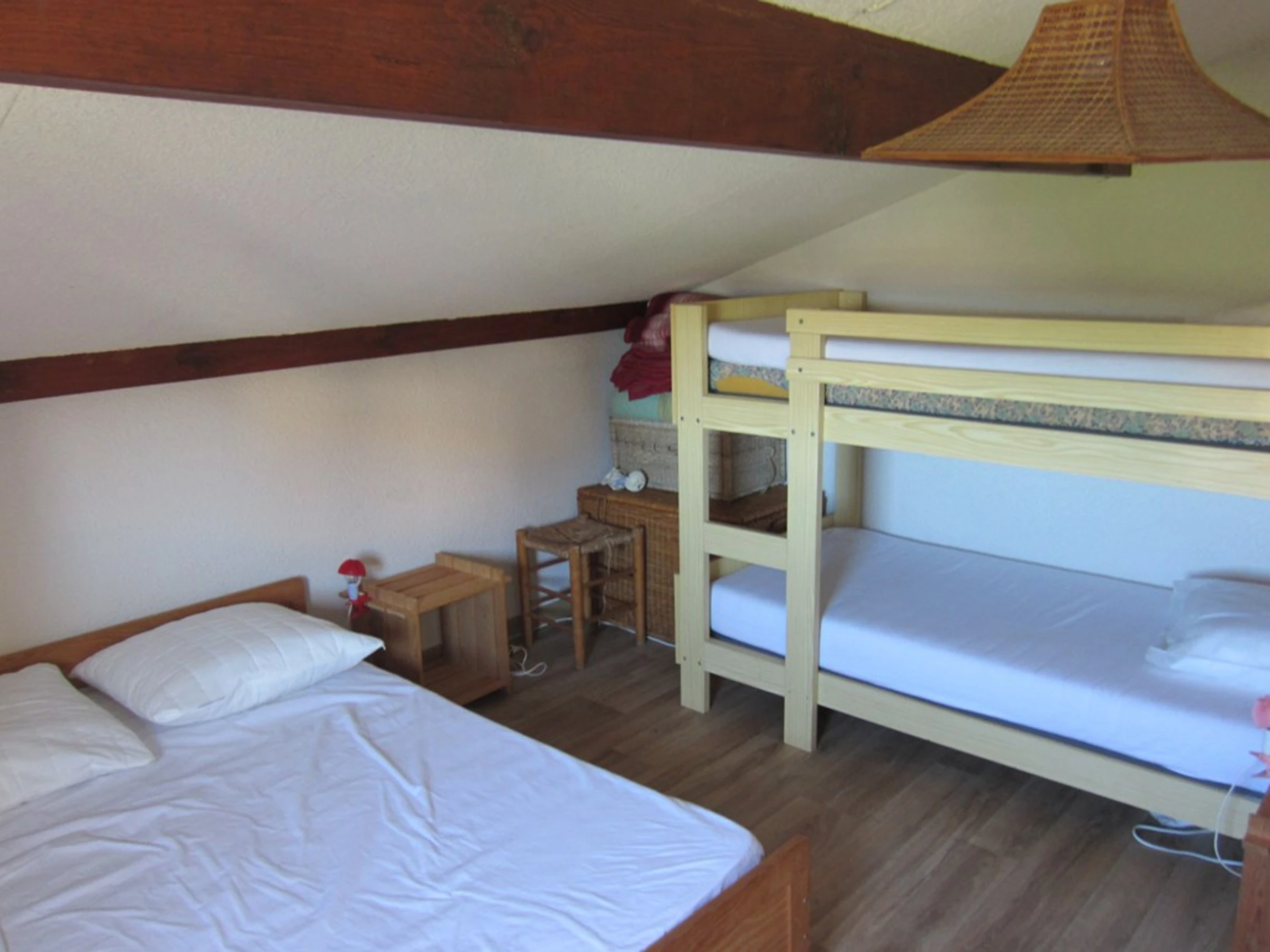 In duplex by staircase miller: a closed mezzanine making attic room (maximum height 2.50, mini 1.28): 1 bed in 140 and 1 bed in 80. The set is simple, the standard equipment but well exposed to the South with view on the harbor channel.