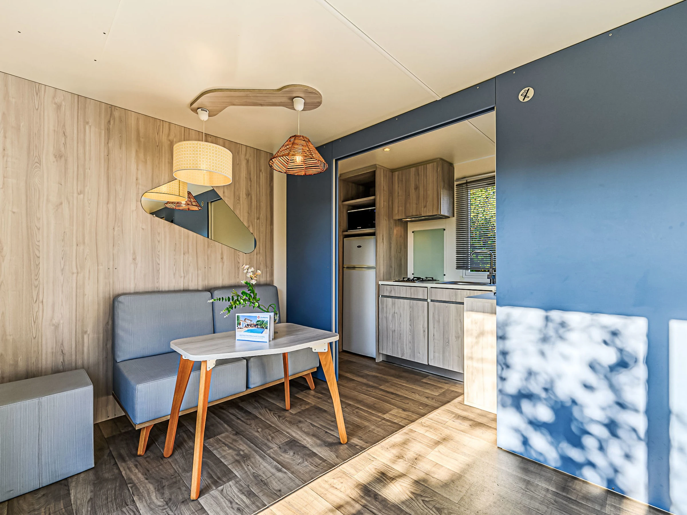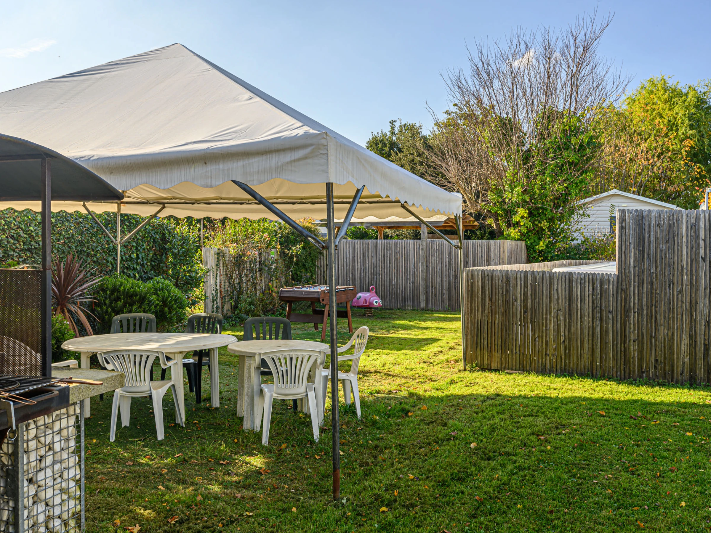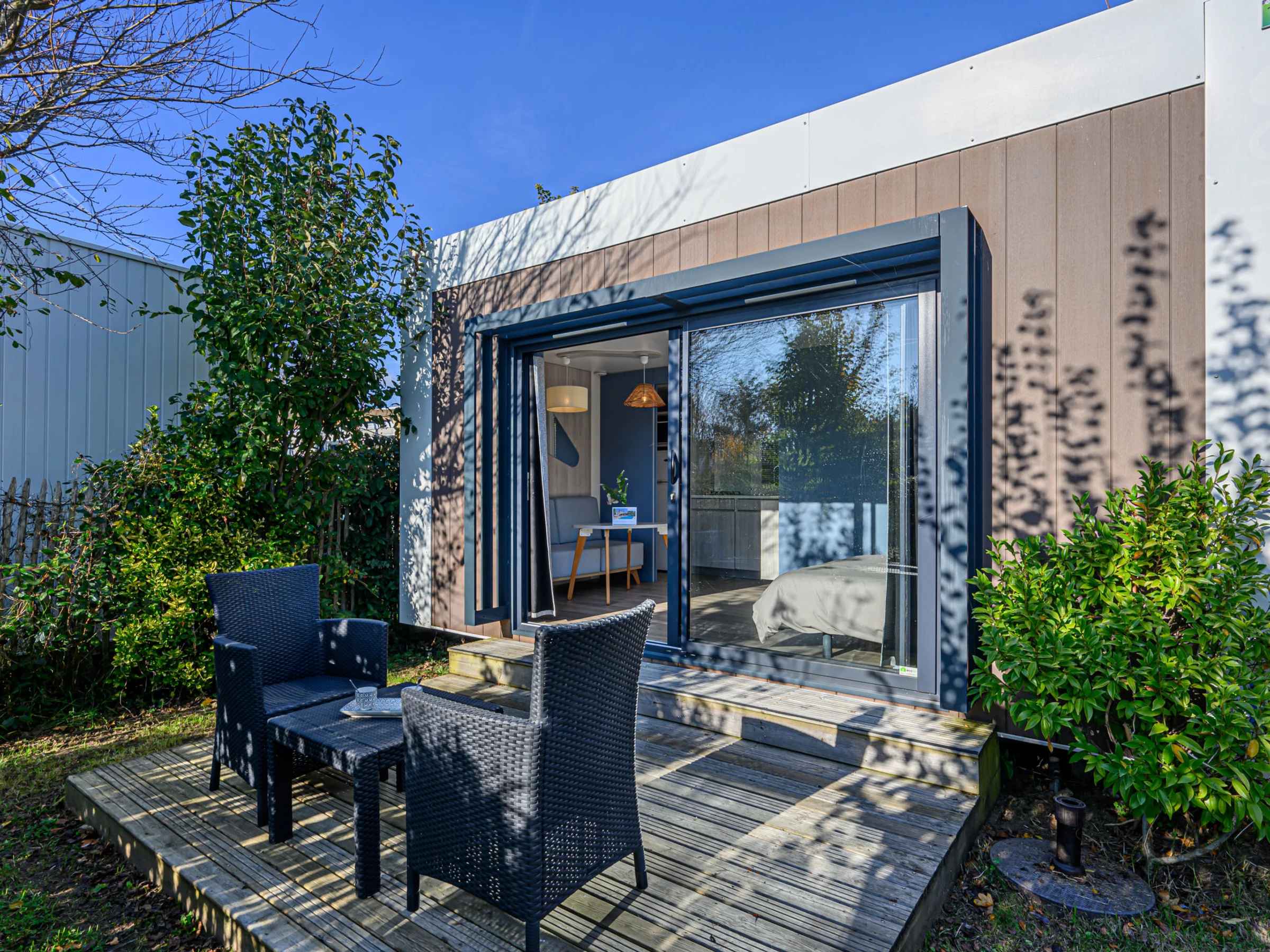 Camping Les Salines: Resort. 30 houses in the resort. In the resort 500 m from the centre of Carnac, 1.5 km from the sea, 1.5 km from the beach. For shared use: hot tub, barbecue. In the house: WiFi, washing machine (extra). Grocery, supermarket 20 m, restaurant, bar 400 m, bakery 500 m, café 100 m, bus stop 600 m, sandy beach "Grande Plage de Carnac" 1.5 km, thermal baths "Thalazur Carnac" 1.2 km. Golf course (18 hole) 15 km, surf school 3.5 km, sailing school 1.5 km, tennis 2.9 km. Nearby attractions: Les Alignements de Carnac 1 km, Le Port de la Trinité-sur-mer 5 km, Auray & Saint-Goustan 19 km, Les remparts de Vannes 33 km, La Presqu'île de Quiberon 16 km, Lorient 49 km. Hiking paths: Golfe du Morbihan 20 km.