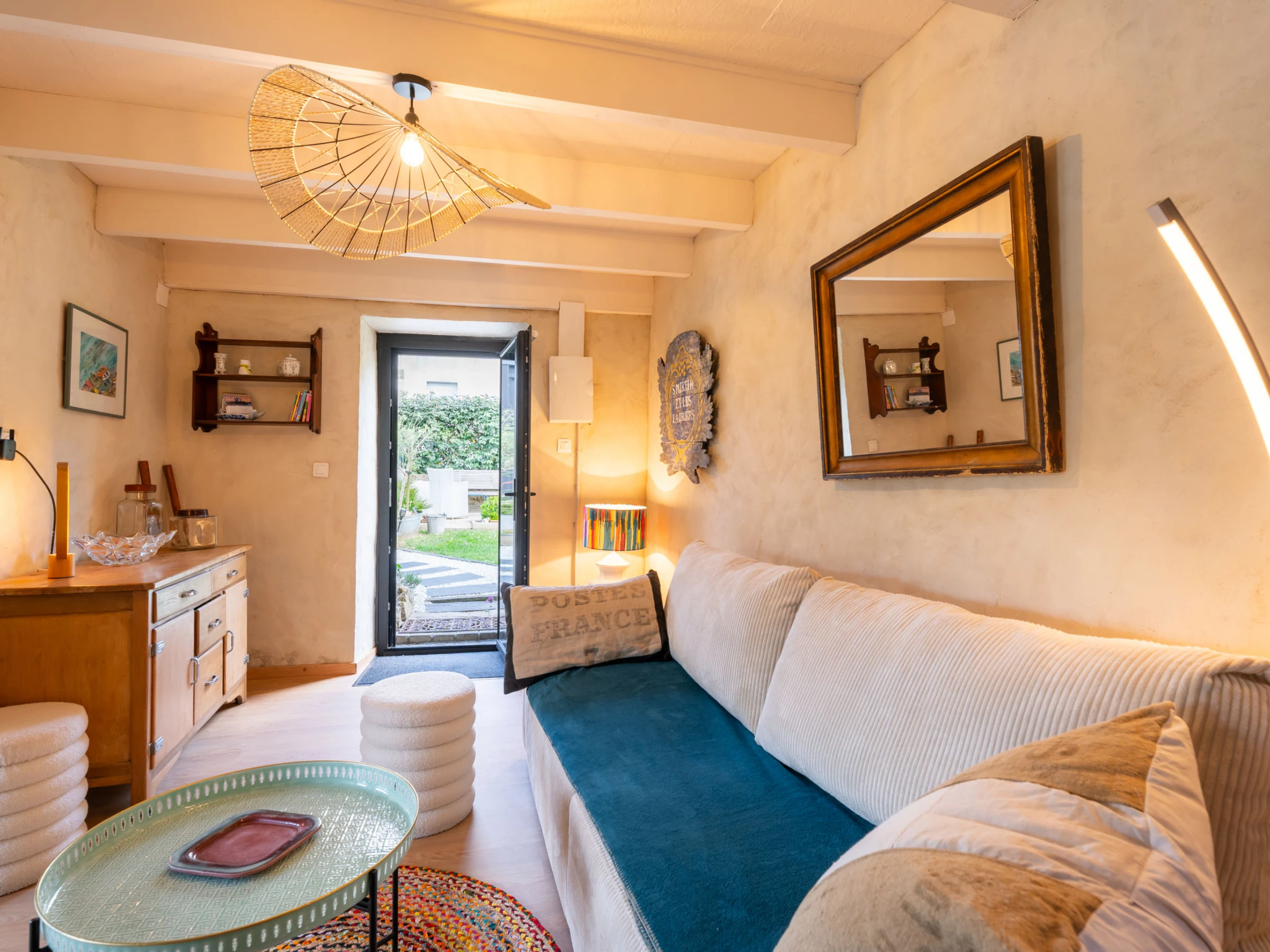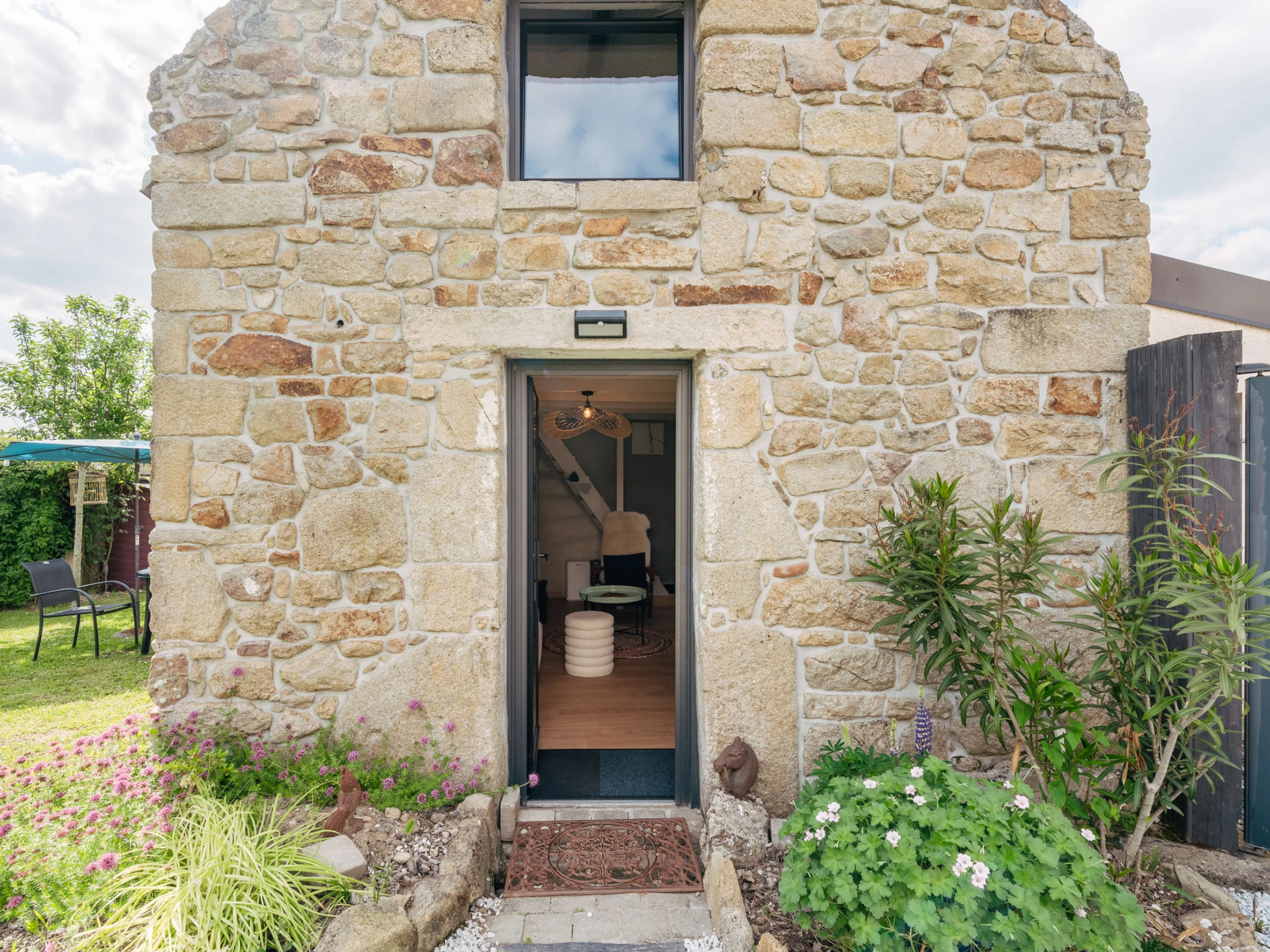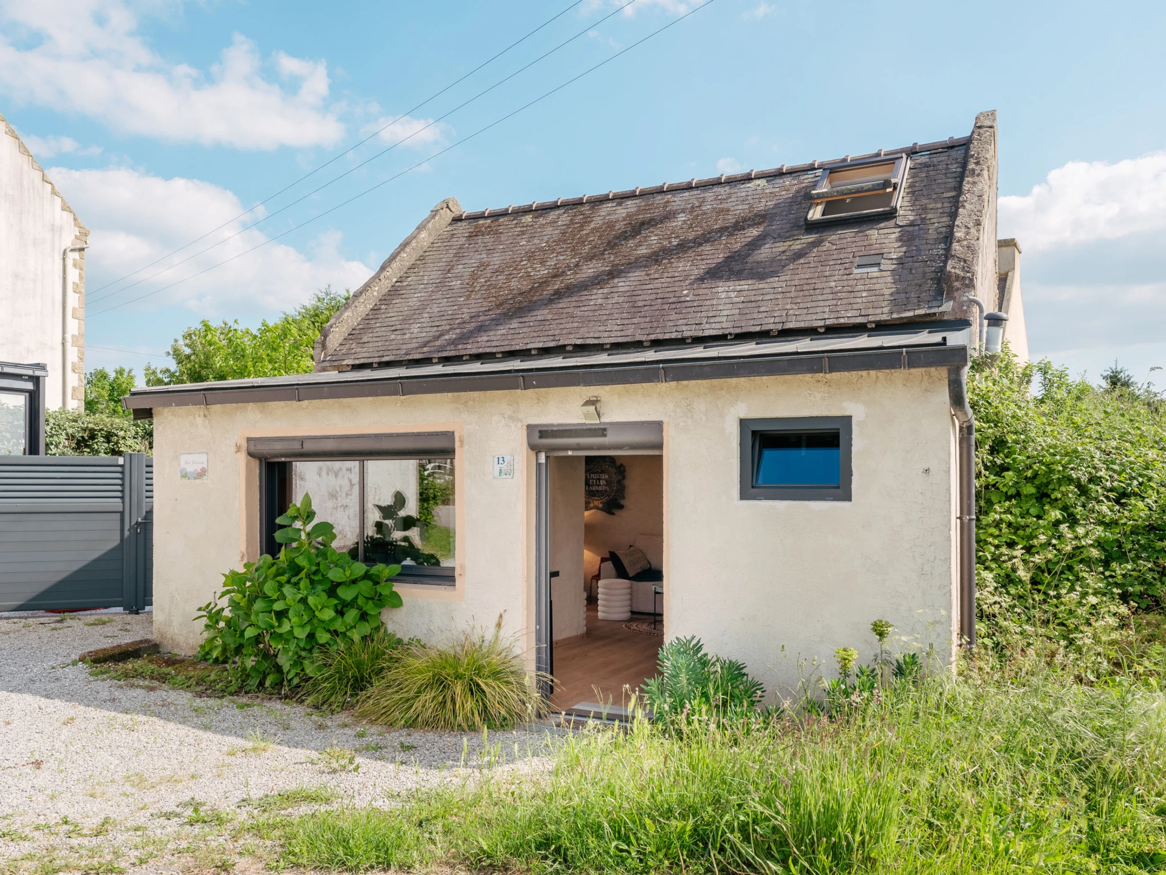 2-room house 45 m2 on 2 levels. Renovated in 2025, comfortable furnishings: living/dining room with TV (flat screen). Exit to the garden. Kitchen (oven, dishwasher, 2 ceramic glass hob hotplates, toaster, kettle, microwave, electric coffee machine). Shower/WC. Electric heating. Upper floor: (steep stair), 1 room with 2 beds (90 cm, length 190 cm), 1 sofabed (90 cm, length 190 cm). Terrace furniture. Facilities: hair dryer. Internet (WiFi, free). Parking. Please note: smoke alarm. Offer by a private individual according to Art. 155, IV of CGI. [hidden]
