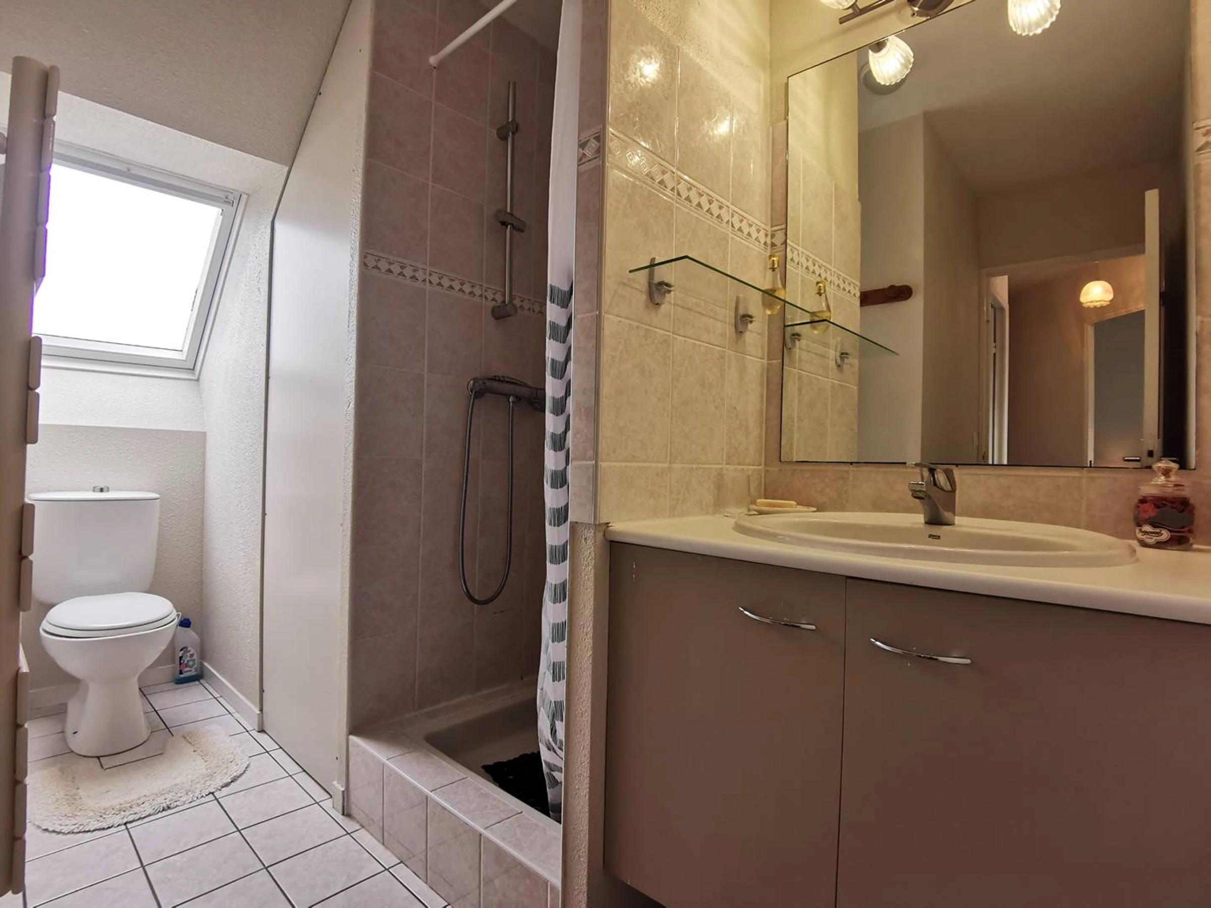 Upstairs: 2 bedrooms (each with a double bed), 1 small bedroom (two single bunk beds), shower room with WC.