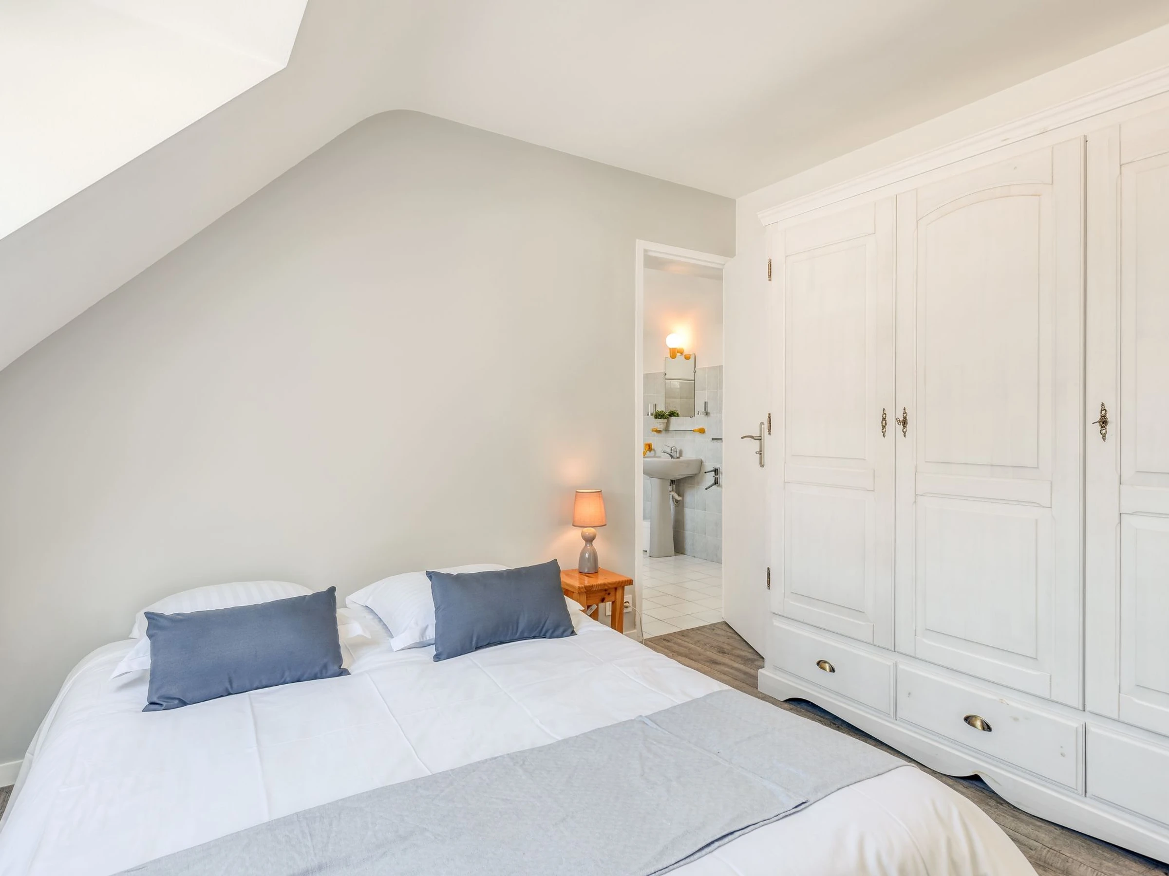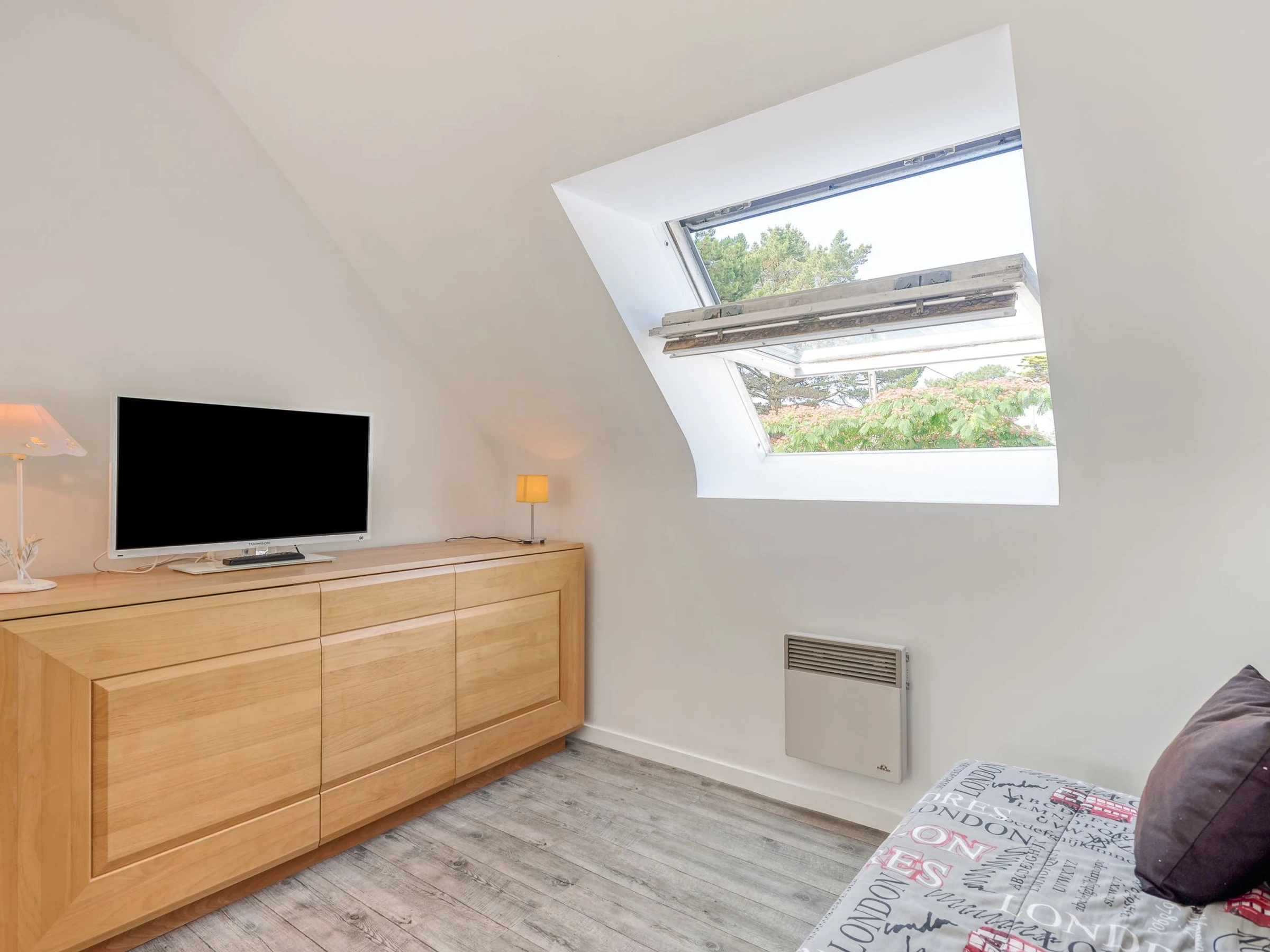 4-room house 90 m2 on 2 levels. Comfortable furnishings: living/dining room. Exit to the garden. 1 room with 1 french bed (1 x 160 cm, length 200 cm). Kitchen (oven, dishwasher, 3 induction hot plates, toaster, kettle, microwave, freezer, electric coffee machine). Shower, sep. WC. Upper floor: gallery with TV (flat screen). 1 room with 2 beds (90 cm, length 190 cm). 1 room with 1 french bed (1 x 140 cm, length 190 cm). Bath/WC. Electric heating. Garden 300 m2. Terrace furniture, barbecue, deck chairs (4). View of the garden. Facilities: washing machine, children's high chair. Internet (WiFi, free). Parking (fenced 1 car). Please note: smoke alarm. Instead of an enclosed bedroom, some sleeping areas are located in an open-plan area (gallery, alcove, etc.). [hidden]