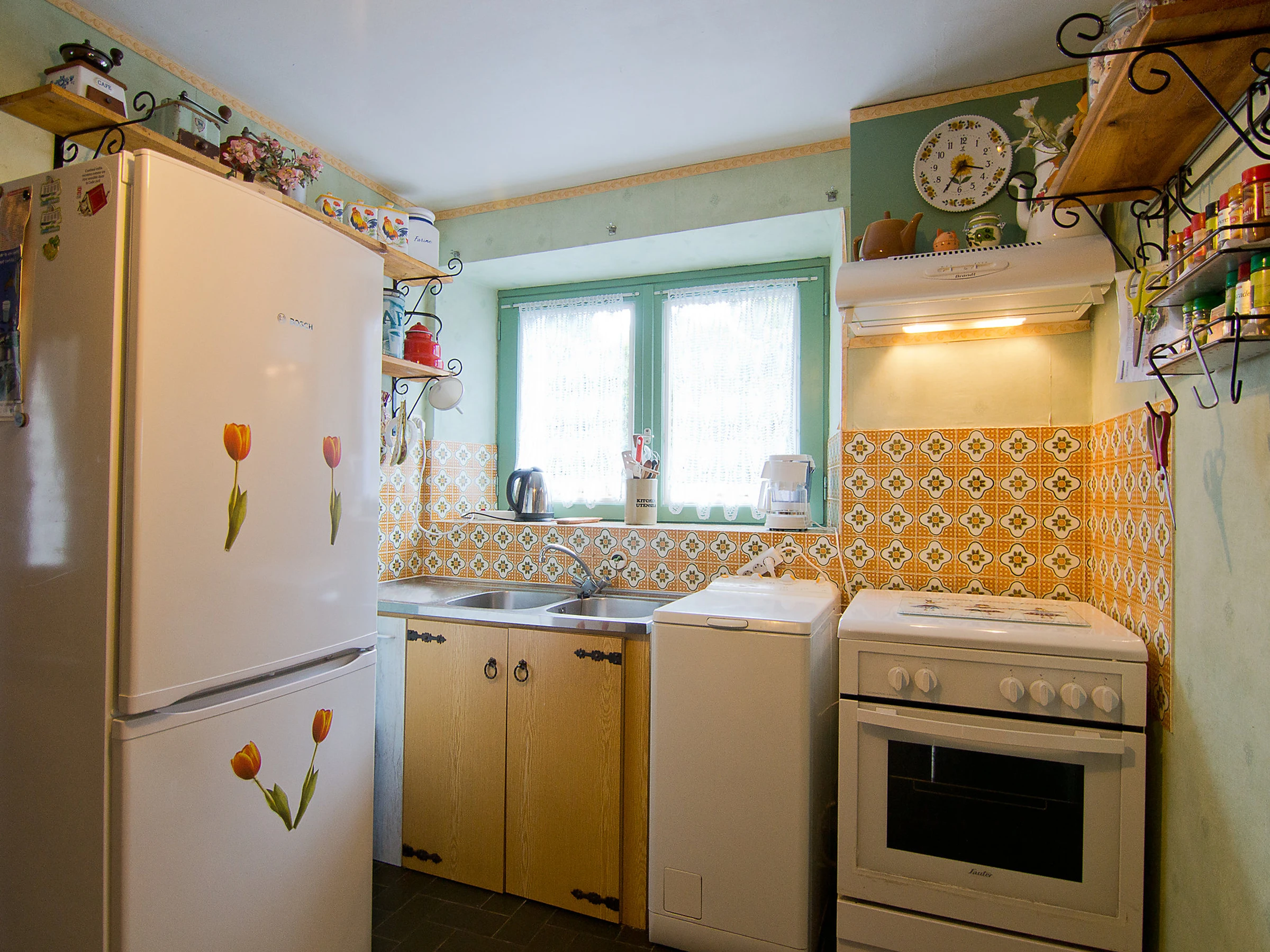 "Cloucarnac", 2-room house 37 m2 on 2 levels, on the ground floor. Simple and practical furnishings: living/dining room with TV and flat screen. Exit to the garden, west facing position. Kitchen (4 hot plates, oven, microwave). Bath/shower, sep. WC. Upper floor: 1 room with 1 french bed (140 cm). Electric heating. Terrace furniture, barbecue. Facilities: washing machine. Internet (WiFi, extra). Please note: 1 pet/ dog allowed. Smoke alarm.