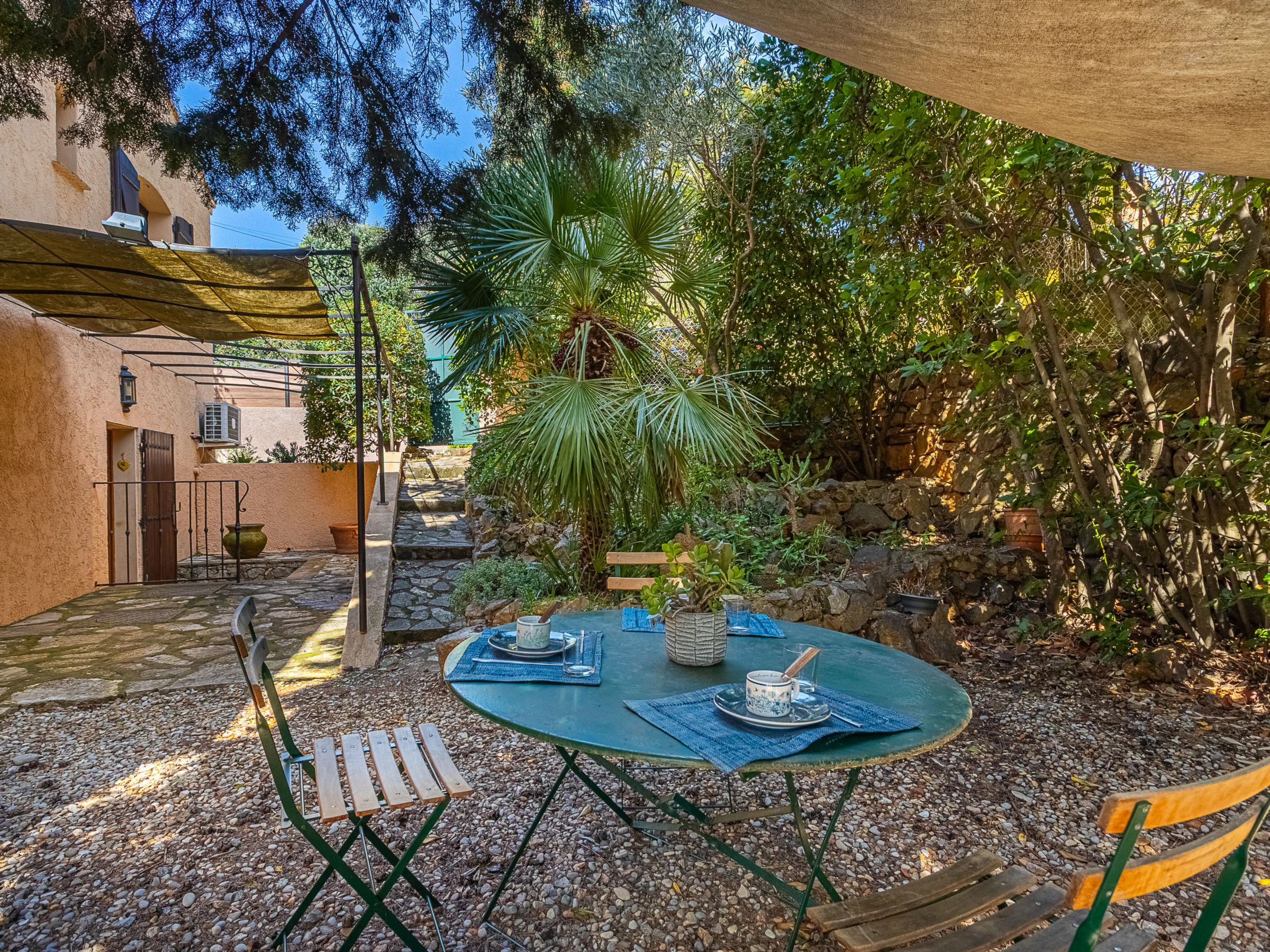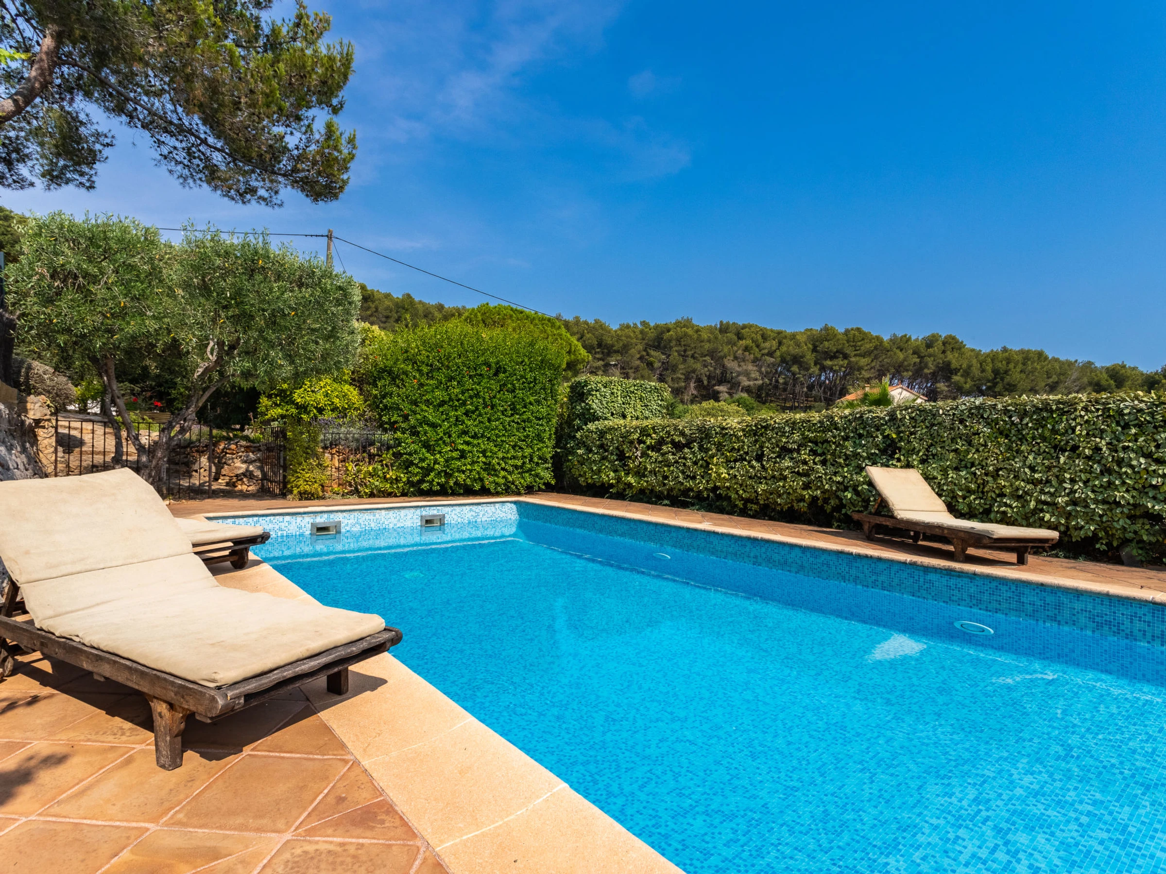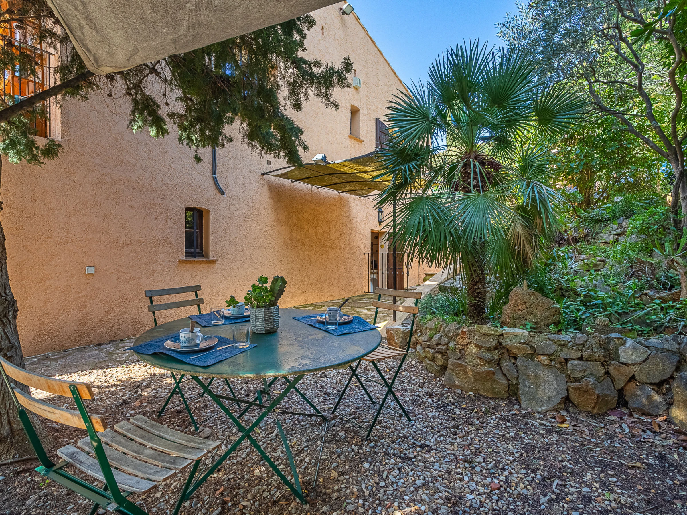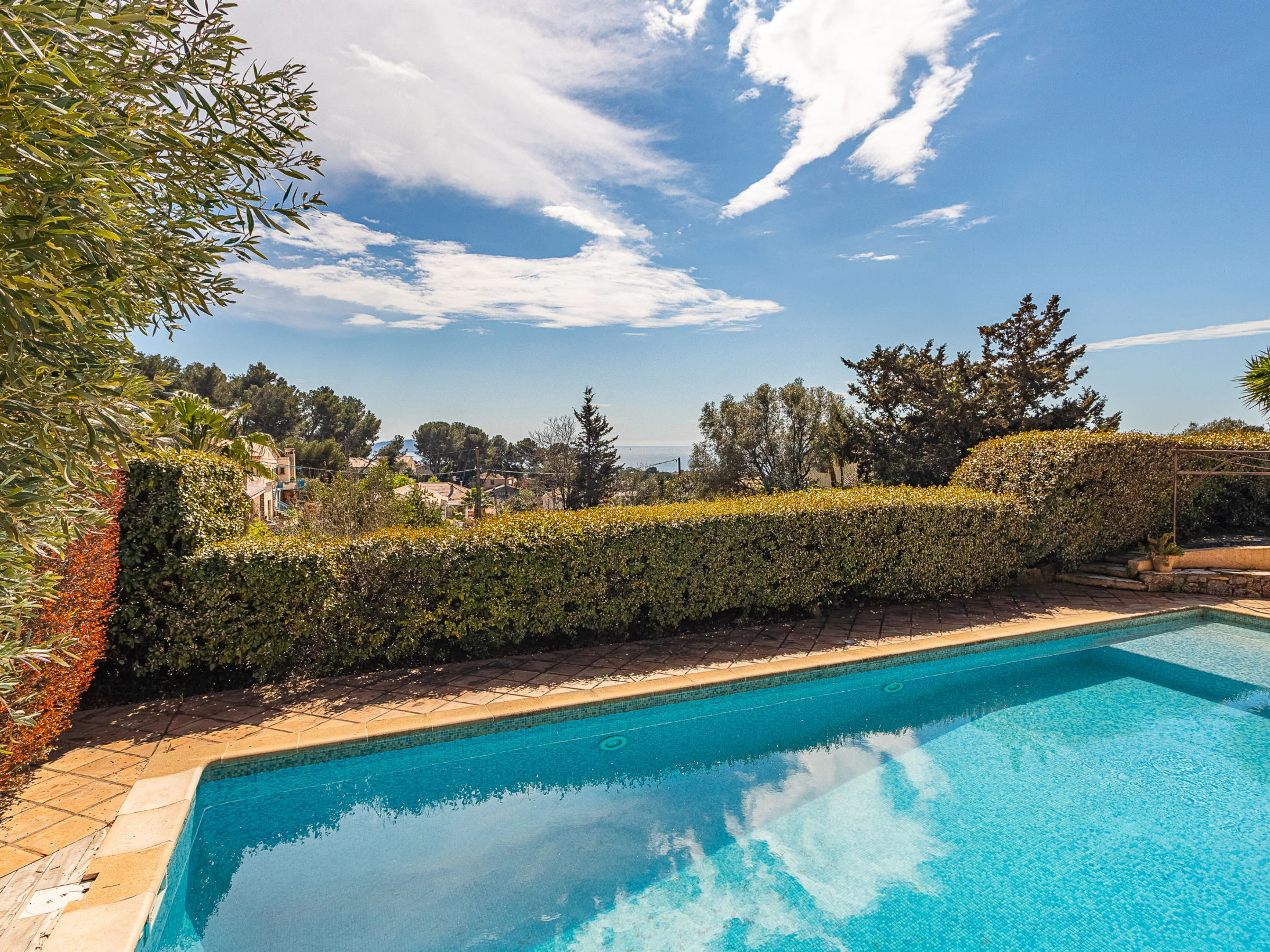2-family house "Mimosas", surrounded by trees. In the resort 1.2 km from the centre of Carqueiranne, in a quiet position residential area (villas), 1.9 km from the sea, 2.1 km from the beach, in a cul-de-sac, in the countryside. Private: well-kept garden 1'300 m2 (fenced) flowers and trees, swimming pool angular, fenced (depth 110 - 250 cm, seasonal availability: [hidden] - [hidden] with salt-electrolysis pool-cleaning system. Pool maintenance by the owner/gardener. Shop 4.8 km, grocery 1.1 km, shopping centre 4.8 km, restaurant 1.1 km, bar 1.1 km, bakery 1.8 km, bus stop "Majorelle" 600 m, sandy beach "L'Almanarre" 7 km, rocky beach "des Pins Penchés" 2.1 km (small). Golf course (18 hole) 9500 km, sailing school 2.3 km. Nearby attractions: Musée de la mine de Cap Garonne 6.1 km. Hiking paths: Sentiers du littoral 12.4 km. Please note: car recommended. The keys‘ handover takes place by the agency in Hyères le Port. Owner lives in separate semi-detached house.