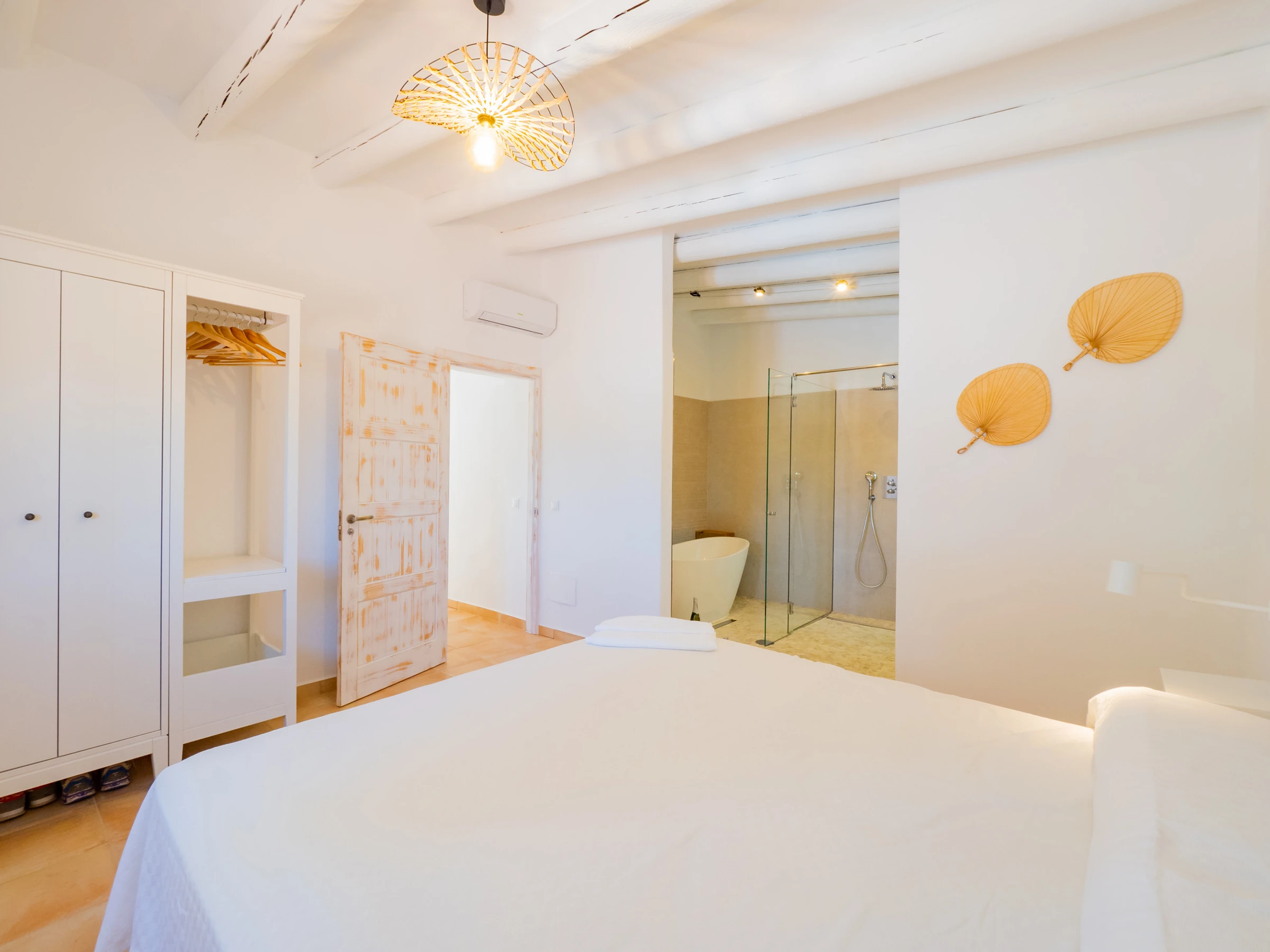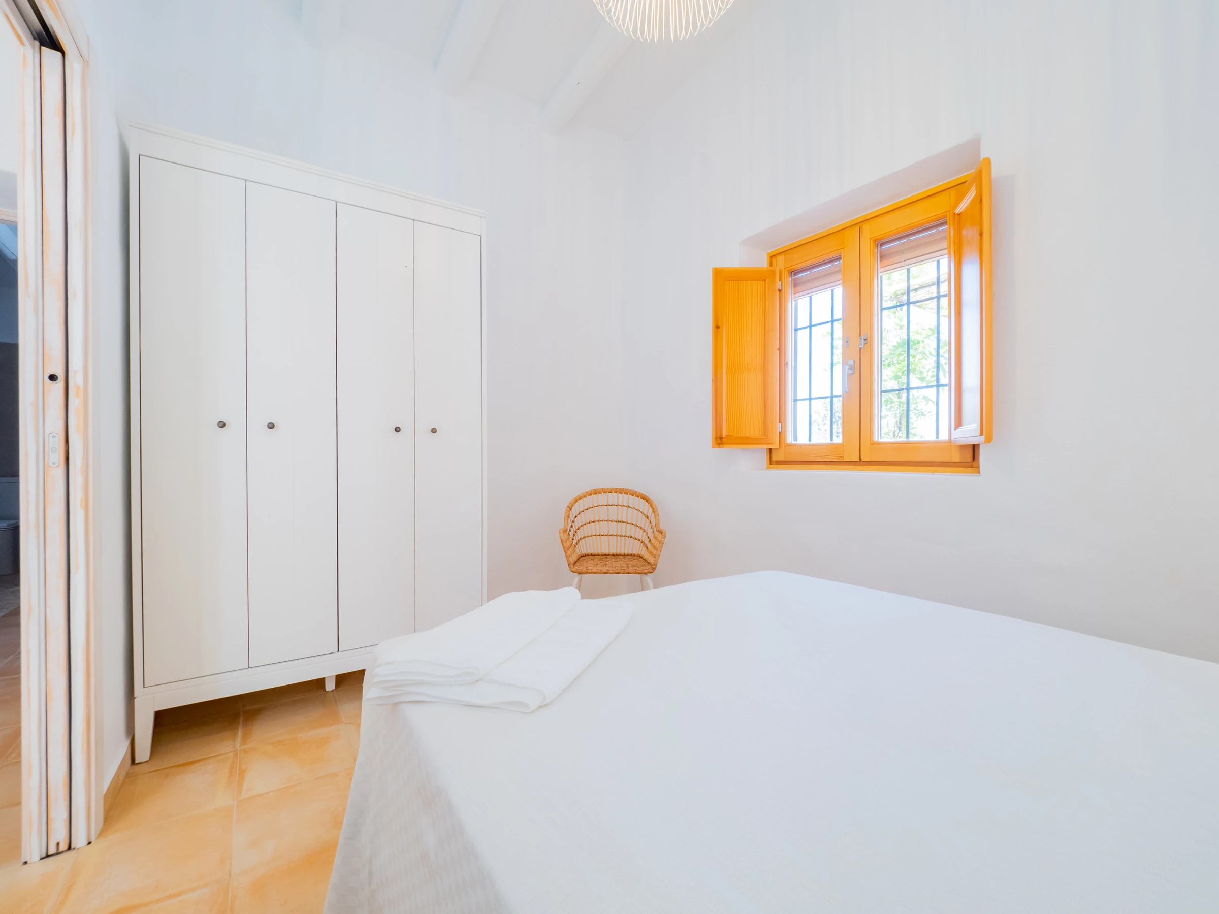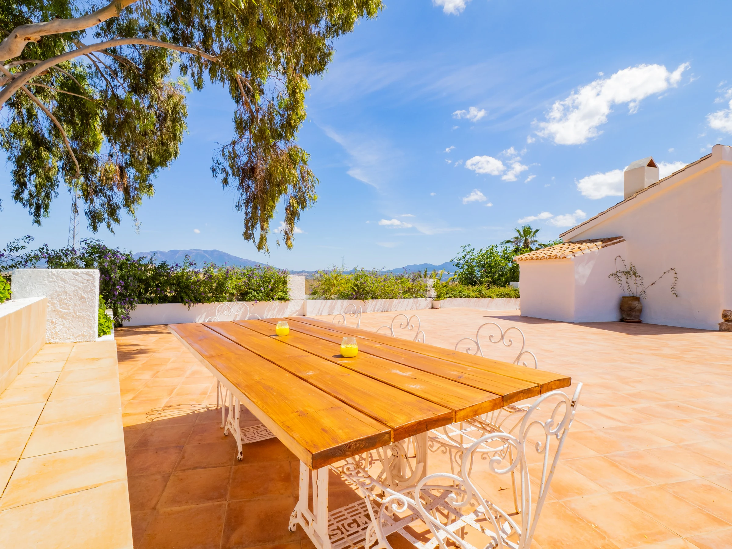 This accommodation in Cártama is ideal for families looking for comfort and fun in a rural setting with impressive mountain views. With 140 m², it has three spacious and well-equipped bedrooms for up to 8 people, with air conditioning in all rooms and a bright rustic and modern style environment. The main bedroom stands out with a Queen size bed, en-suite bathroom with oval bathtub and spacious shower for a relaxing stay.