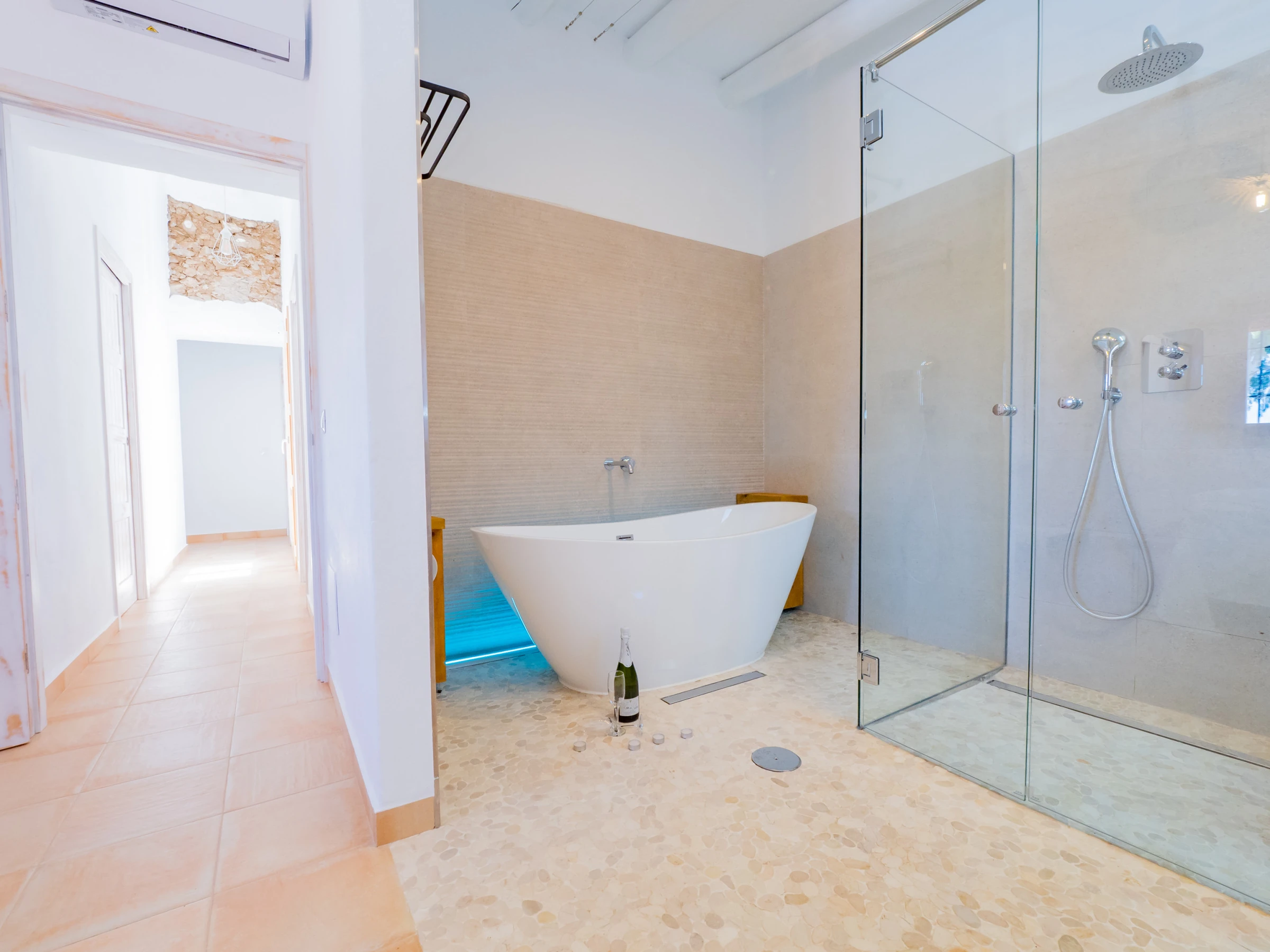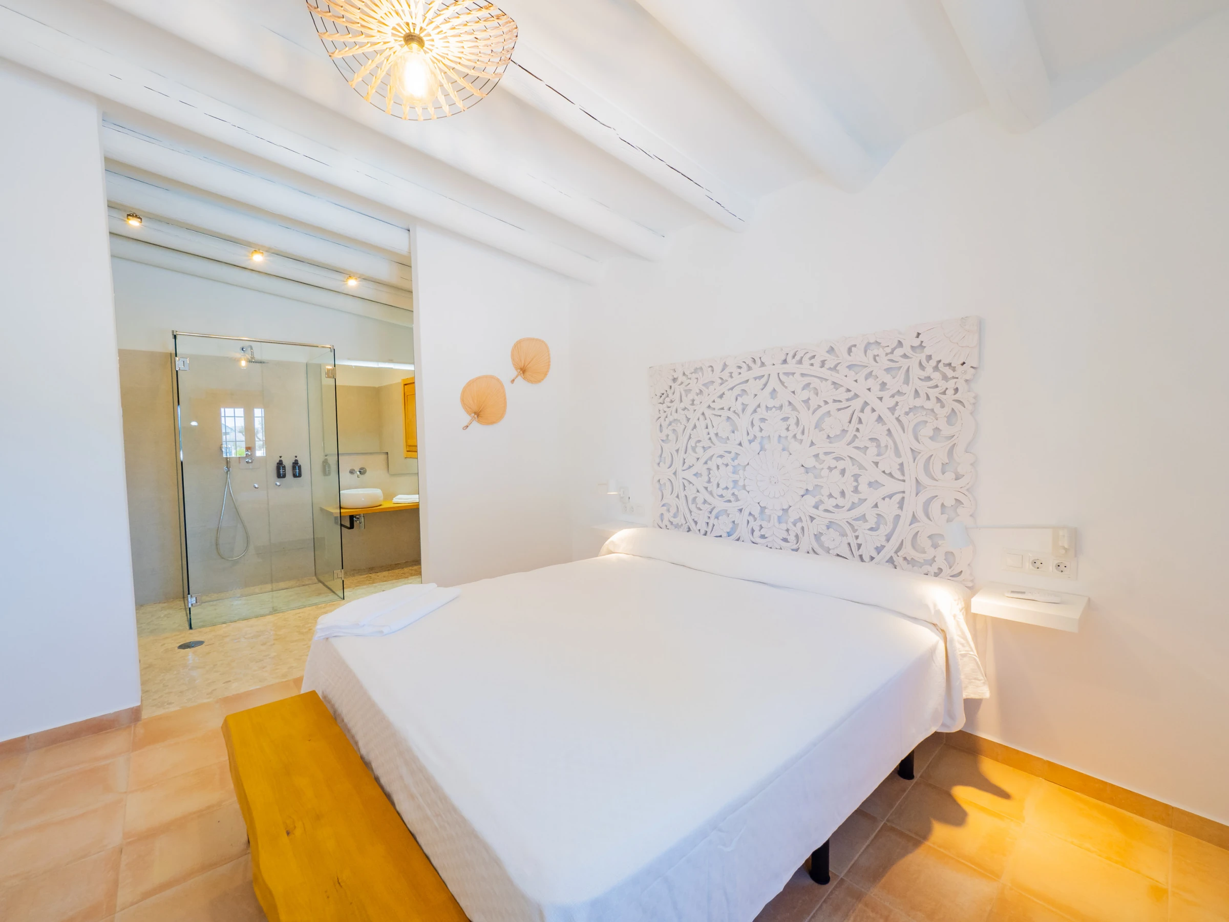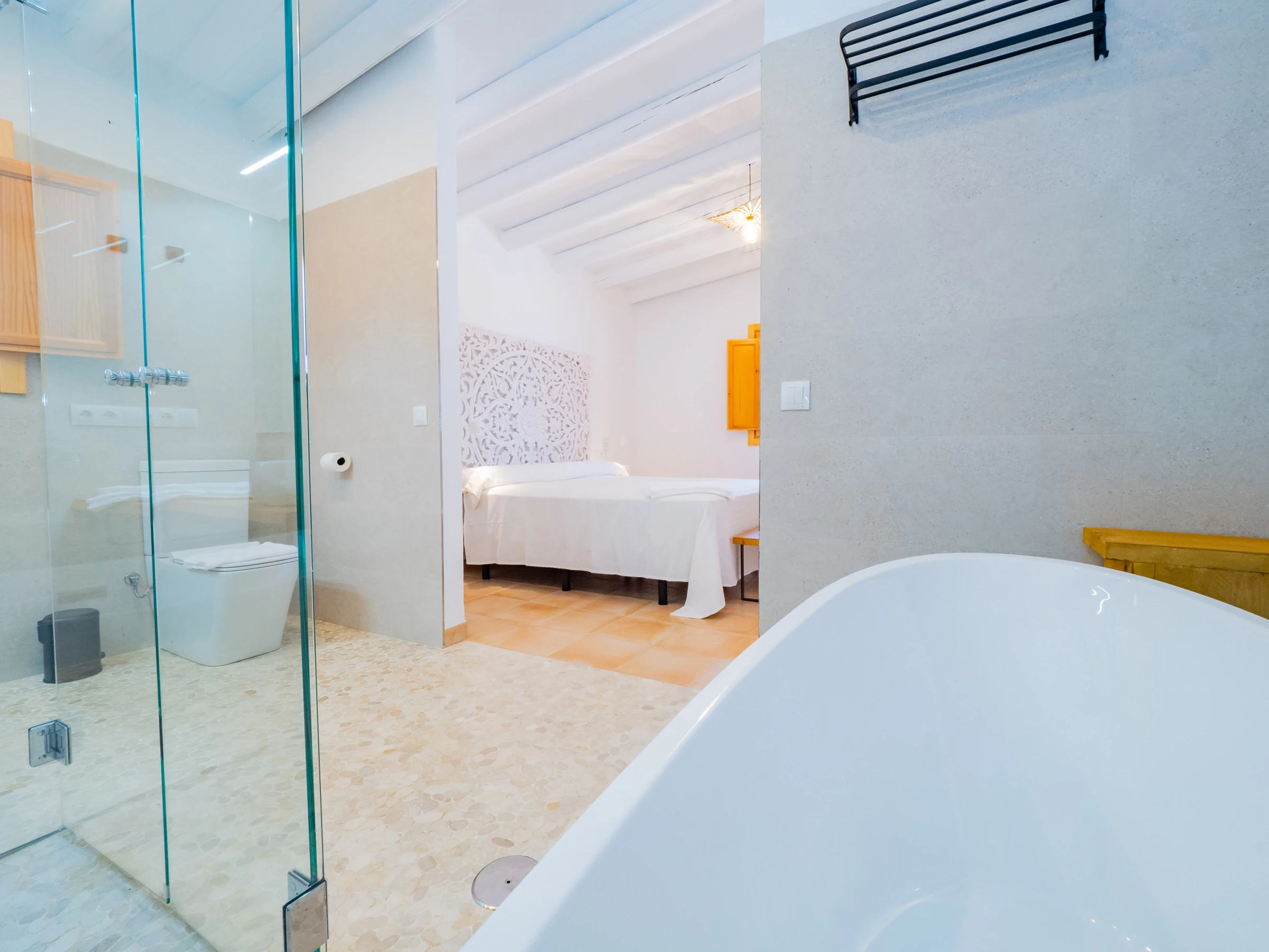 This accommodation in Cártama is ideal for families looking for comfort and fun in a rural setting with impressive mountain views. With 140 m², it has three spacious and well-equipped bedrooms for up to 8 people, with air conditioning in all rooms and a bright rustic and modern style environment. The main bedroom stands out with a Queen size bed, en-suite bathroom with oval bathtub and spacious shower for a relaxing stay.