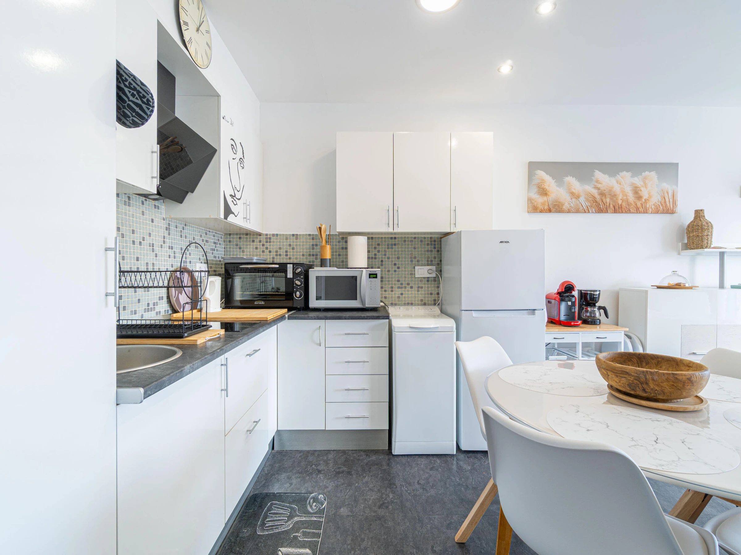 Home Select Internacional presents this lovely studio, ideal for enjoying a pleasant holiday thanks to its excellent location. It is situated close to the beach and within walking distance of the center of Empuriabrava, where you will find a wide range of shops, restaurants, and leisure activities. The studio is located on the second floor and features an open-plan kitchen fully equipped with a ceramic hob, oven, microwave, toaster, refrigerator, and iron, providing everything needed for a comfortable and functional stay. Next, there is the living-sleeping area, which includes a 1.50 m x 2.00 m bed, air conditioning, and a television with French channels. From this area, you can enjoy pleasant views of the canal, bringing natural light and a very cozy atmosphere. Finally, the property features a fully renovated bathroom with a shower. Please note that pets are not allowed. Bed linen and towels are not included in the price but can be rented for €25 per person. Energy efficiency: Energy consumption: “G” 305 kWh/m² per year CO₂ emissions: “F” 51 kg CO₂/m² per year