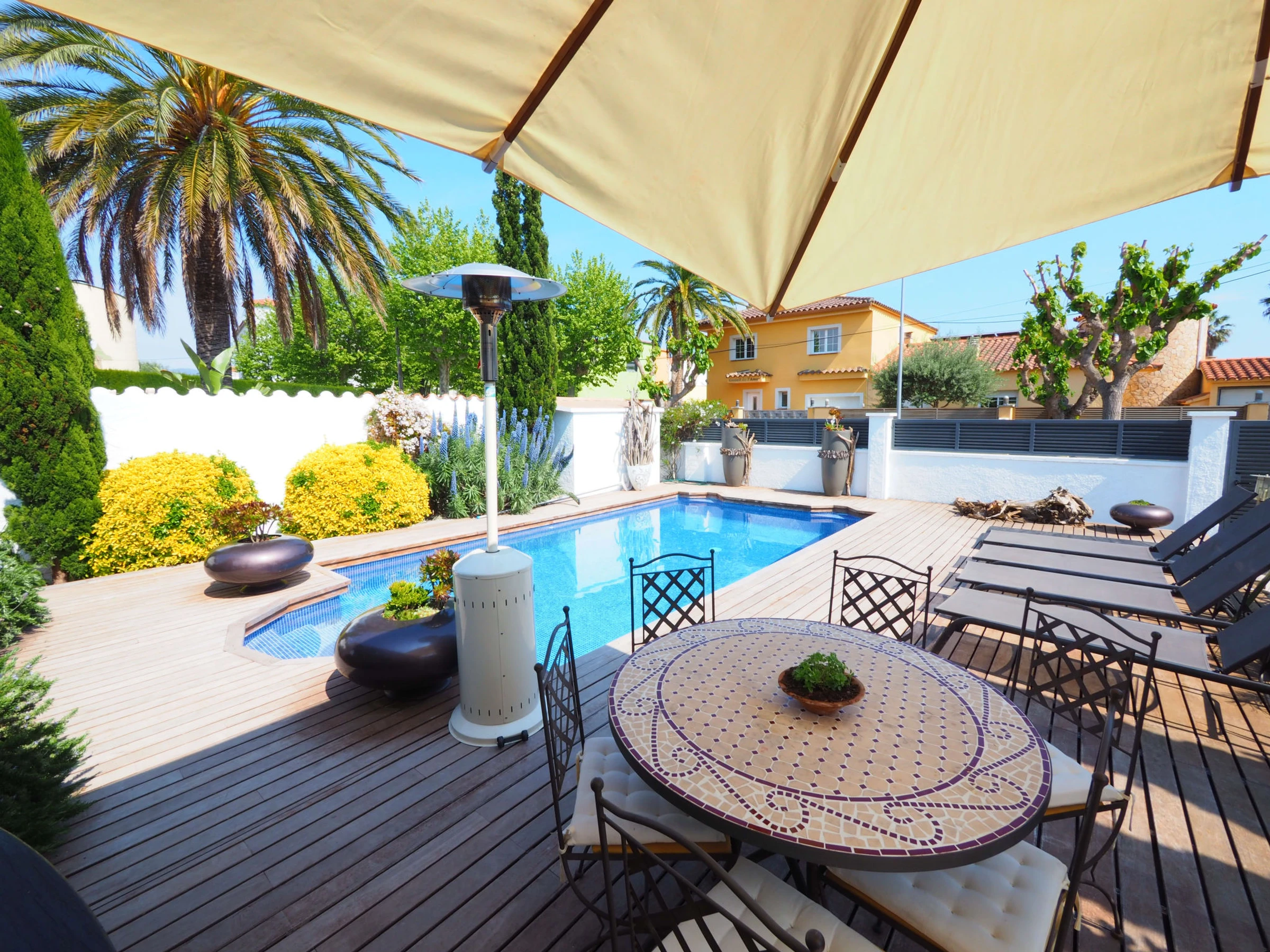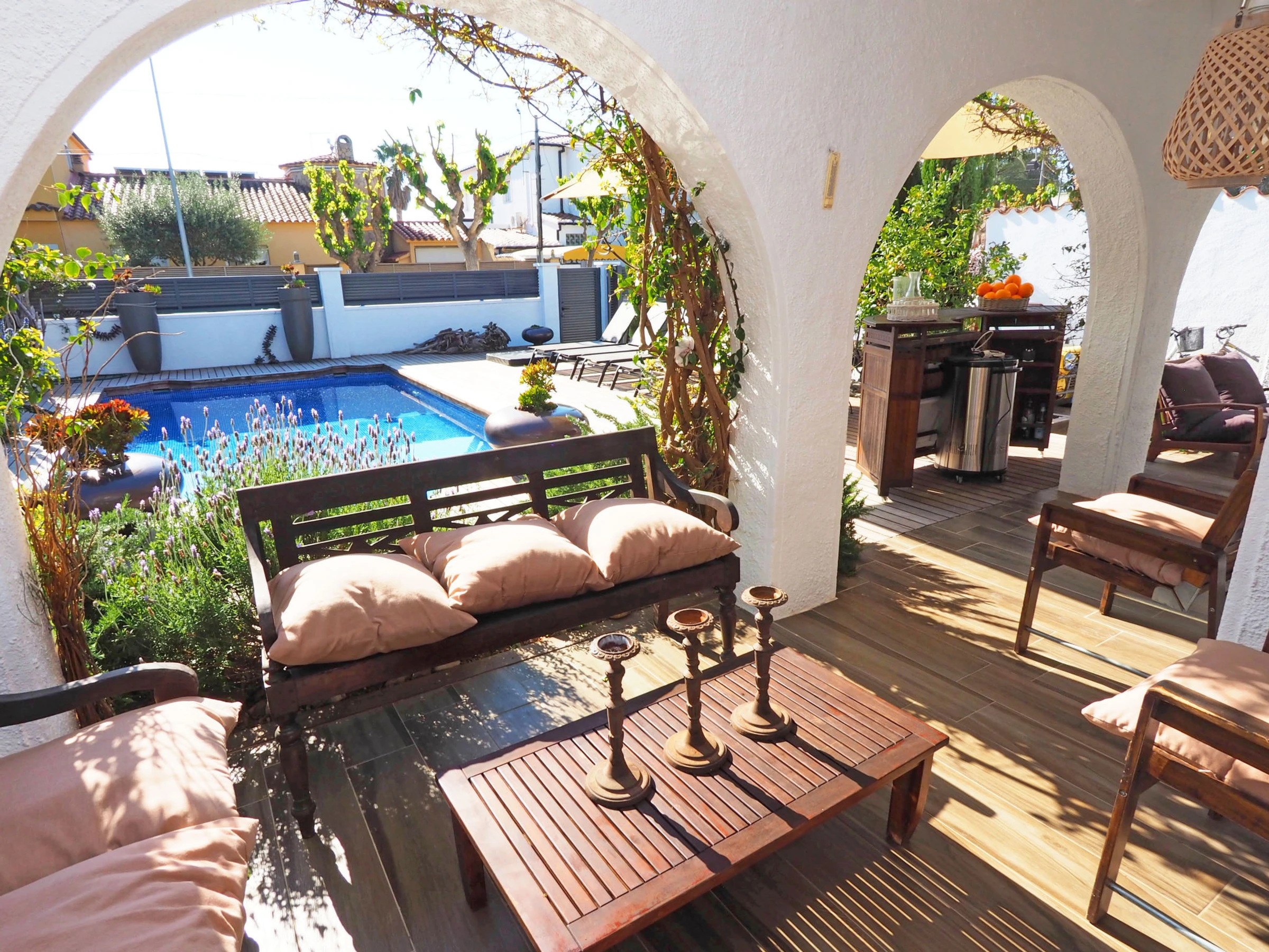 Beautiful, cosy, comfortable house "Peni", 2 storeys, renovated in 2016. In the district of Pení, 950 m from the centre of Empuriabrava, in a quiet, sunny position residential area (villas), 1.3 km from the sea, 100 m from the canal. Private: property 400 m2 (fenced), beautiful, well-kept garden wildlife garden and trees, swimming pool angular (4 x 7 m,[hidden].). Patio, pergola, garden furniture, barbecue, parking (for 2 cars) at the house on the premises. Grocery, supermarket 300 m, shopping centre 2 km, restaurant 300 m, bar 200 m, internet café 280 m, bus stop 2 km, sandy beach "Empuriabrava" 1.3 km. Sports harbour 1.6 km, golf course 12 km, tennis 1.5 km, minigolf 450 m, riding stable 3 km. Nearby attractions: Centro Aerodromo y túnel del viento 2 km, Parque Aquático Roses 6 km, Casino y festival de Perelada 12 km, Museo Dalí de Figueres 15 km, Ruïnes de Sant Martí de Empuries 21 km, Monasterio de Sant Pere de Rodes 23 km.
