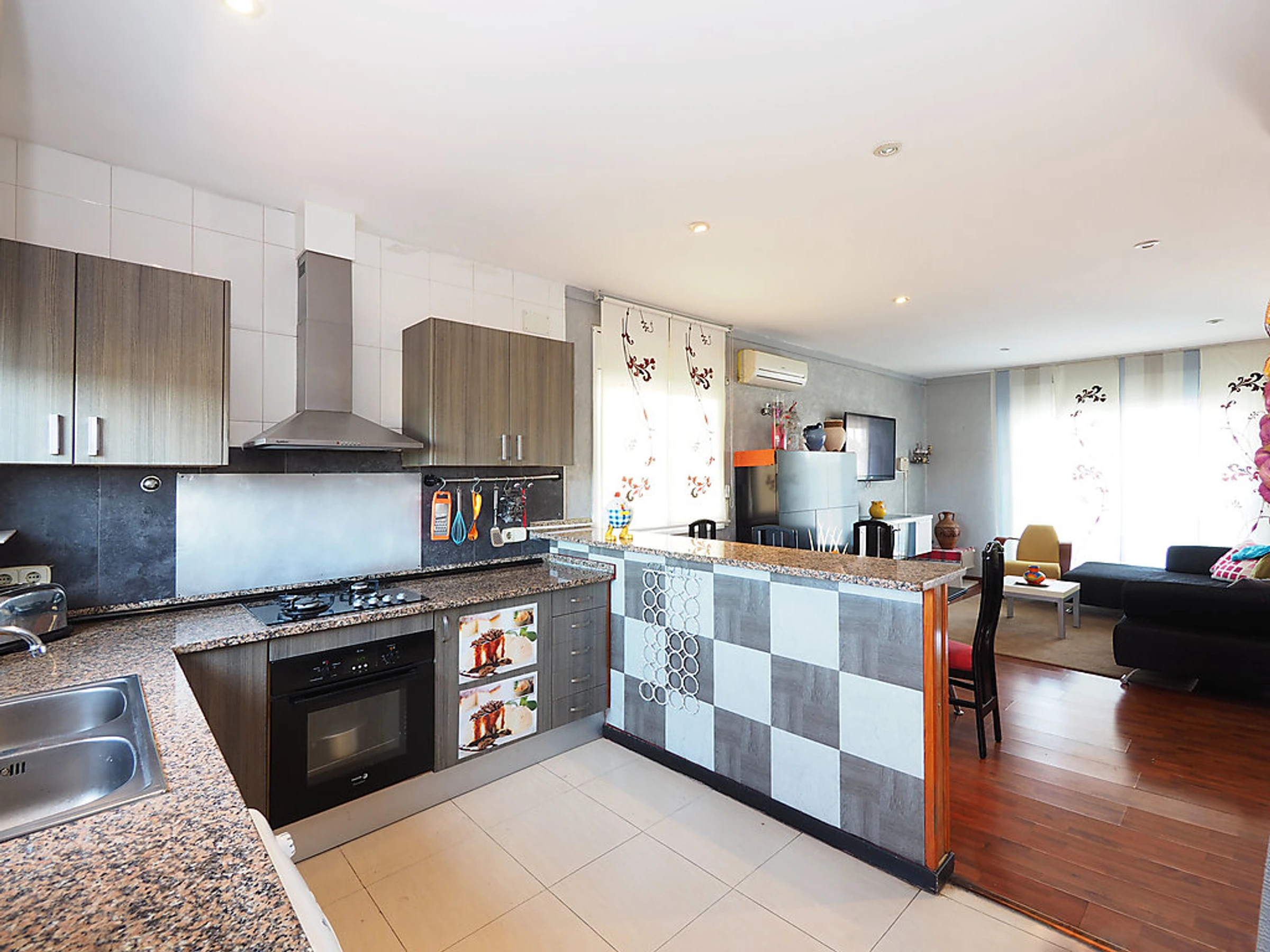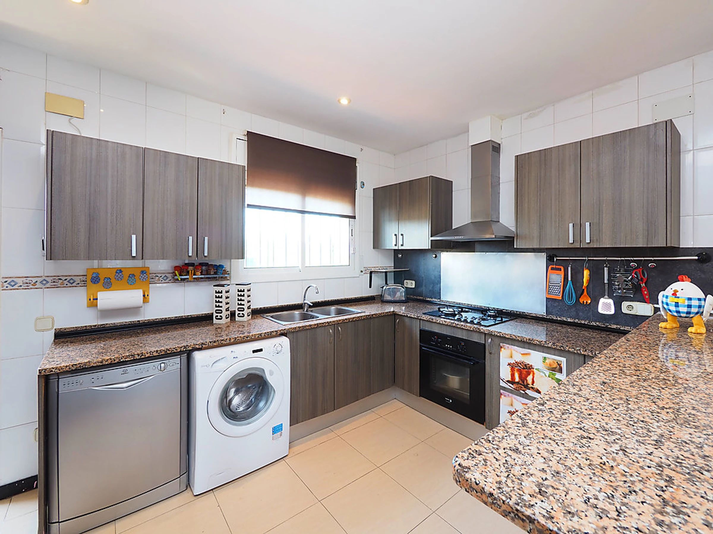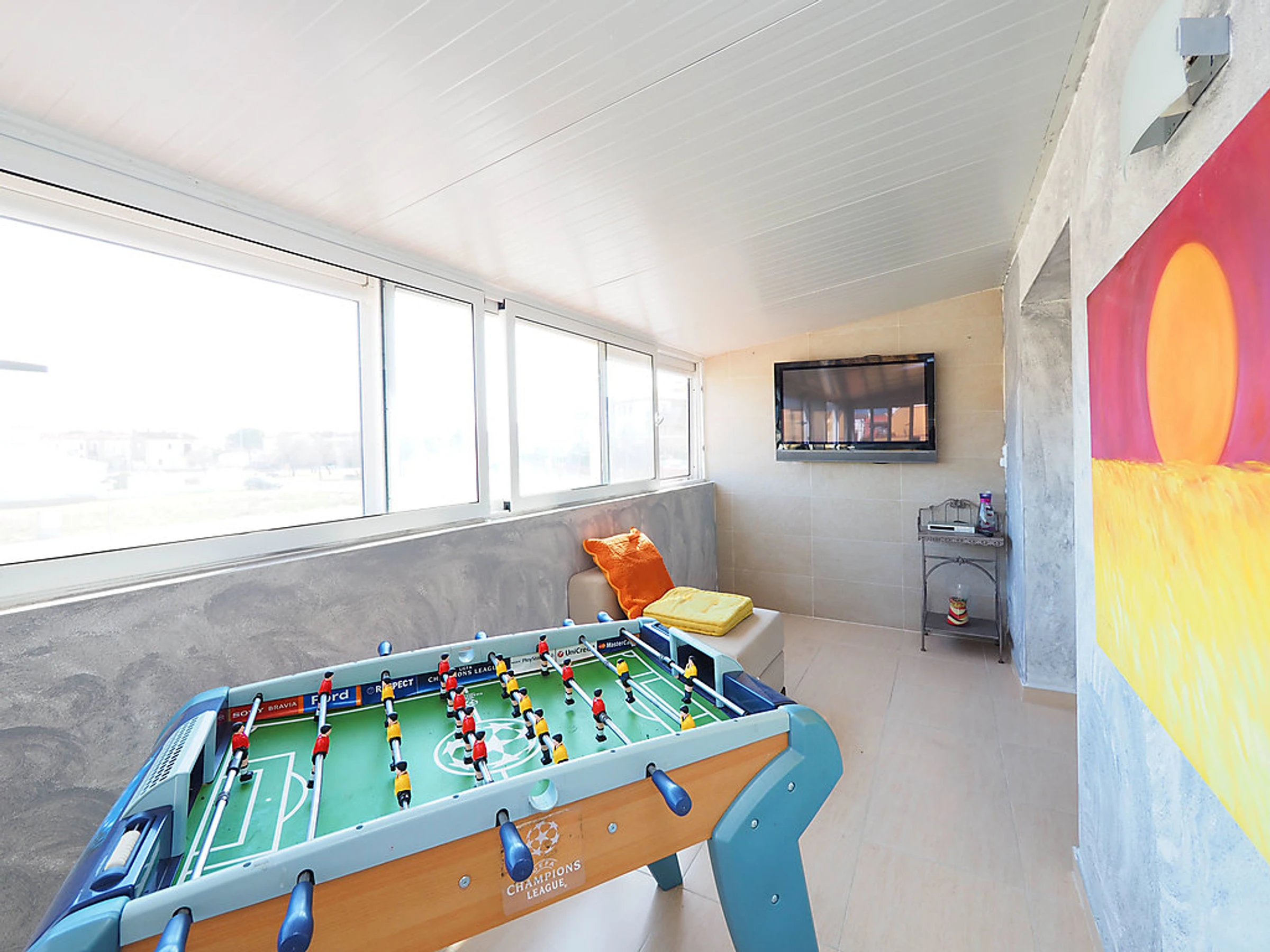 Cosy, comfortable semi-detached house "Puigmal", 2 storeys. In the district of Puigmal 3 km from the centre of Empuriabrava, in a quiet, sunny position residential area (villas), area with little traffic, 3.2 km from the sea, 3 km from the beach, in a cul-de-sac. Private: property (fenced), swimming pool (7 x 4 m,[hidden].). Parking at the house. Grocery, supermarket, restaurant 500 m, bar 650 m, café 400 m, bus stop 1 km, sandy beach "Empuriabrava" 3 km. Sports harbour 3 km, golf course 12 km, tennis 800 m, minigolf 2 km, cycle lane 900 m. Nearby attractions: Aerodromo y Túnel de viento 800 m, Parque acuático Roses 3 km, Casino y Festival Perelada 14 km, Museo Dalí Figueres 15 km, Monasterio de Sant Pere de Rodes 20 km, Ruinas de Empuries 23 km.