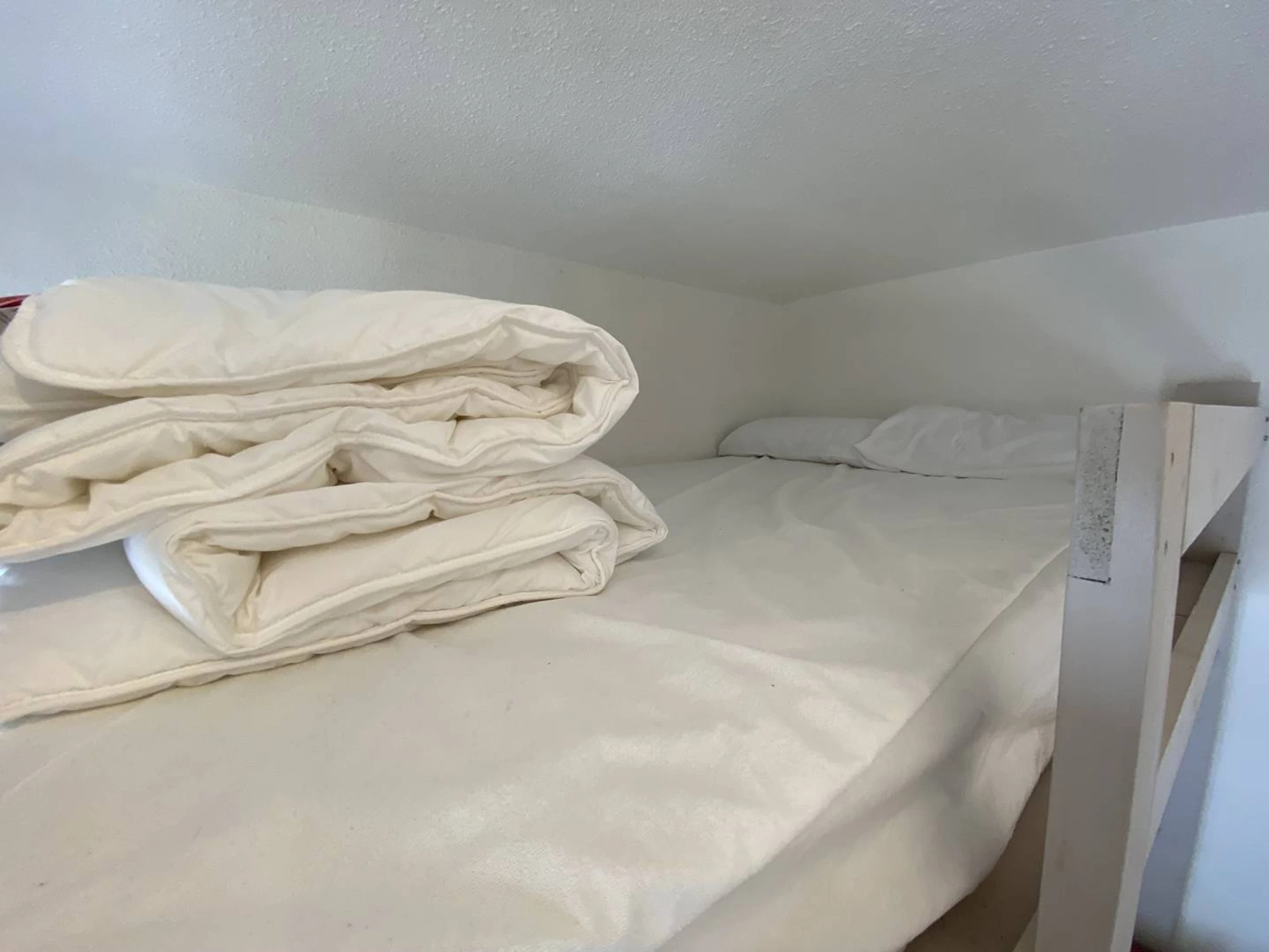 Il se compose d'une cuisine/kitchenette, un salon avec un canapé convertible en 140 et une mezzanine avec un matelas en 120, d'une salle d'eau avec WC et d'un balcon tout le long de l'appartement.
