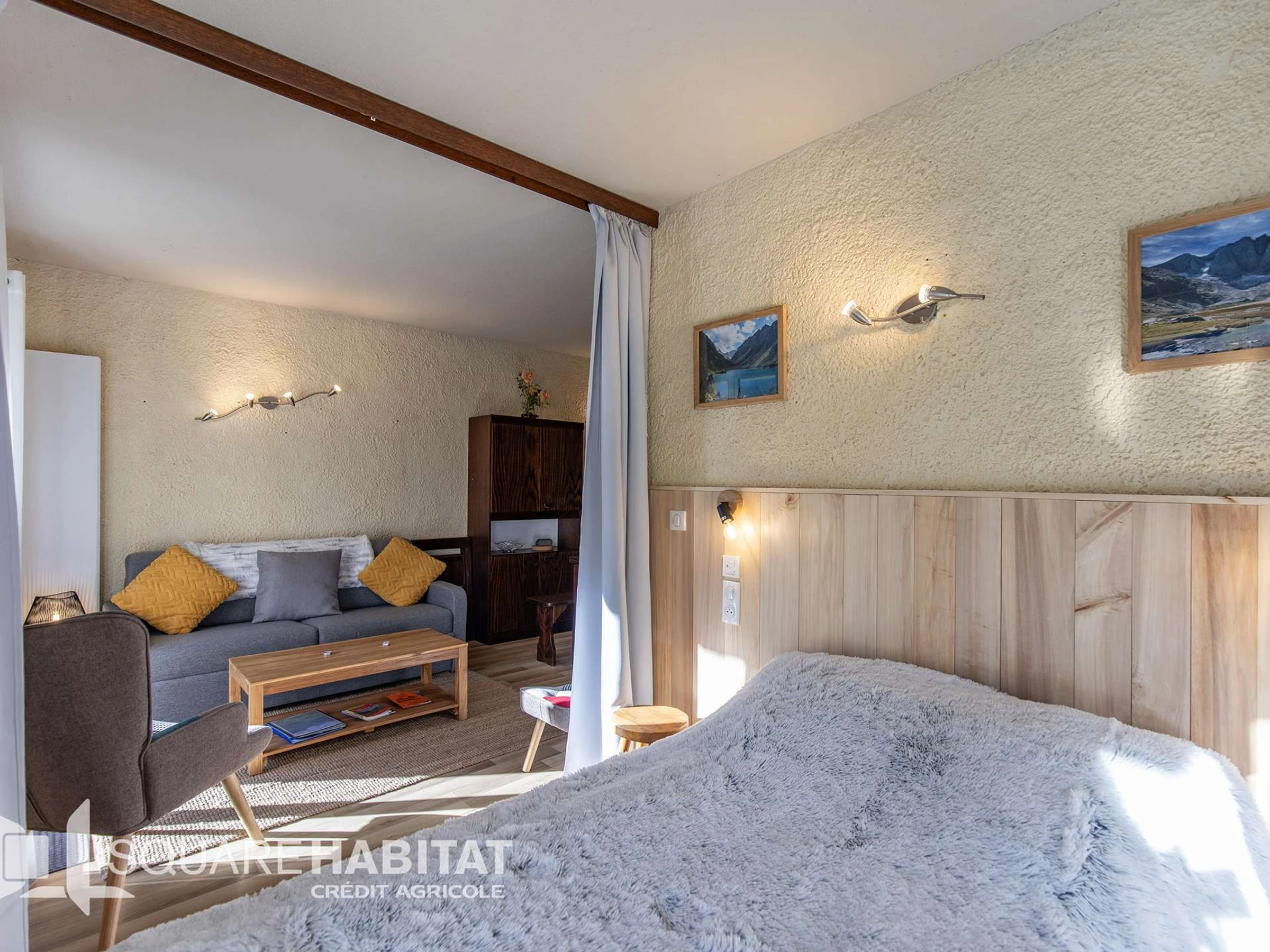 Discover this 35 m² studio apartment for 4 people, ideally located on the ground floor, close to the centre of CAUTERETS, shops, restaurants and cable cars. It comprises a living room with a 90x190 bunk bed and a 140x190 rapido sofa, a fully-equipped kitchen (combined microwave, dishwasher, induction hob, etc.). There is a cabin separated by a curtain with a 140x190 bed. For your convenience, the flat also has a shower room with walk-in shower and washing machine.