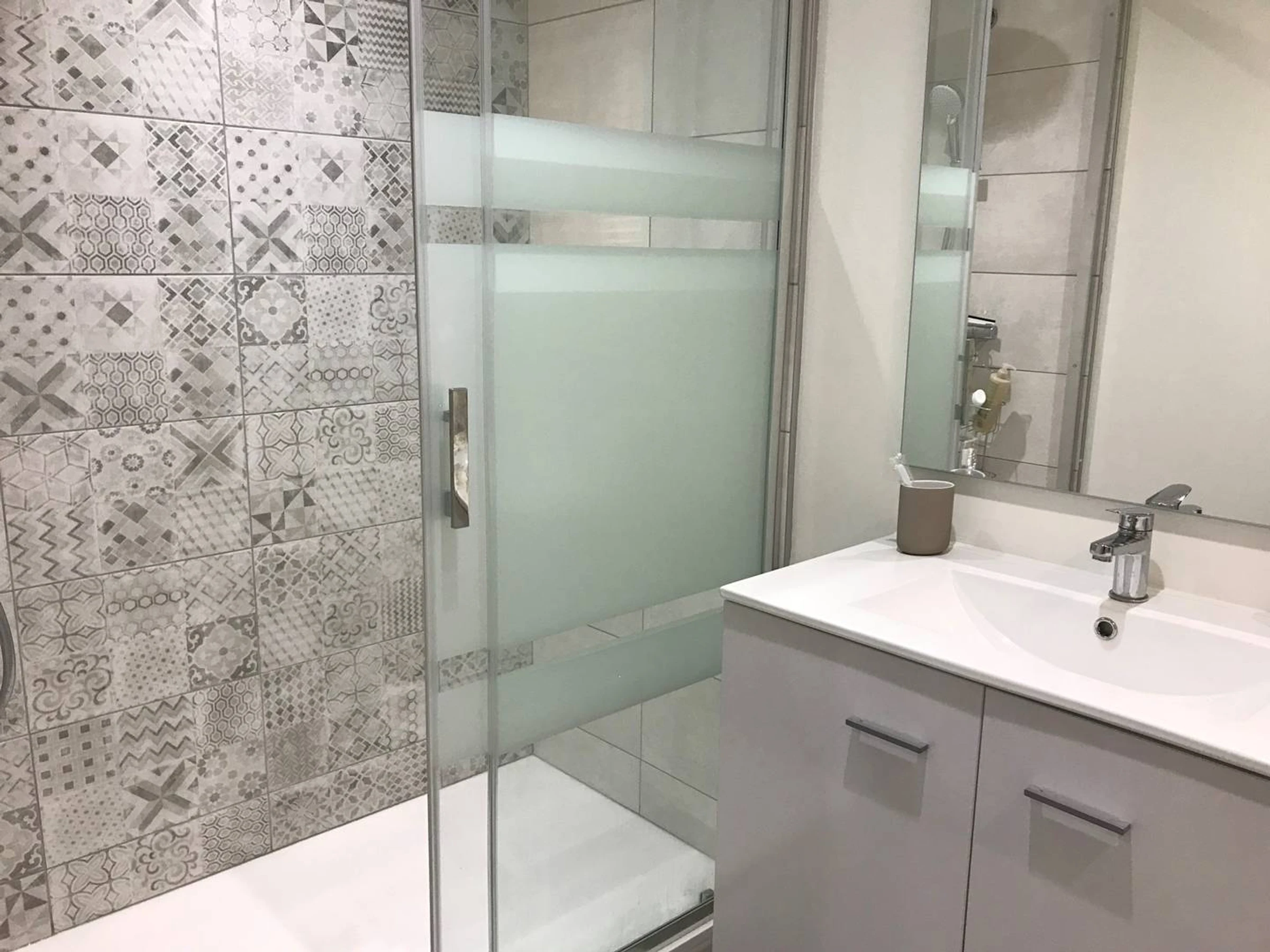 Une salle d’eau avec lave-linge et toilettes séparées.