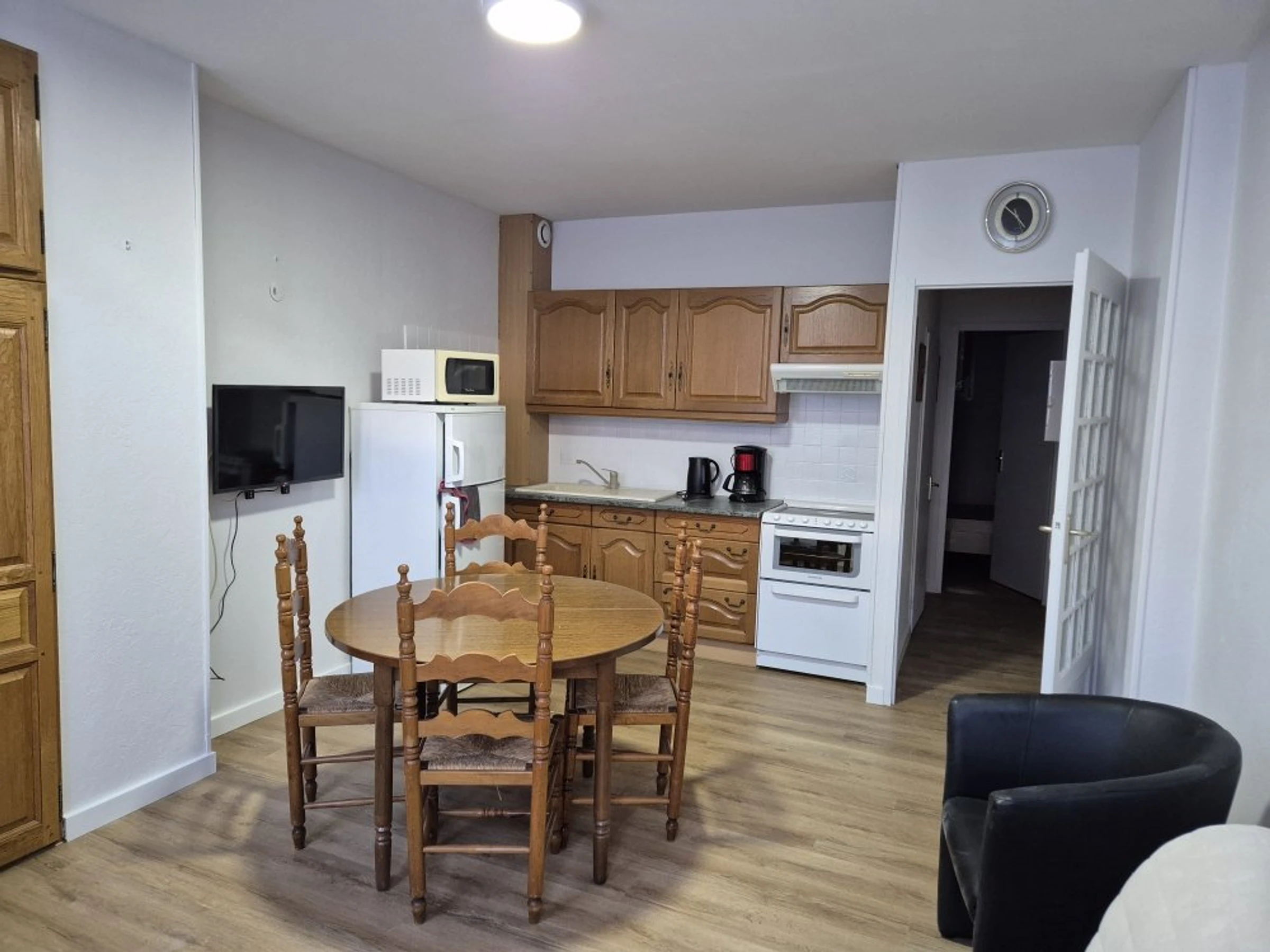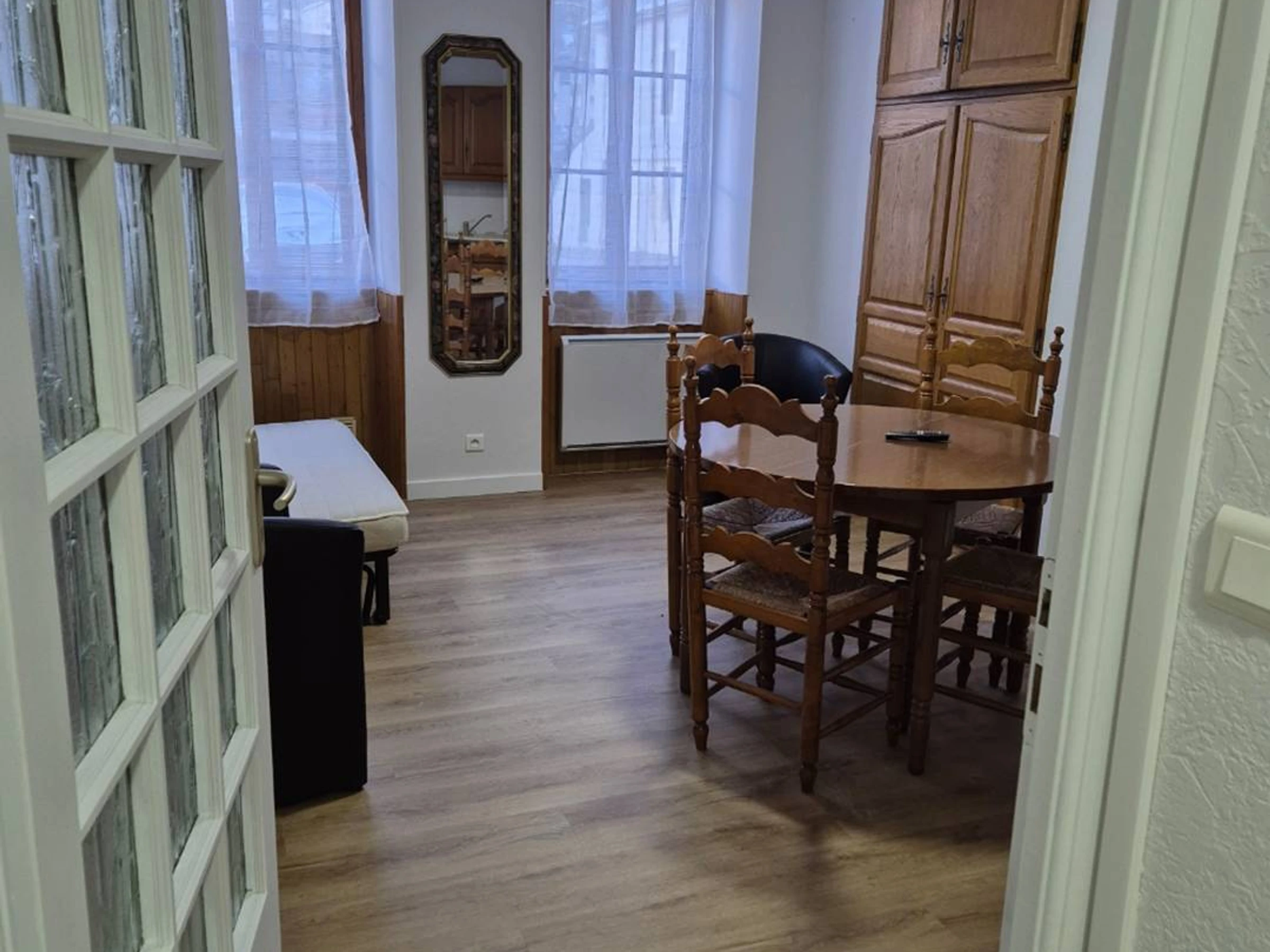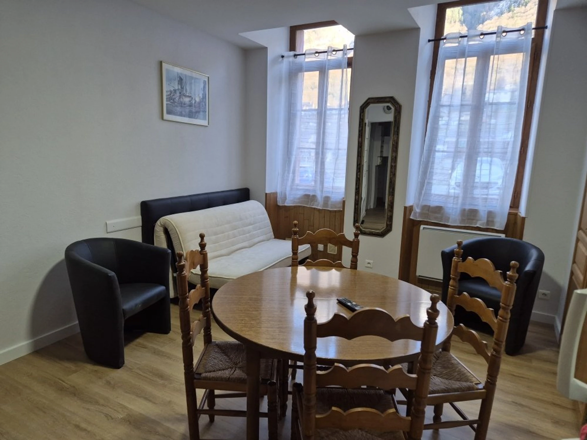 40 m² apartment in a small building, accommodating up to 4 people. Ideally located near the town center, with free municipal parking nearby. The apartment features a living room with a fully equipped kitchen, TV lounge, and dining area. There is one bedroom with a double bed (140 cm) and storage, and a mezzanine sleeping area for two. The bathroom has a shower, sink, and separate toilet. A ski locker is available on the ground floor of the building.