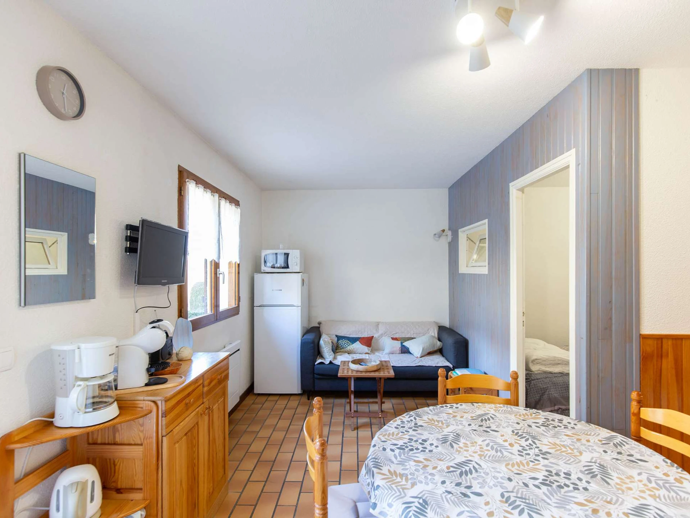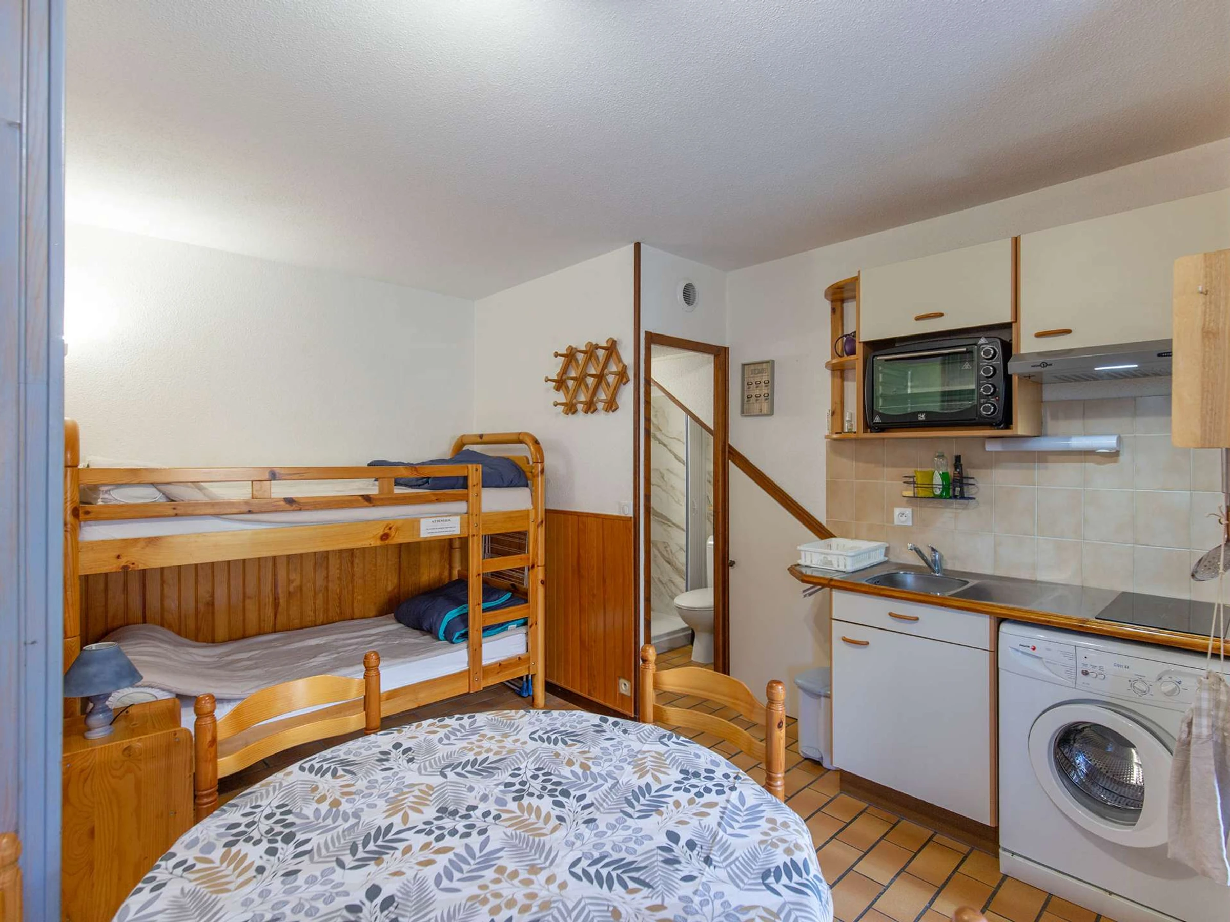 This accommodation features a separate bedroom with a double bed (140x190 cm) and an alcove with two single bunk beds (90x190 cm).