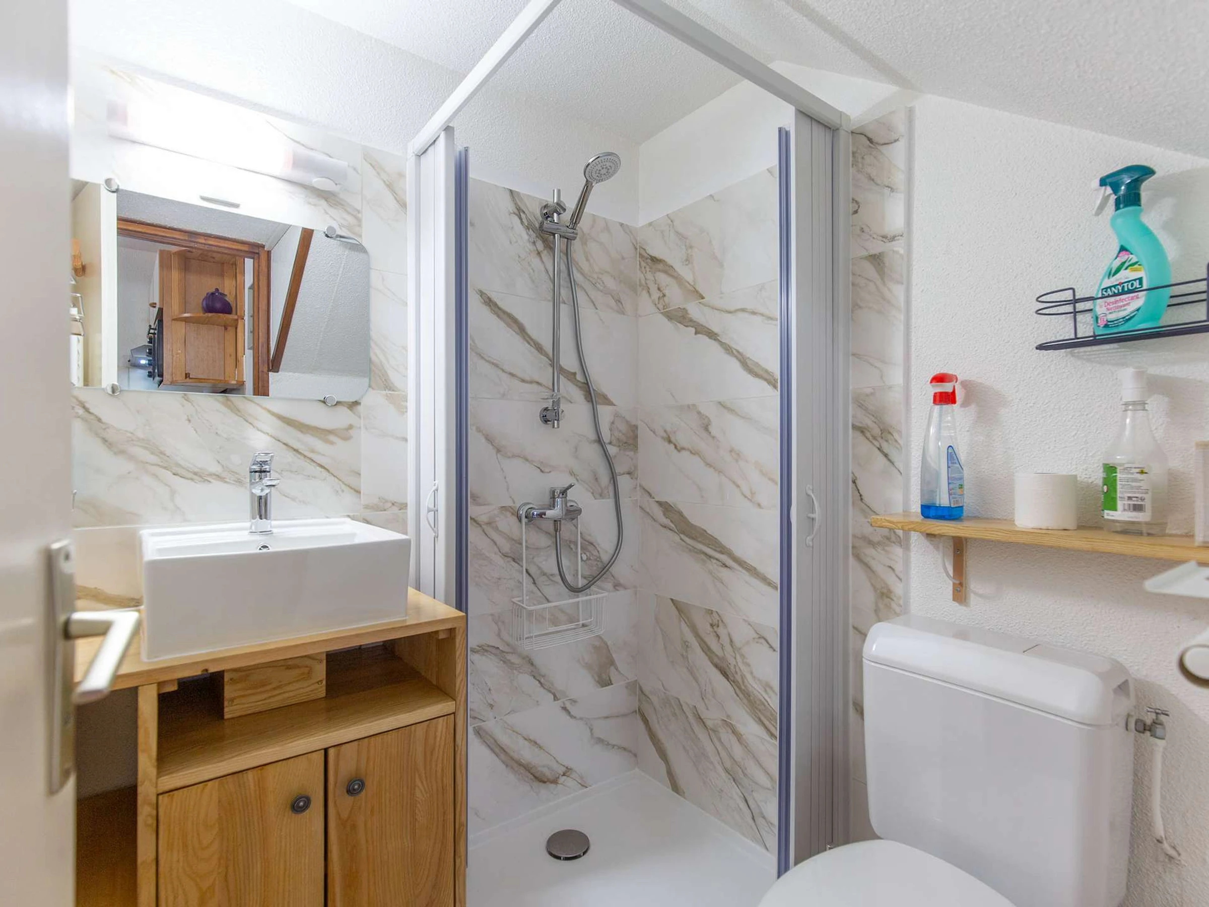 The bathroom has been recently renovated, and this chalet is fully equipped with everything you need for a comfortable stay.