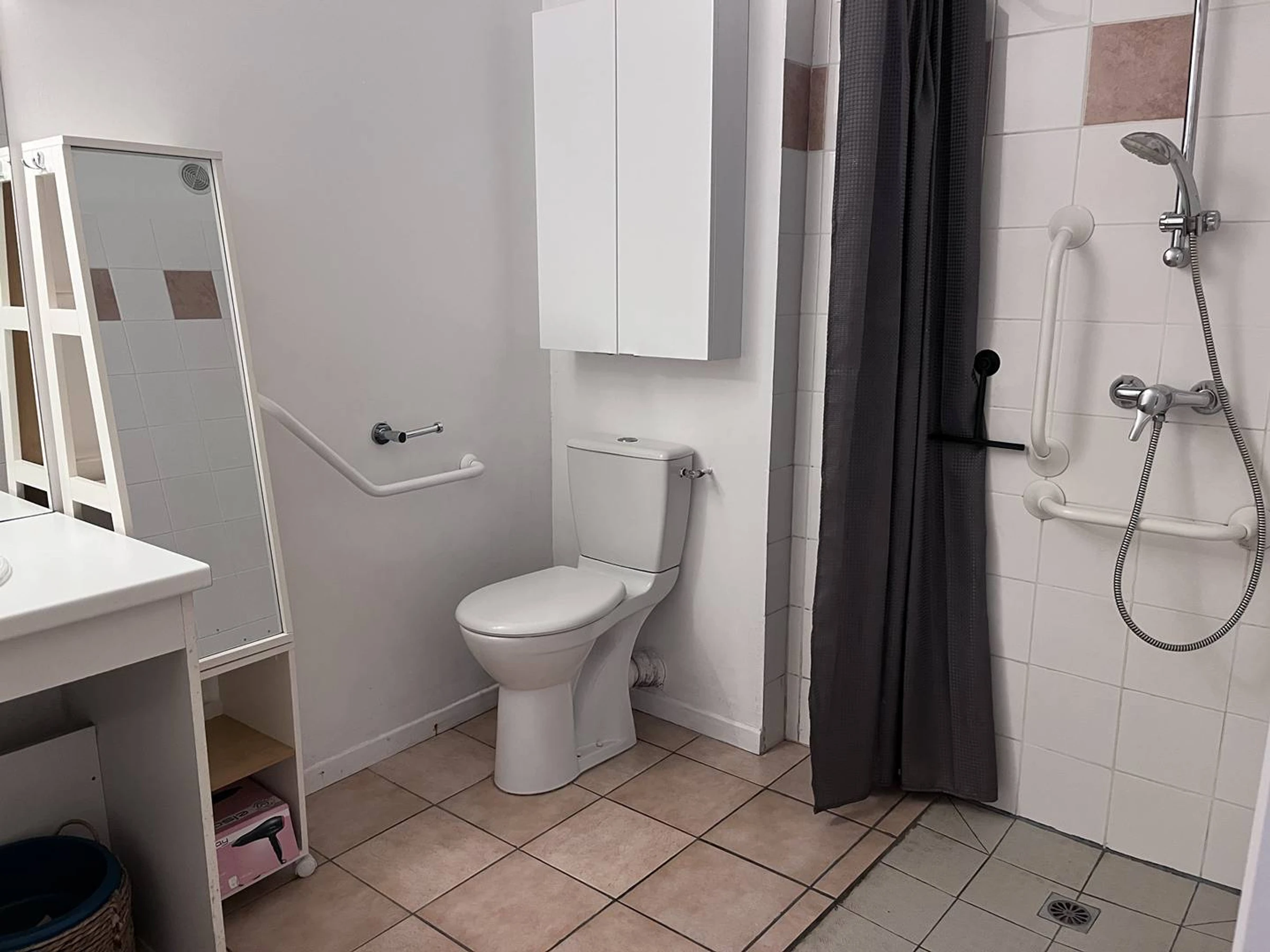 Une salle d'eau avec douche et wc.