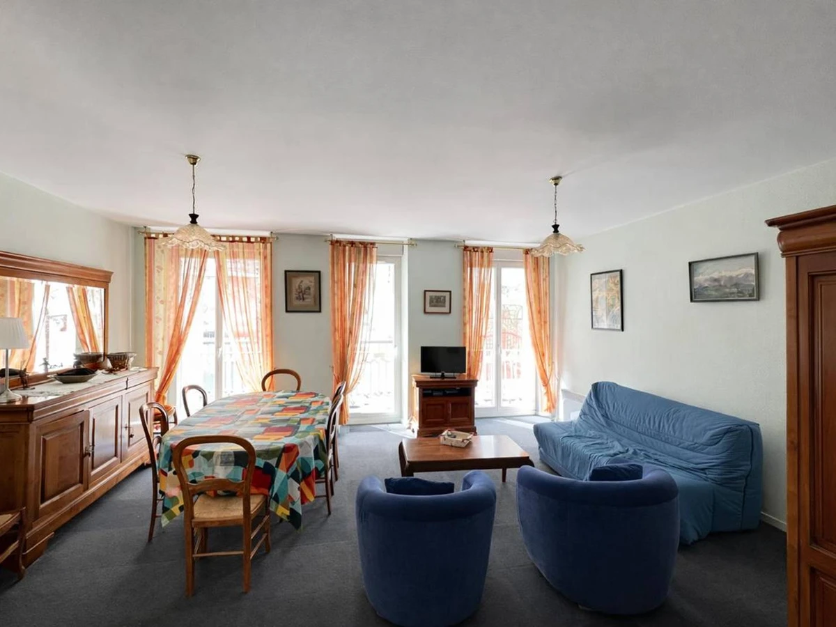 Very spacious west-facing apartment of 80 m² which can accommodate 8 people. A main living room/living room with balconies, a BZ for two people. A master suite with 140 cm bed + a bathroom with shower. A second bedroom with 4 beds, 2x2 bunk beds 90 with its bathroom with shower. A fully equipped independent kitchen, oven, refrigerator, washing machine, [hidden] cellar in the basement. Free parking nearby.