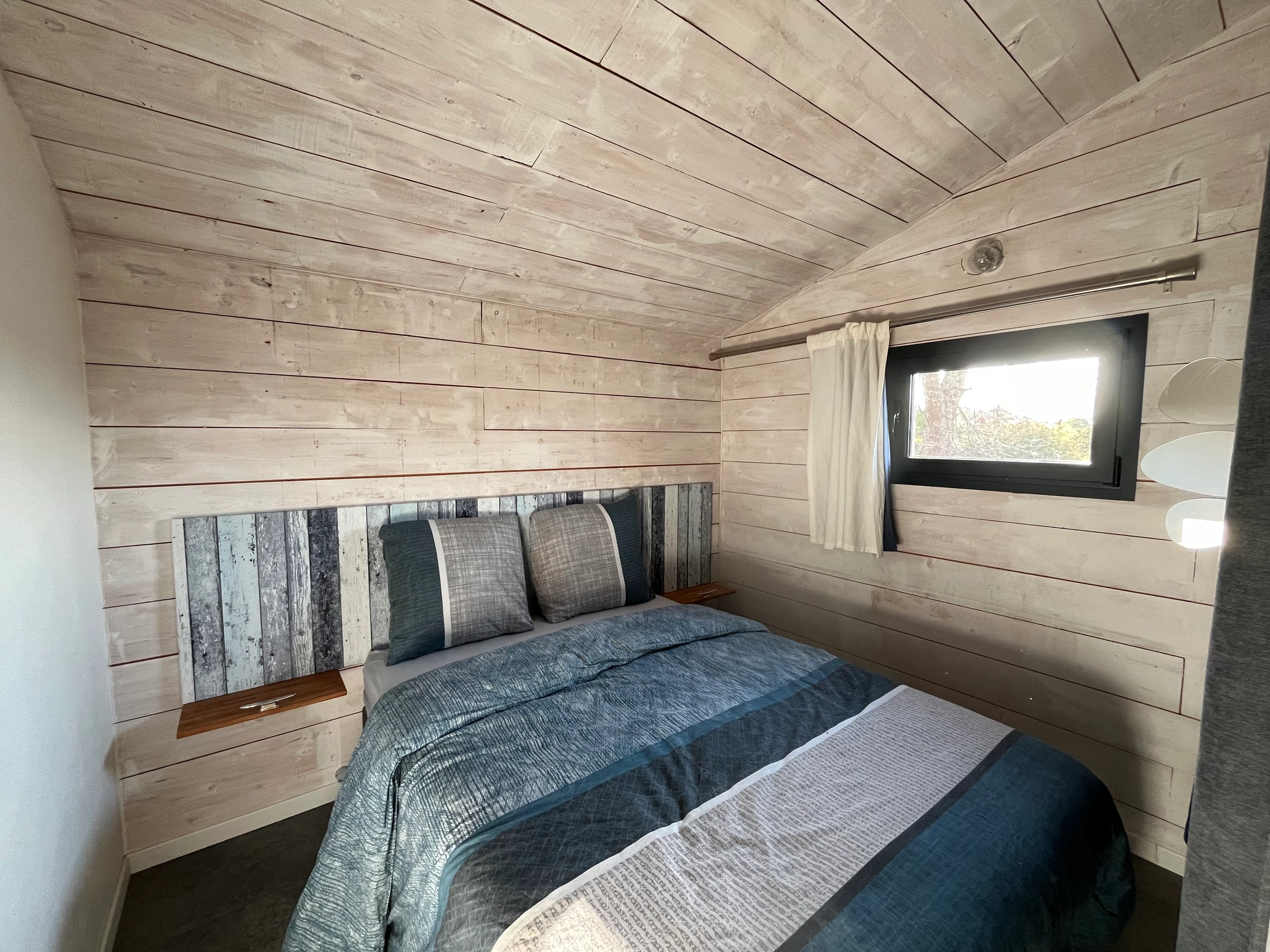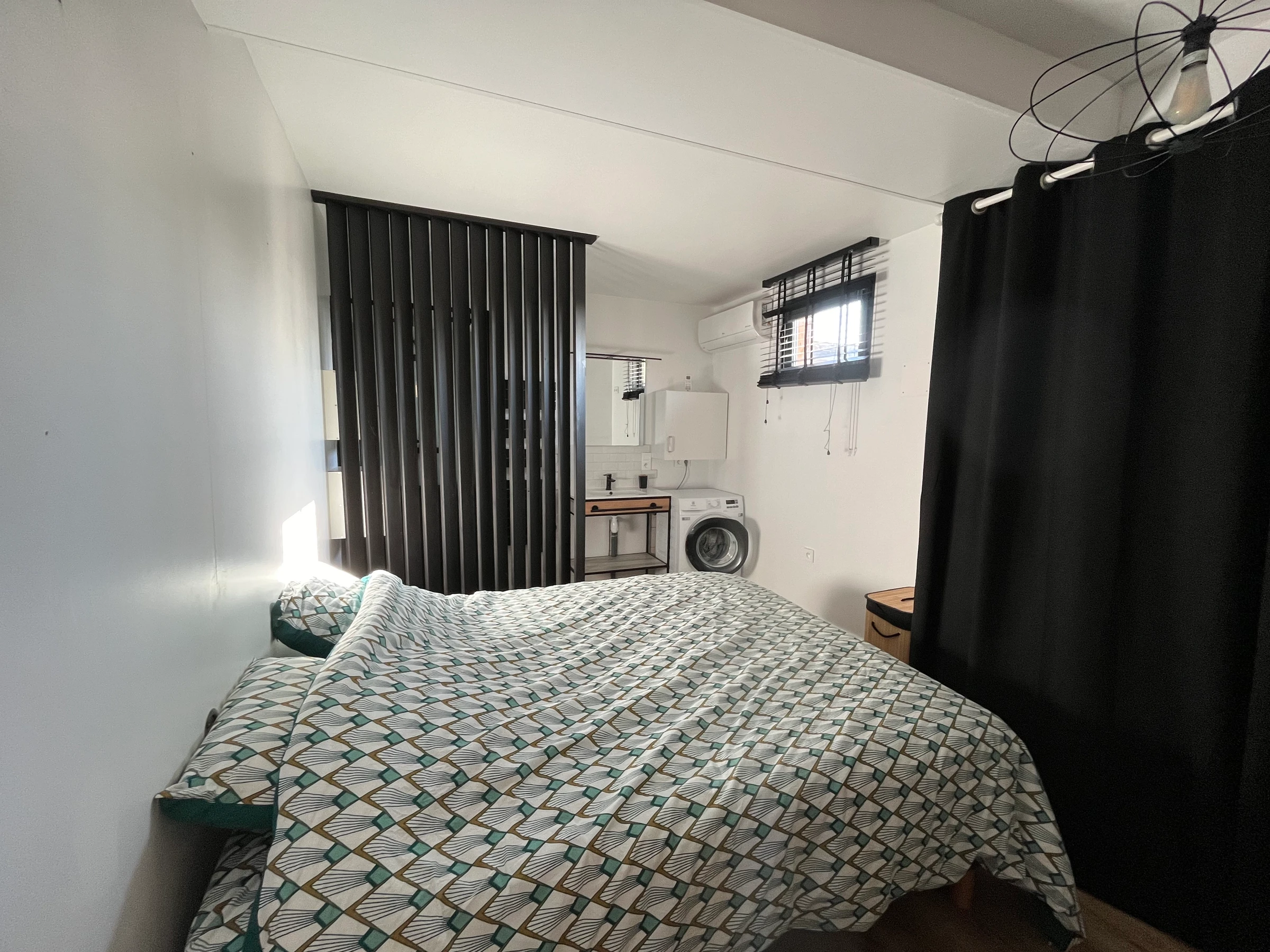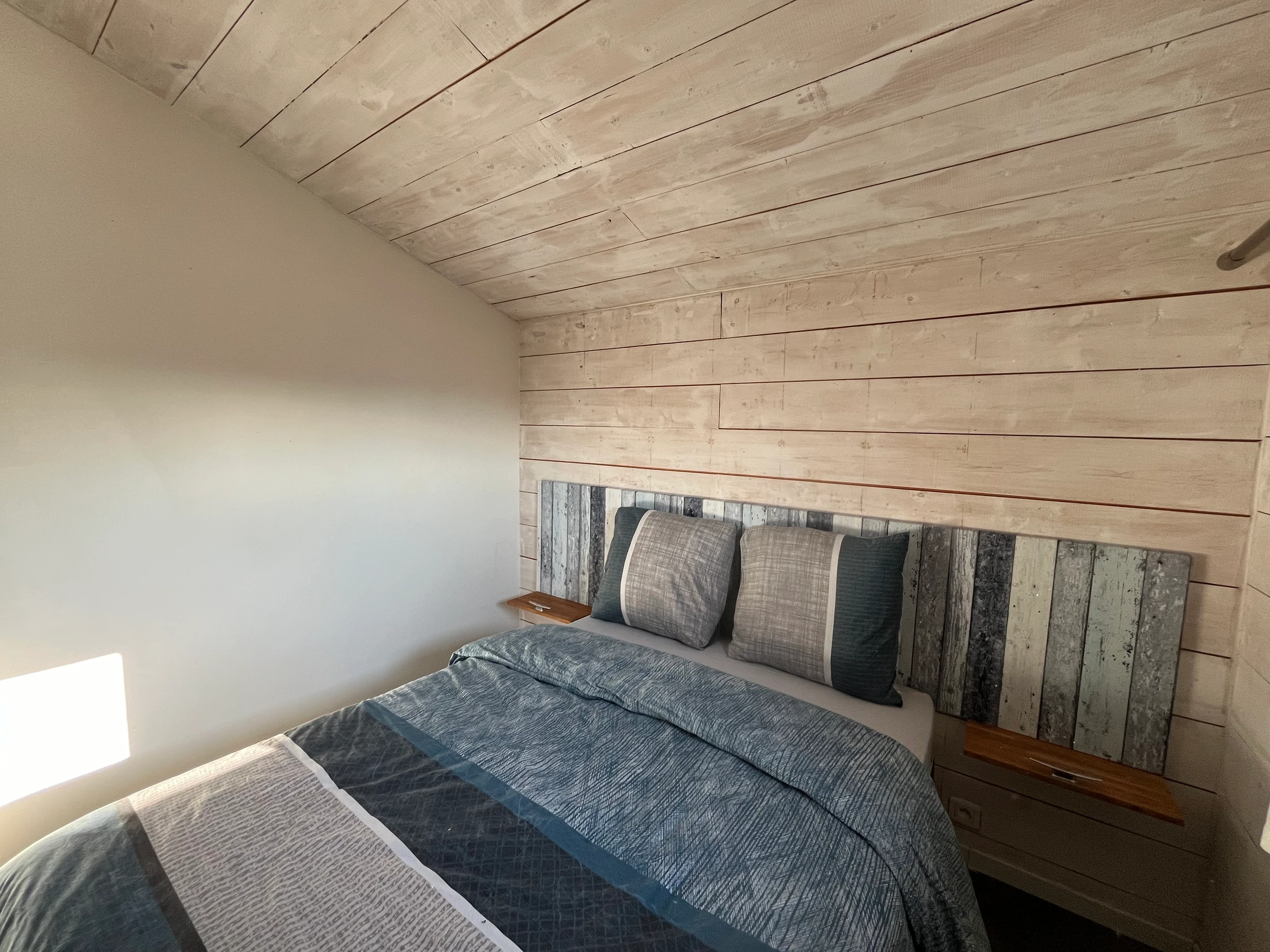 A separate toilet. The first bedroom has a double bed (140 cm), a shower, sink, and washing machine.