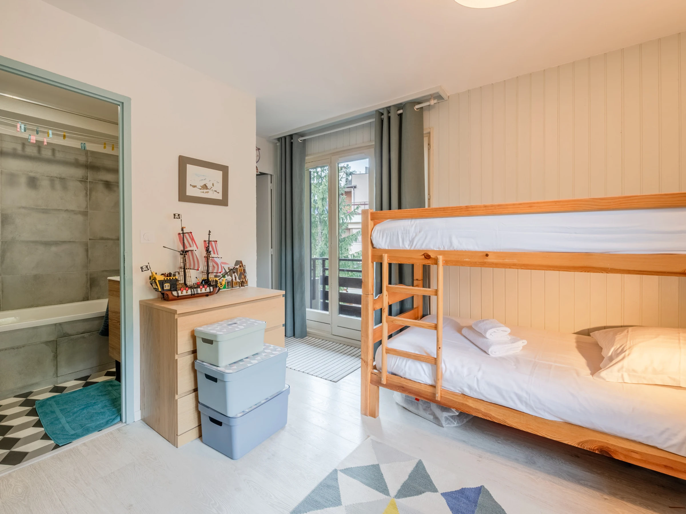 - Dormitory with 4 bunk beds (80x190), en suite bathroom with bathtub and toilet