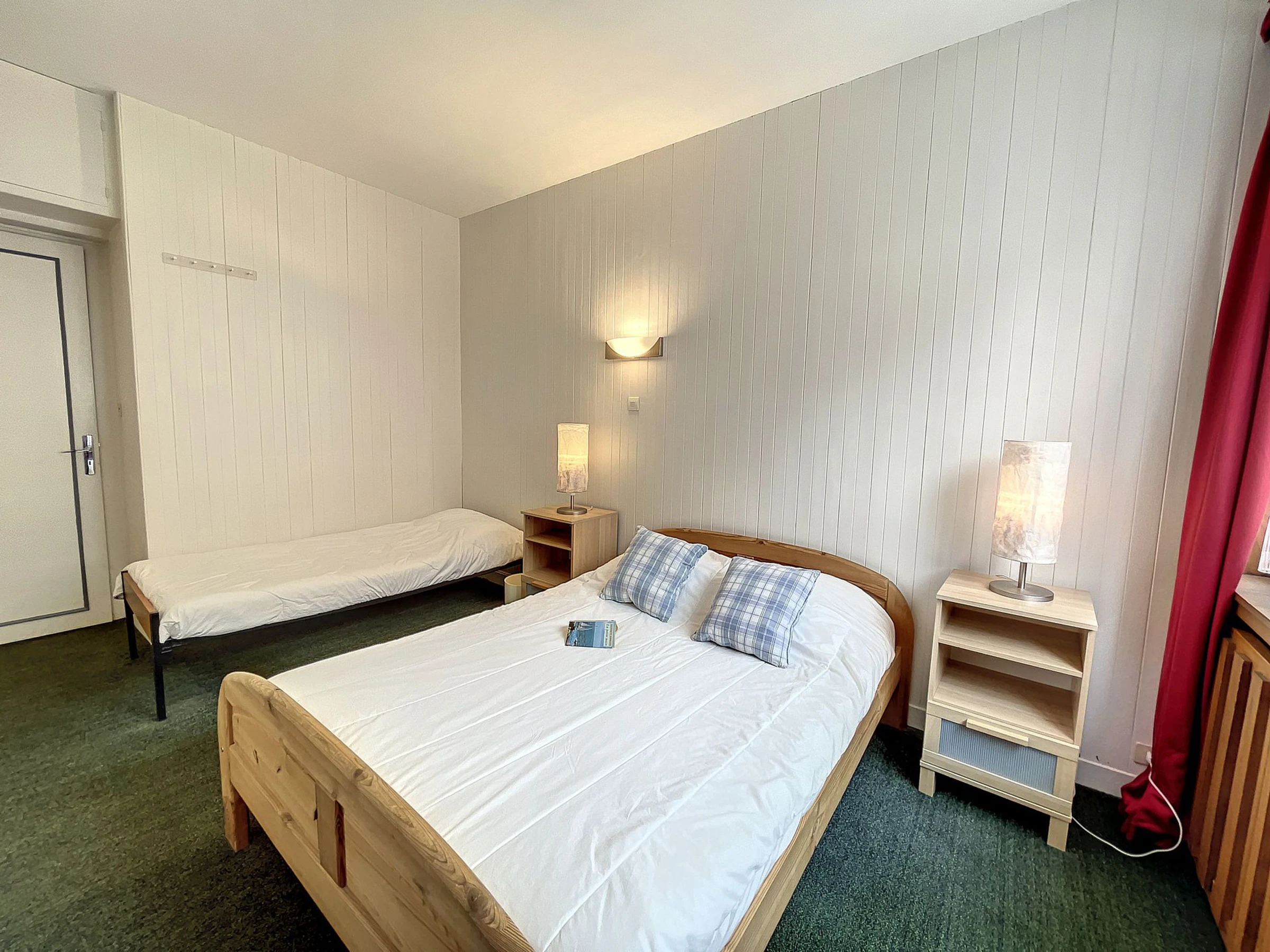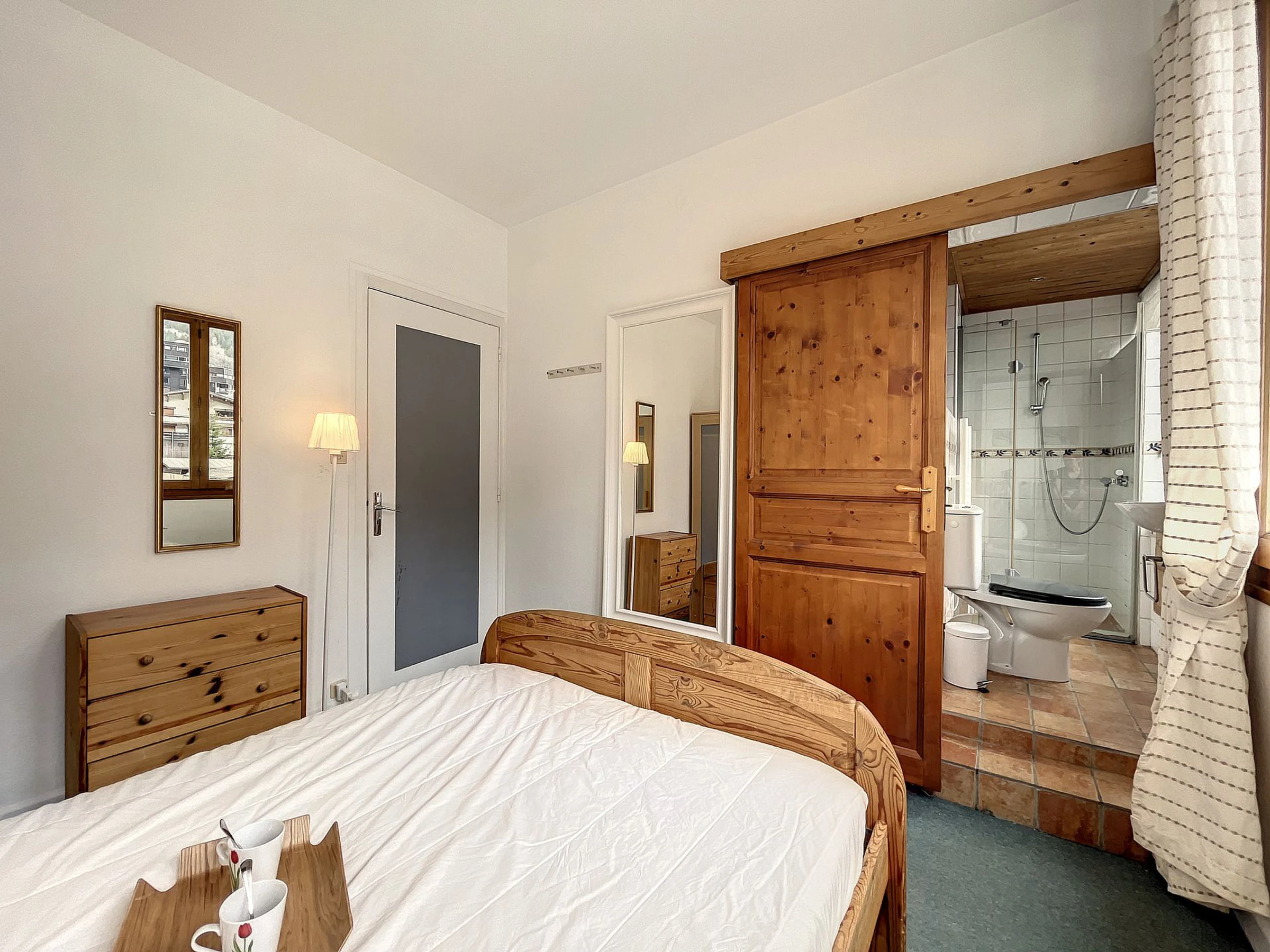 A master bedroom with a double bed (140x190cm) and its shower room with WC, facing North-West with a view on the Brevent. Carpeting on the floor