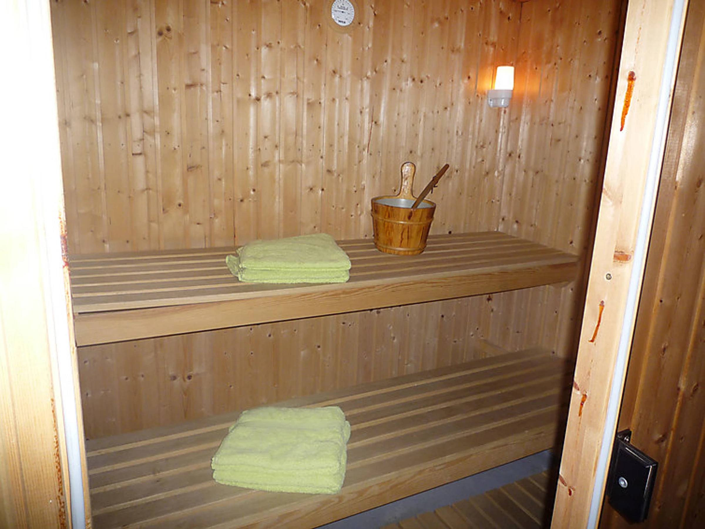 Chalet "Souleiado", 3 storeys. 500 m from the centre, in a quiet, sunny position in the residential district. Private: well-kept garden 450 m2 (fenced). Terrace (30 m2), garden furniture, barbecue. In the house: internet access, sauna, storage room for skis, washing machine, tumble dryer. Room cleaning 2 times per week (included). Motor access to the house. Parking, single garage. Shop 500 m, supermarket 1 km, restaurant 500 m, bus stop 100 m, railway station 1.9 km. Golf course (18 hole) 1.6 km, tennis 450 m, sports centre 800 m, ski lift 900 m, gondola lift 1.2 km, ski bus stop 100 m, cross country ski track 1.3 km, ice field 1 km. Please note: ski bus (free of charge). Wood not included, possibility to purchase locally.