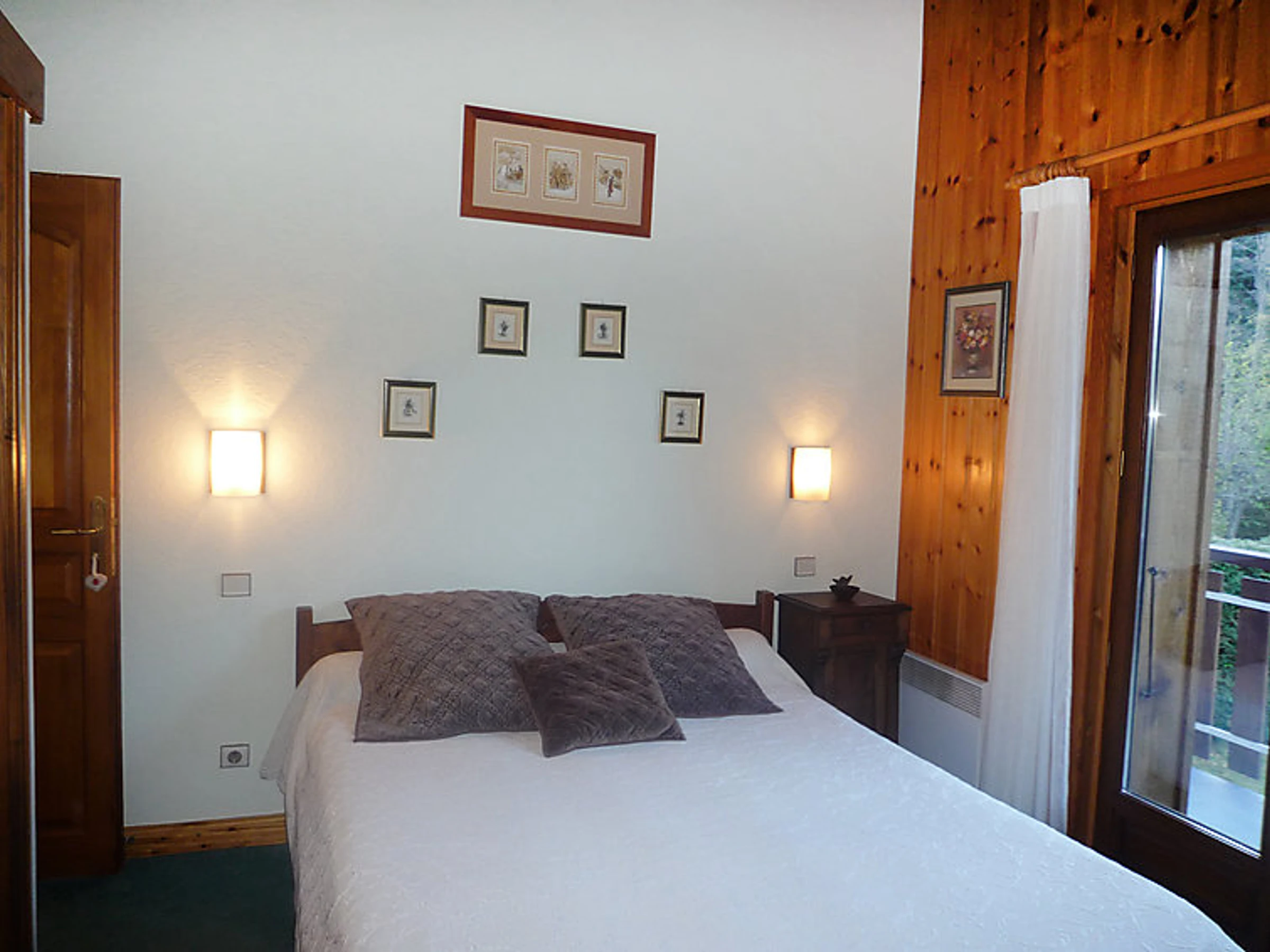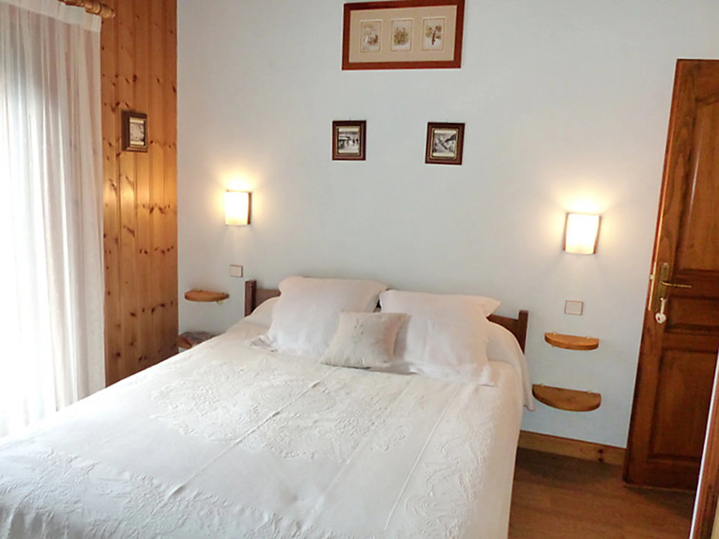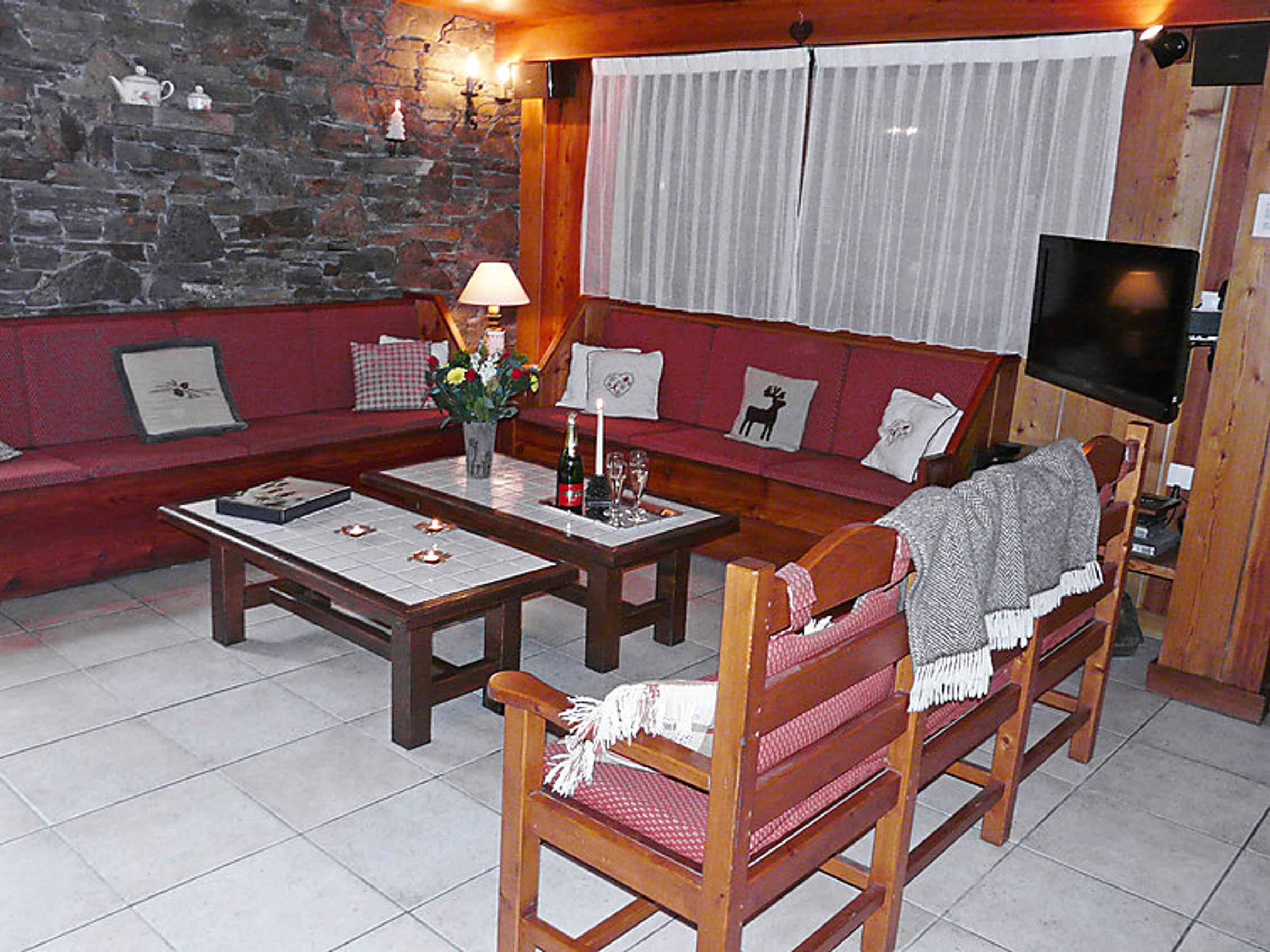 7-room chalet 230 m2 on 3 levels. Comfortable furnishings: living room with panoramic window with dining table. Exit to the terrace. Lounge with open-hearth fireplace, satellite TV, hi-fi system and DVD. Open kitchen (4 hot plates, oven, dishwasher, microwave, freezer). Sep. WC. Electric heating. On the lower ground floor: 1 room with 1 french bed, separate WC and shower. 1 room with 2 beds, separate WC and shower. Upper floor: 1 room with 1 french bed, bathroom, separate WC and TV. Exit to the balcony. 1 room with 1 french bed, bathroom and separate WC. Exit to the balcony. 1 room with 2 beds, bathroom and separate WC. 1 room with 1 french bed and shower/WC. Balcony, south facing position. Terrace furniture, deck chairs. Very beautiful view of the mountains. Facilities: washing machine, dryer, safe, iron, children's high chair, baby cot, hair dryer. Internet (WiFi, free). Reserved parking, garage (2 cars). Maximum 2 pets/ dogs allowed.