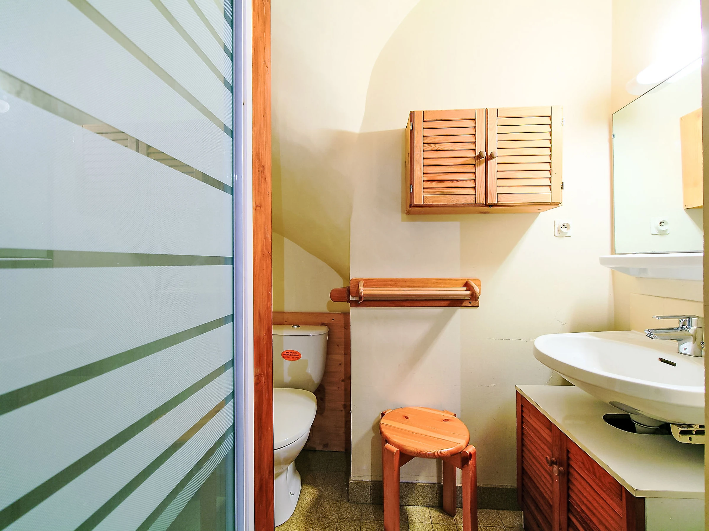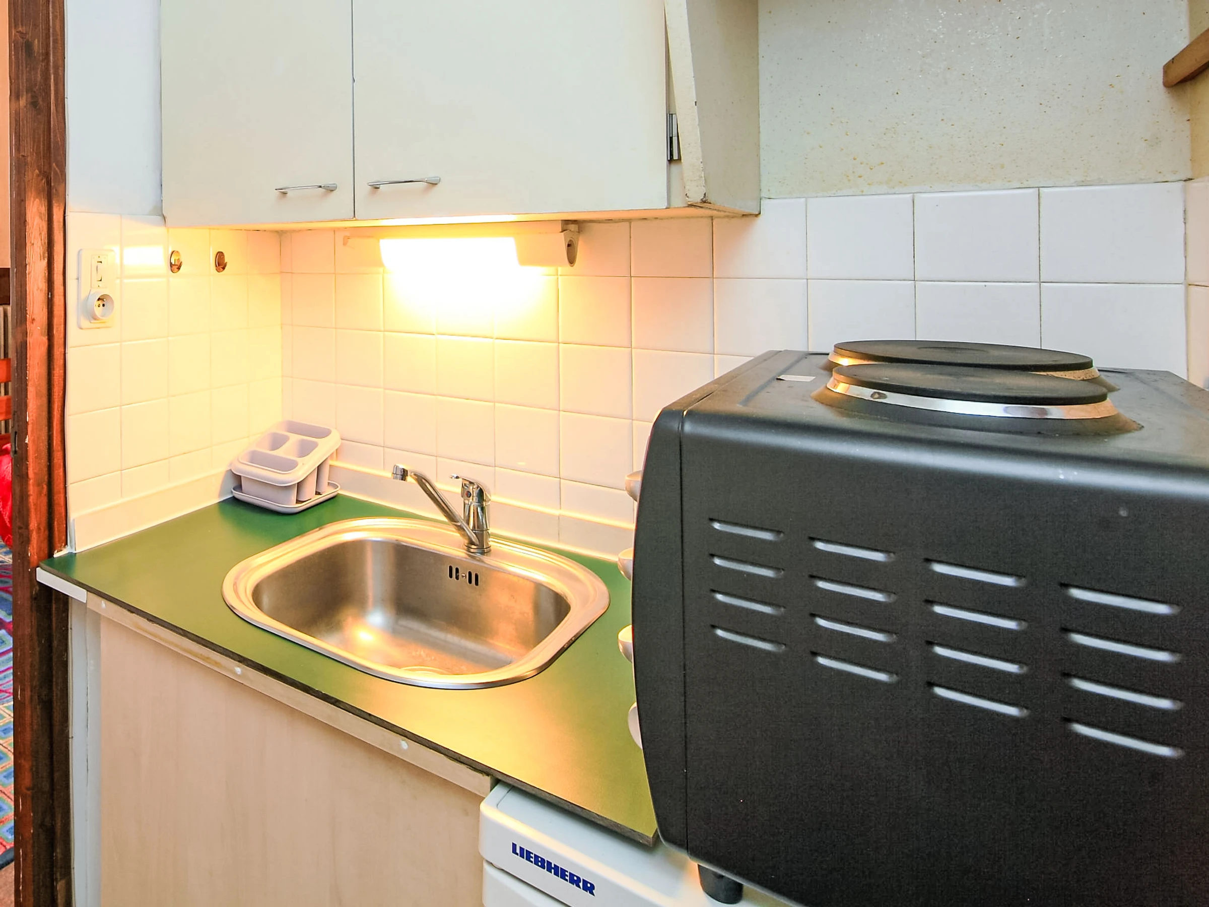 1-room apartment 20 m2 on 5th floor. Very simple furnishings: living/dining room with 1 double sofabed and TV. Exit to the balcony. Kitchenette (2 hot plates, mini-oven, kettle, electric coffee machine). Shower/WC. Small balcony, north-east facing position. Beautiful view of the mountains. Facilities: Internet (WiFi, extra). Please note: no parking. Maximum 1 small pet/ dog allowed. TV only FR. Smoke alarm. [hidden]
