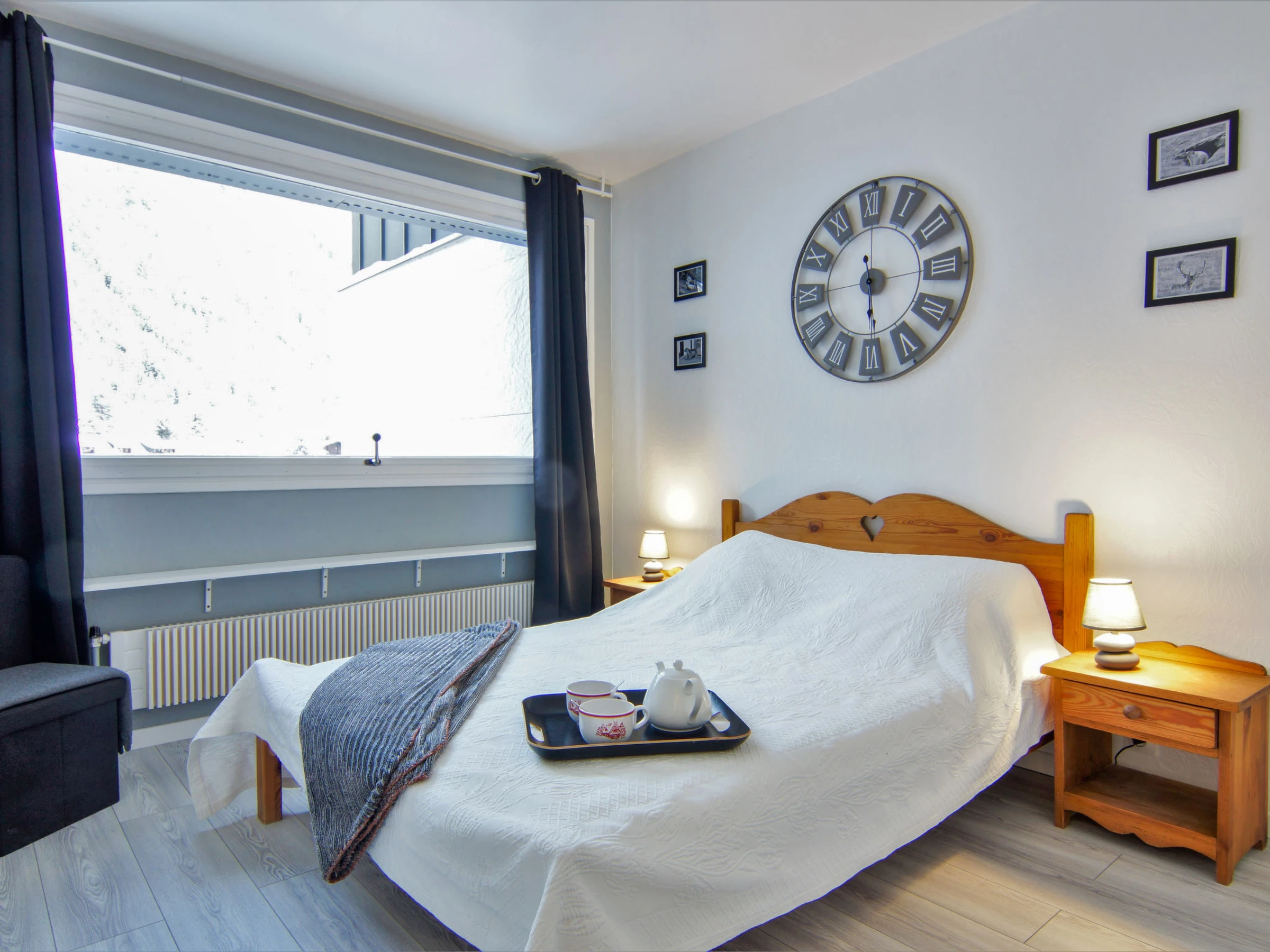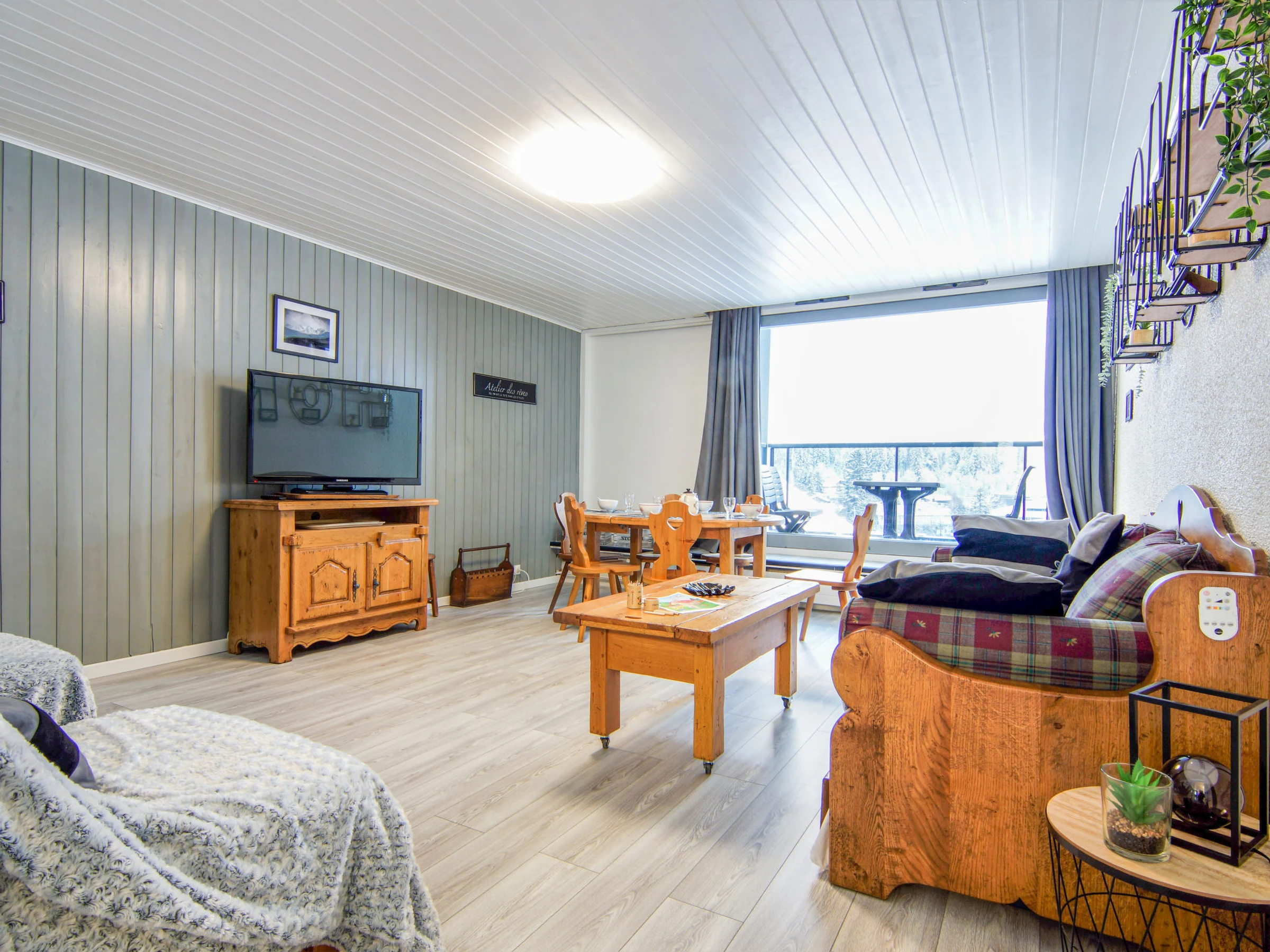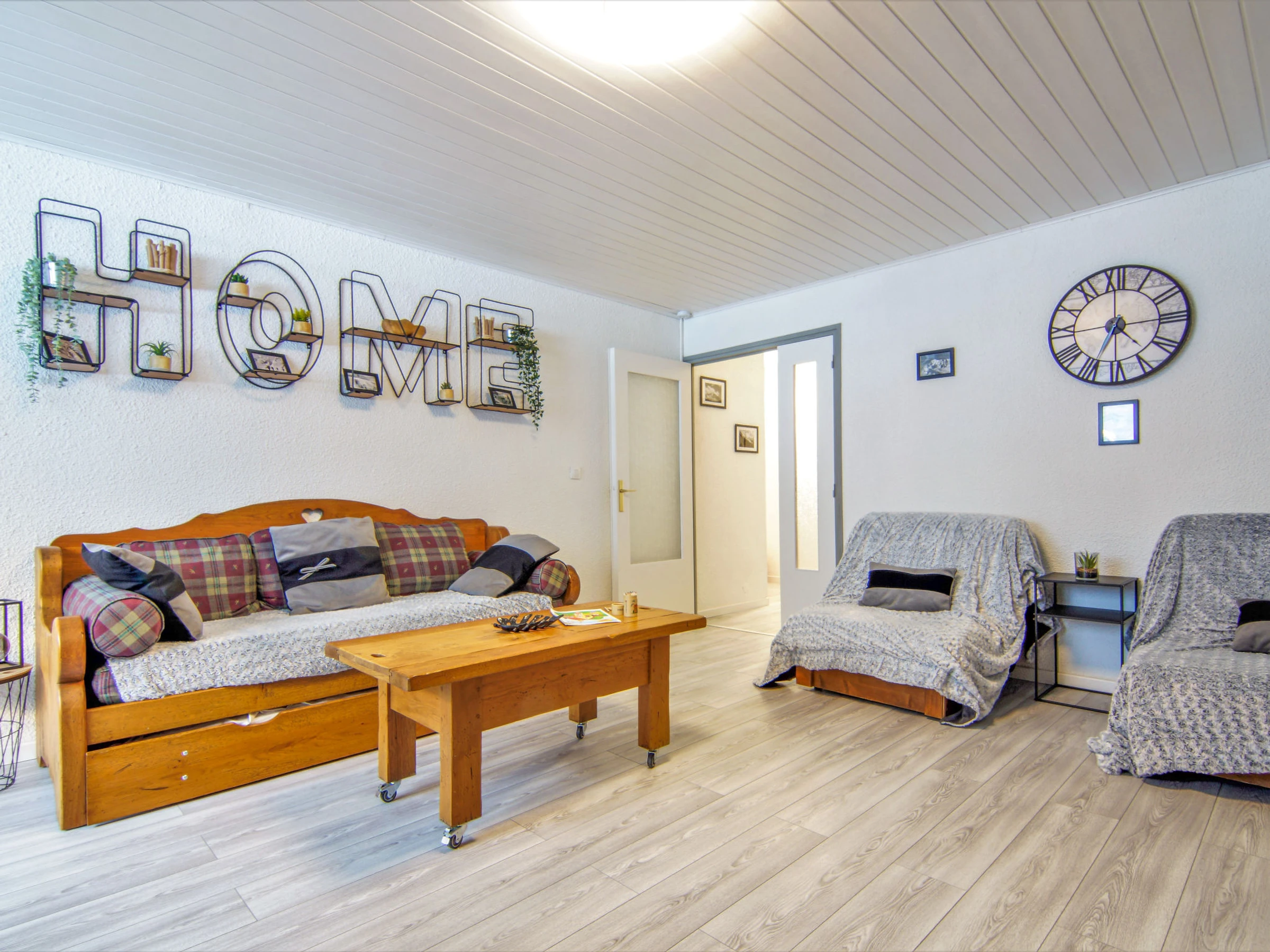 2-room apartment 52 m2 on 5th floor. Living/dining room with 1 pull-out bed (2 pers. 2 x 90 cm, length 190 cm), TV. Exit to the balcony. 1 room with 1 french bed (140 cm, length 190 cm). Kitchenette (1 induction hot plates, kettle, microwave, electric coffee machine). Bath/WC. Balcony, south-east facing position. Beautiful view of the mountains. Facilities: washing machine. Internet (WiFi, extra). Parking space n 8. Please note: TV only FR. Smoke alarm. [hidden]