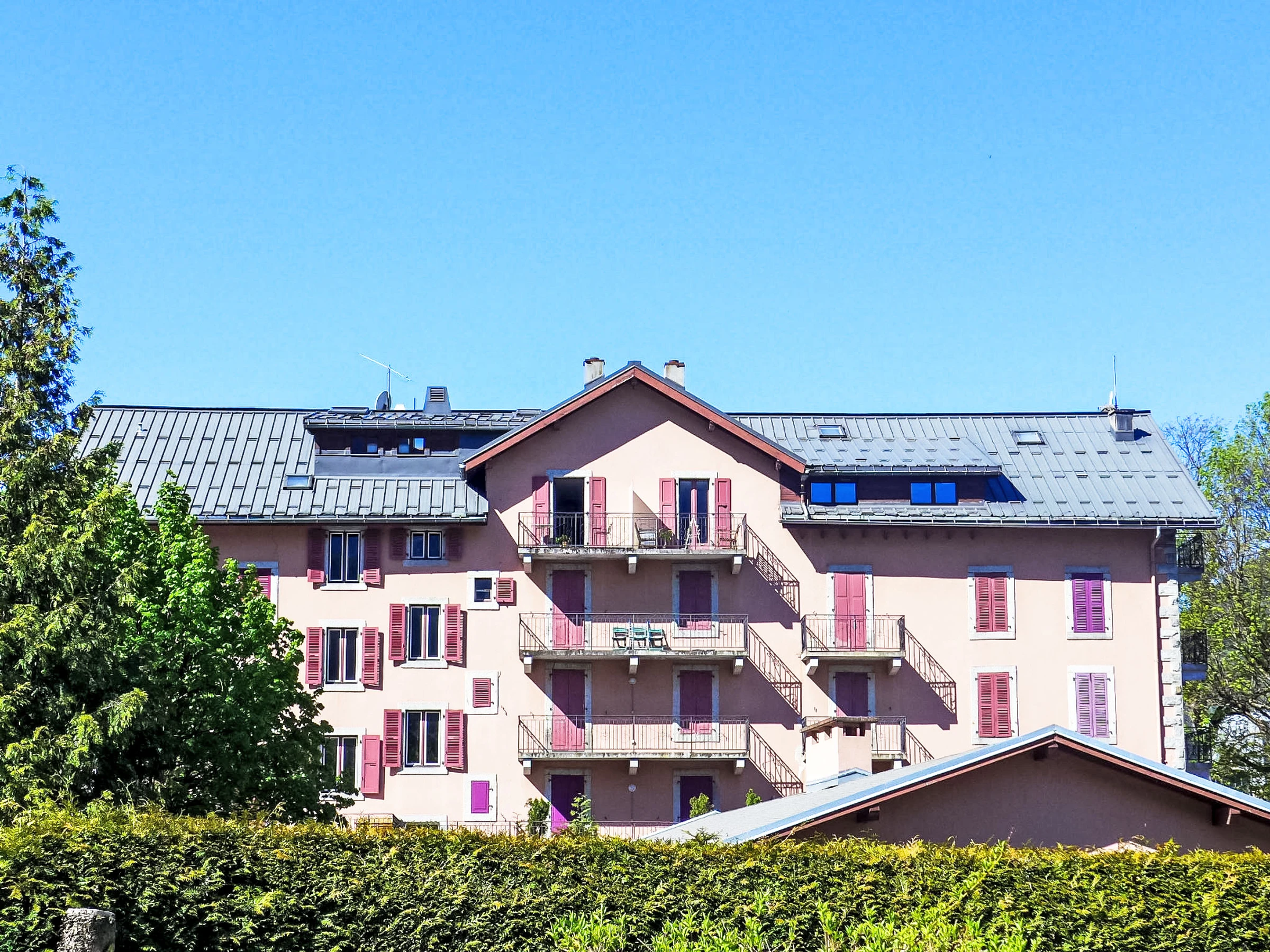 Residence "L'Univers", 5 storeys. In the district of La Gare, 250 m from the centre. In the complex: lift, storage room for bicycles, storage room for skis. Parking. Shop, grocery 80 m, shopping centre 300 m, restaurant 50 m, bar 30 m, bus stop 50 m, railway station. Golf course (18 hole) 3.3 km, sports centre 500 m, skisport facilities 800 m, ski school, cross country ski track 500 m.