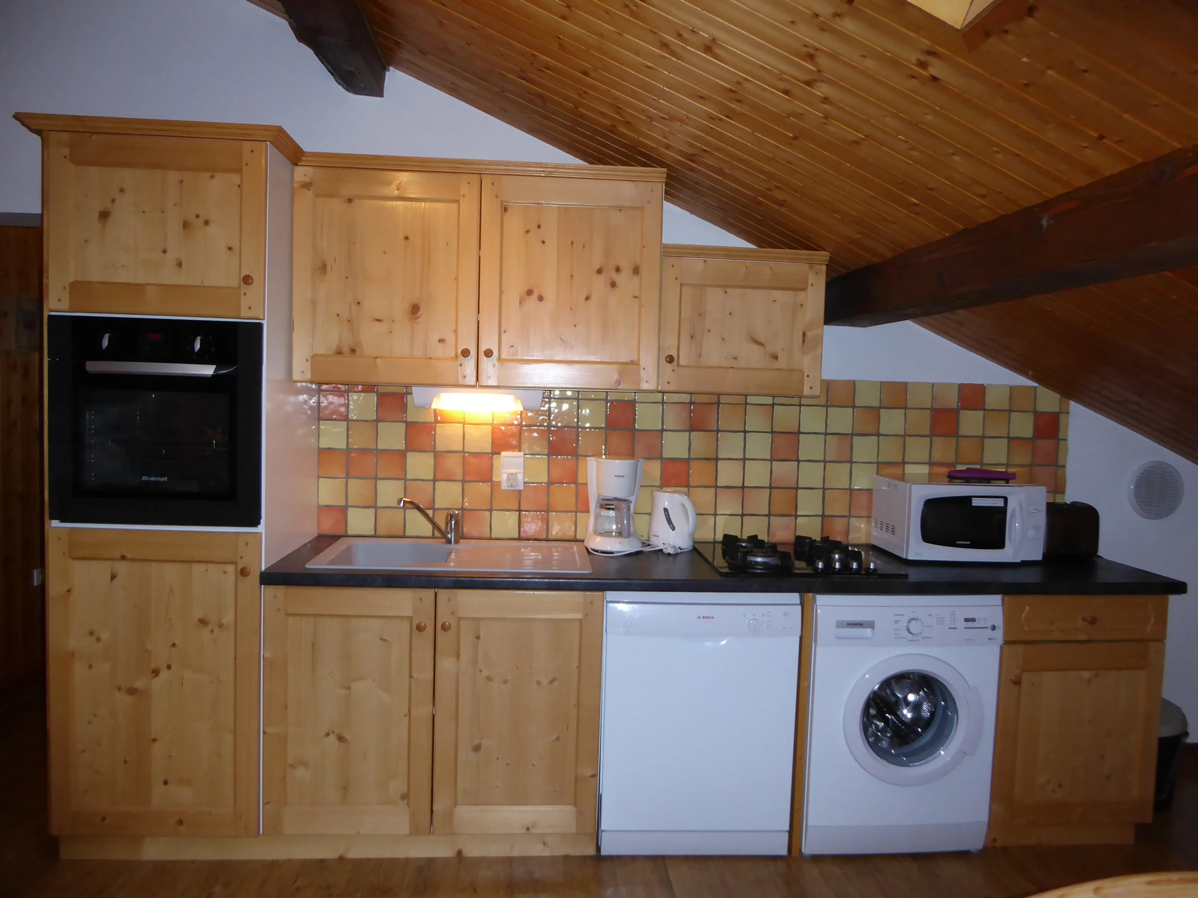 Living-room with kitchen (fridge, dishwasher, washing-machine, micro wave, oven, gas hob), and sofa bed sleeps 2 (Wifi, television),