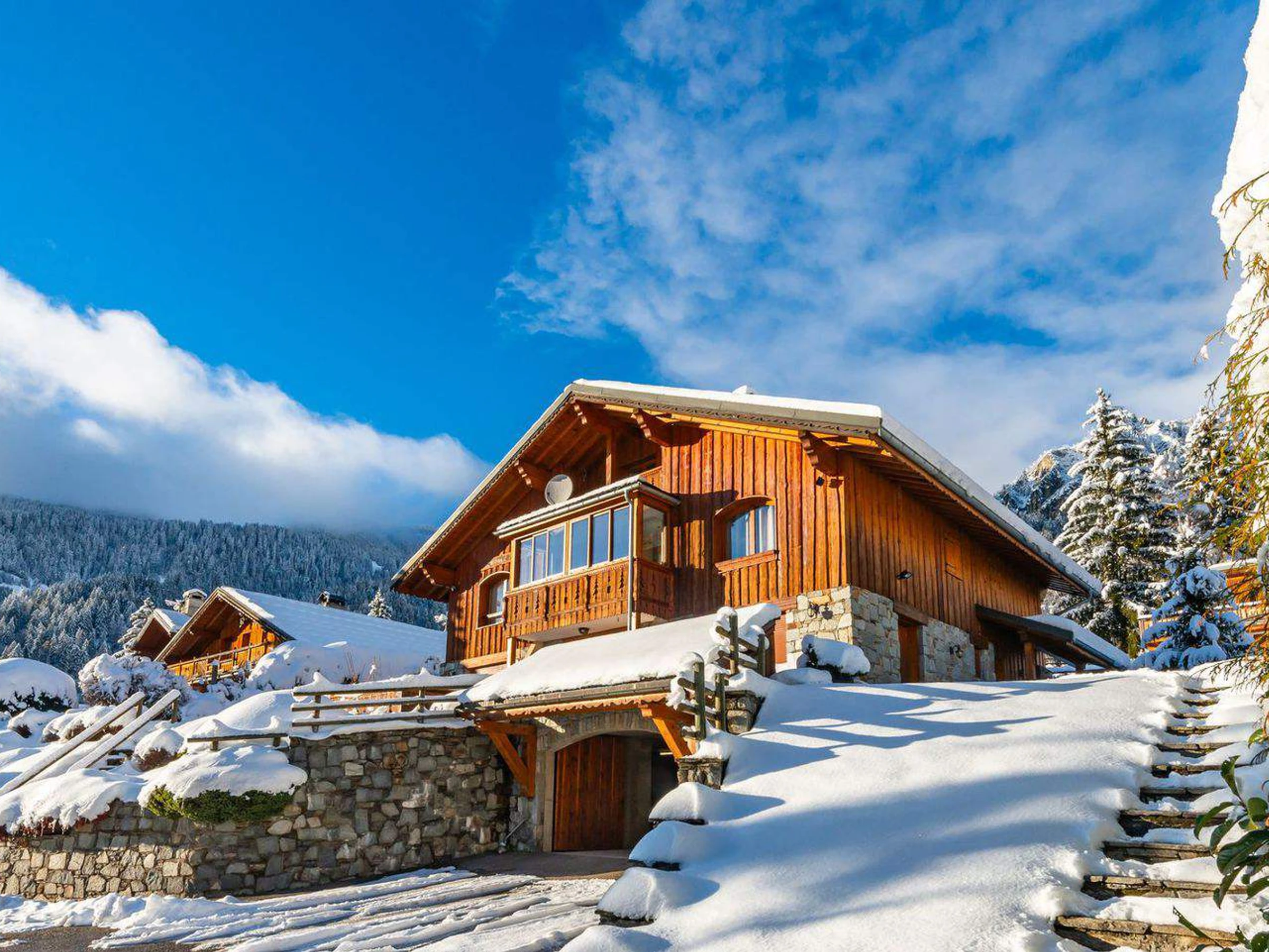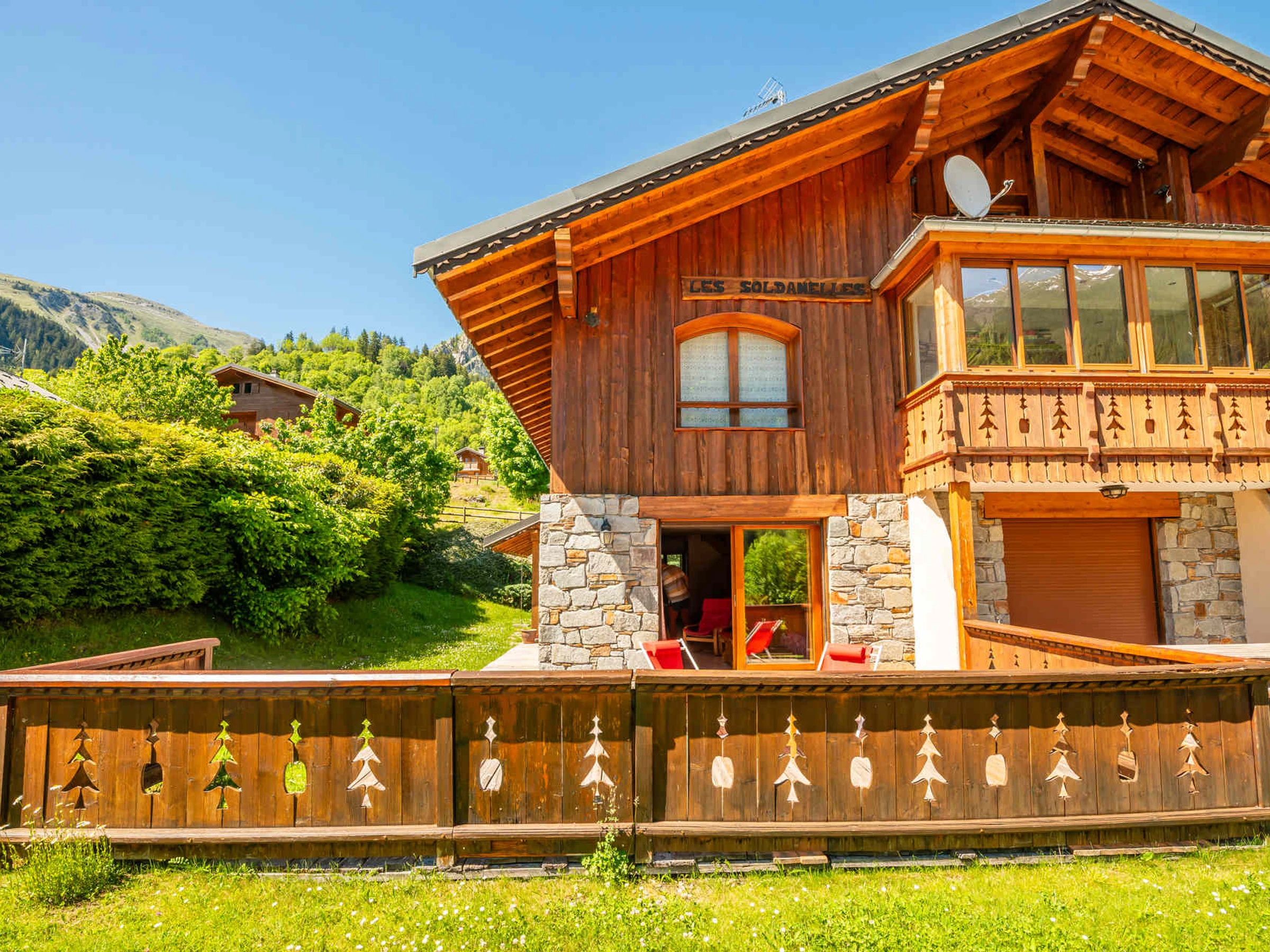 The residence "Les Soldanelles" is located approx. 700 from the village center, shops and slopes, with a free shuttle stop nearby during the winter season. It is a big independent chalet in stones and slate, composed of 4 dwellings, exposed SOUTH and WEST, with a common ground.