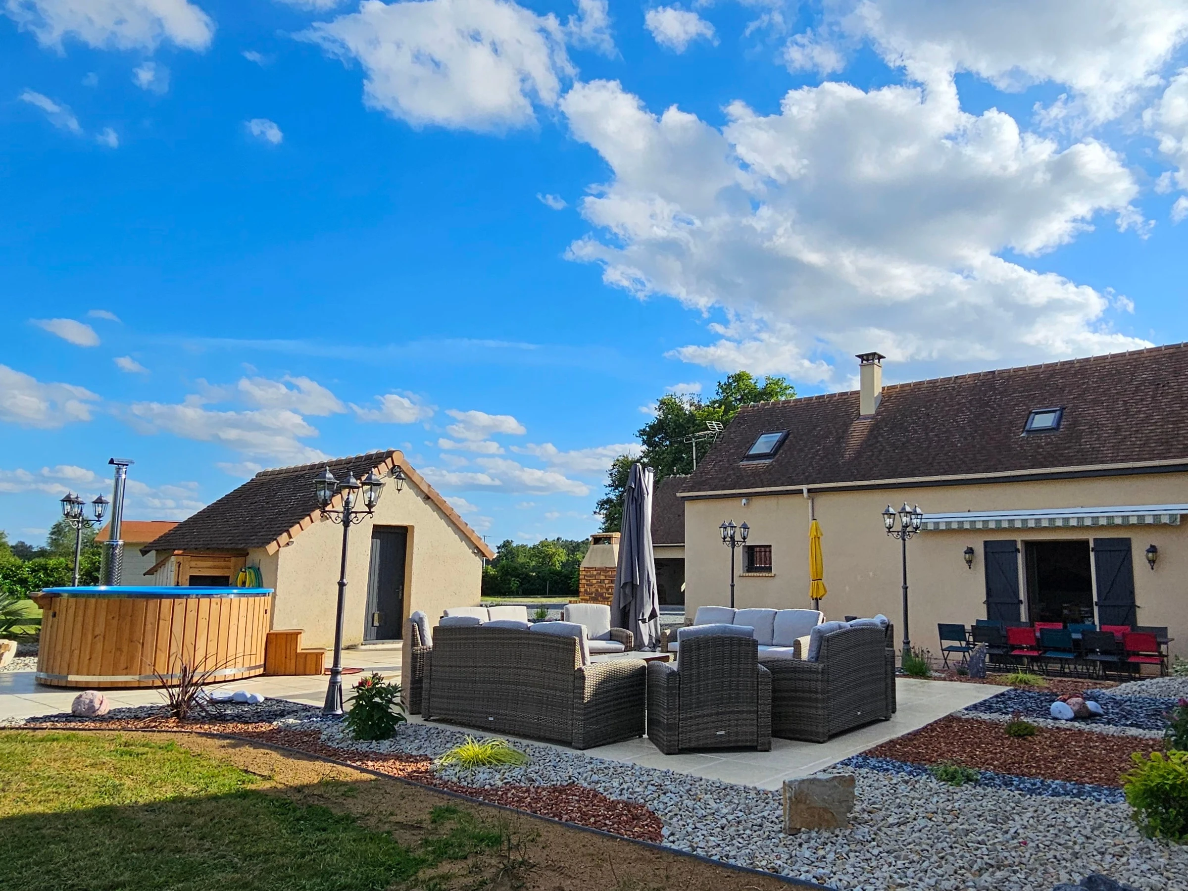 Charming 3-star rated cottage near Le Mans, the 24 Hours of Le Mans circuit, and the Arche de la Nature nature reserve. Entire house sleeps 12, 5 bedrooms, 9 beds. Nordic bath for 6-8 people available for an additional €80.