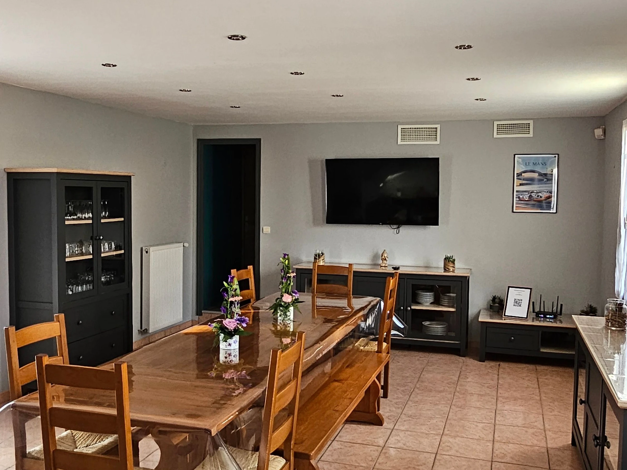 - 1 large family dining room with a large flat-screen TV