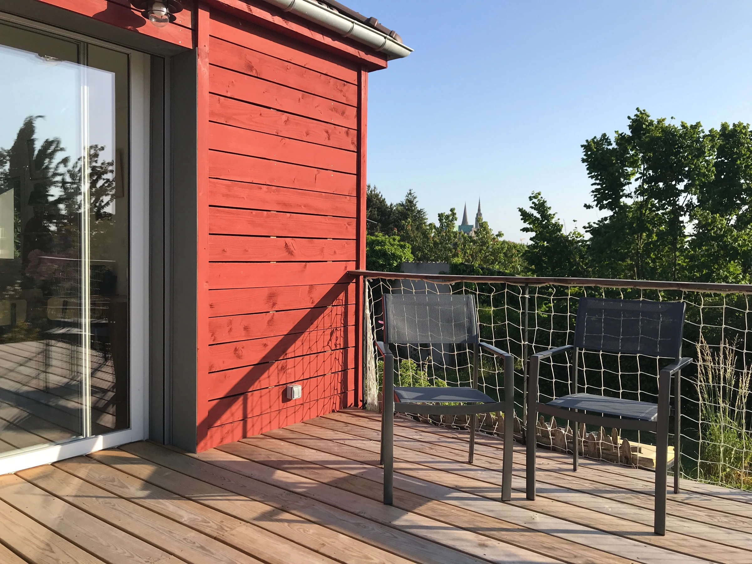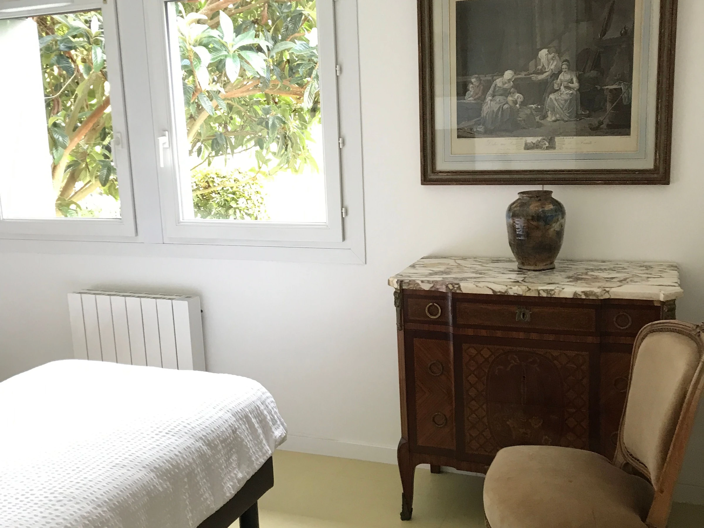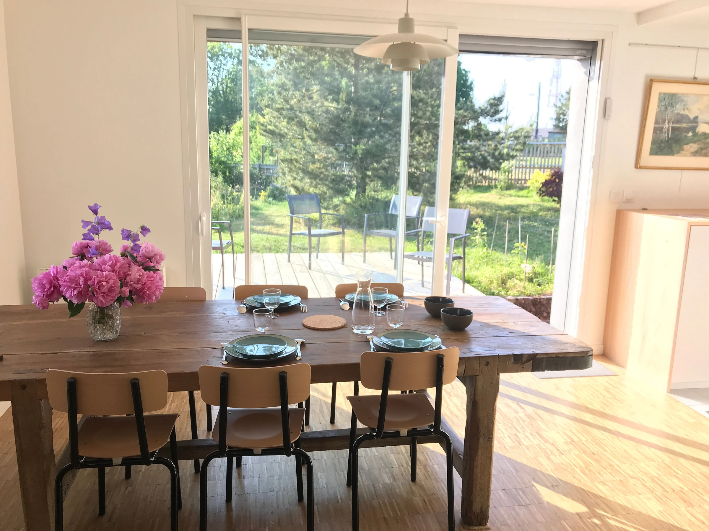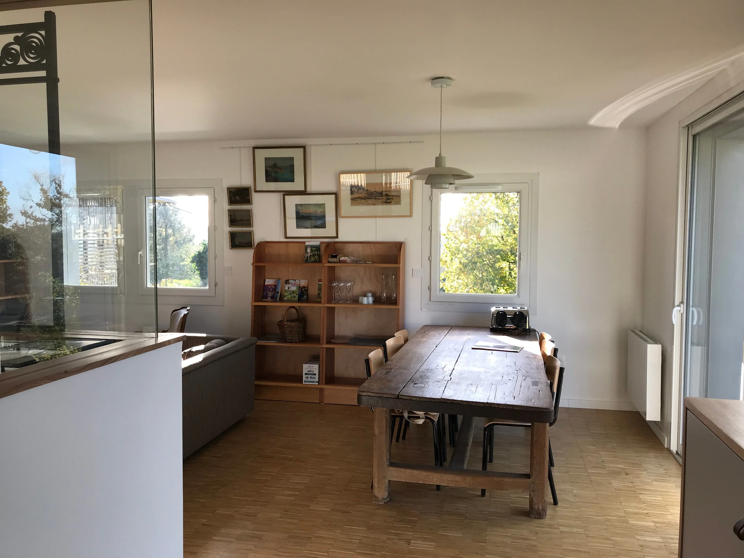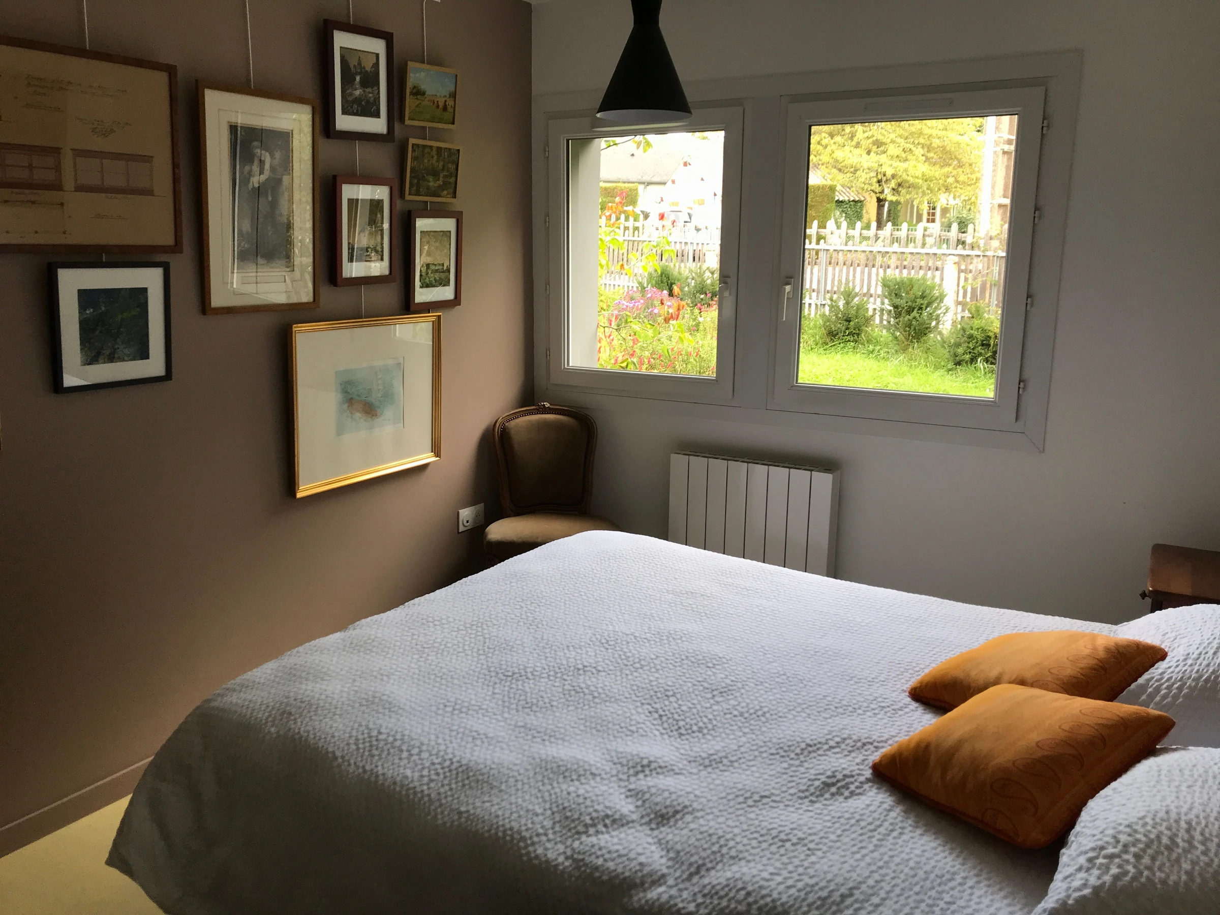 Nestled in greenery, in a very quiet area of Chartres, on the upper part of the hillside on the right bank of the Eure River, this bright and airy apartment, classified as a city break by Gîtes de France®, offers a magnificent view of the old town and the cathedral. The apartment boasts high-quality furnishings and decor, with an emphasis on bio-sourced materials (wood, wood wool, cellulose wadding, natural linoleum, water-based paint, rainwater harvesting system, etc.). The apartment is served by bus (supermarket, city center, train station, and hospital); free public parking is available directly opposite.