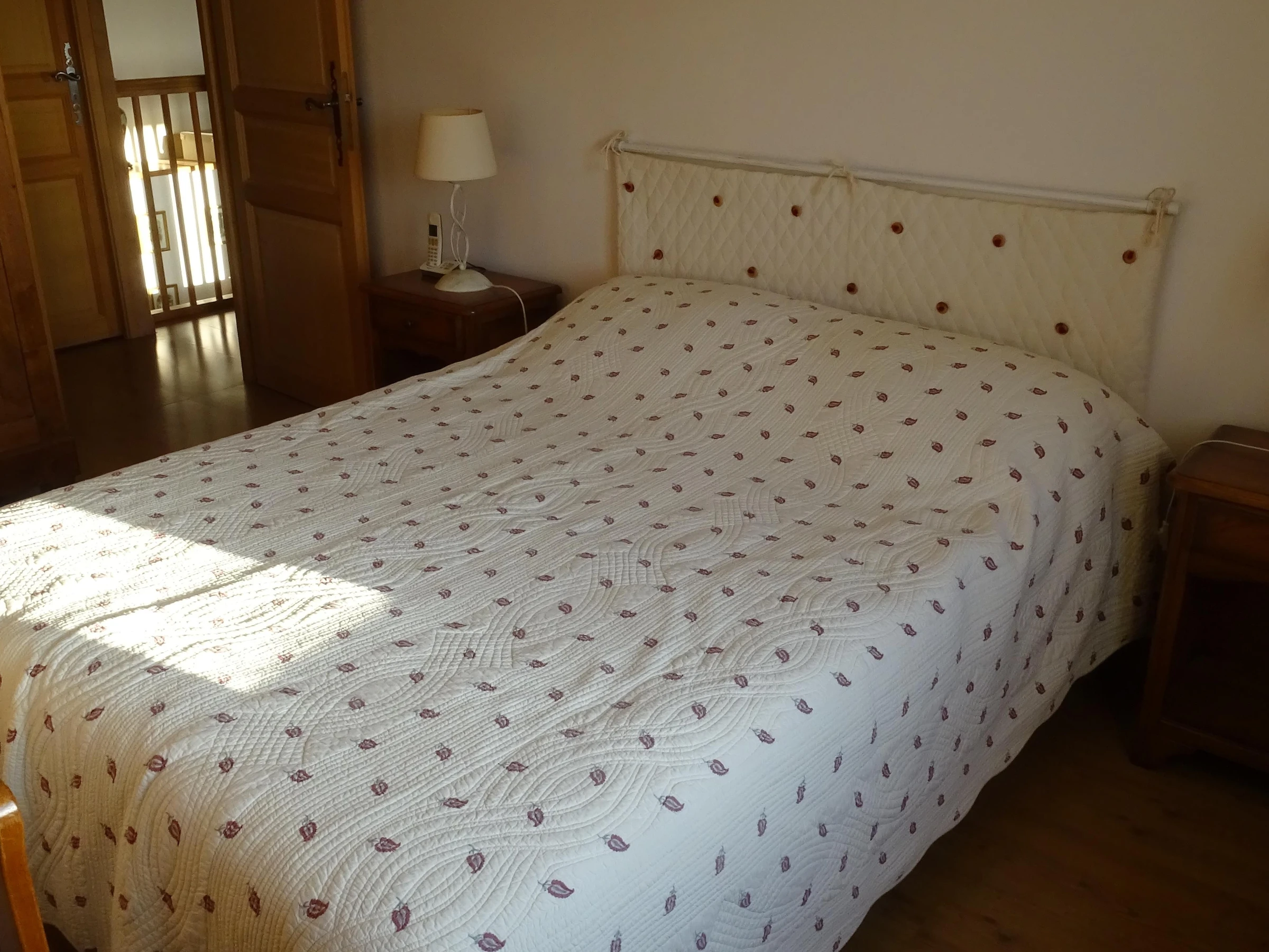 Upstairs, the staircase leads to a 15m² landing bedroom, with 2 bunk beds and a separate 12m² bedroom, equipped with a 140cm bed and a wooden baby bed with bars.