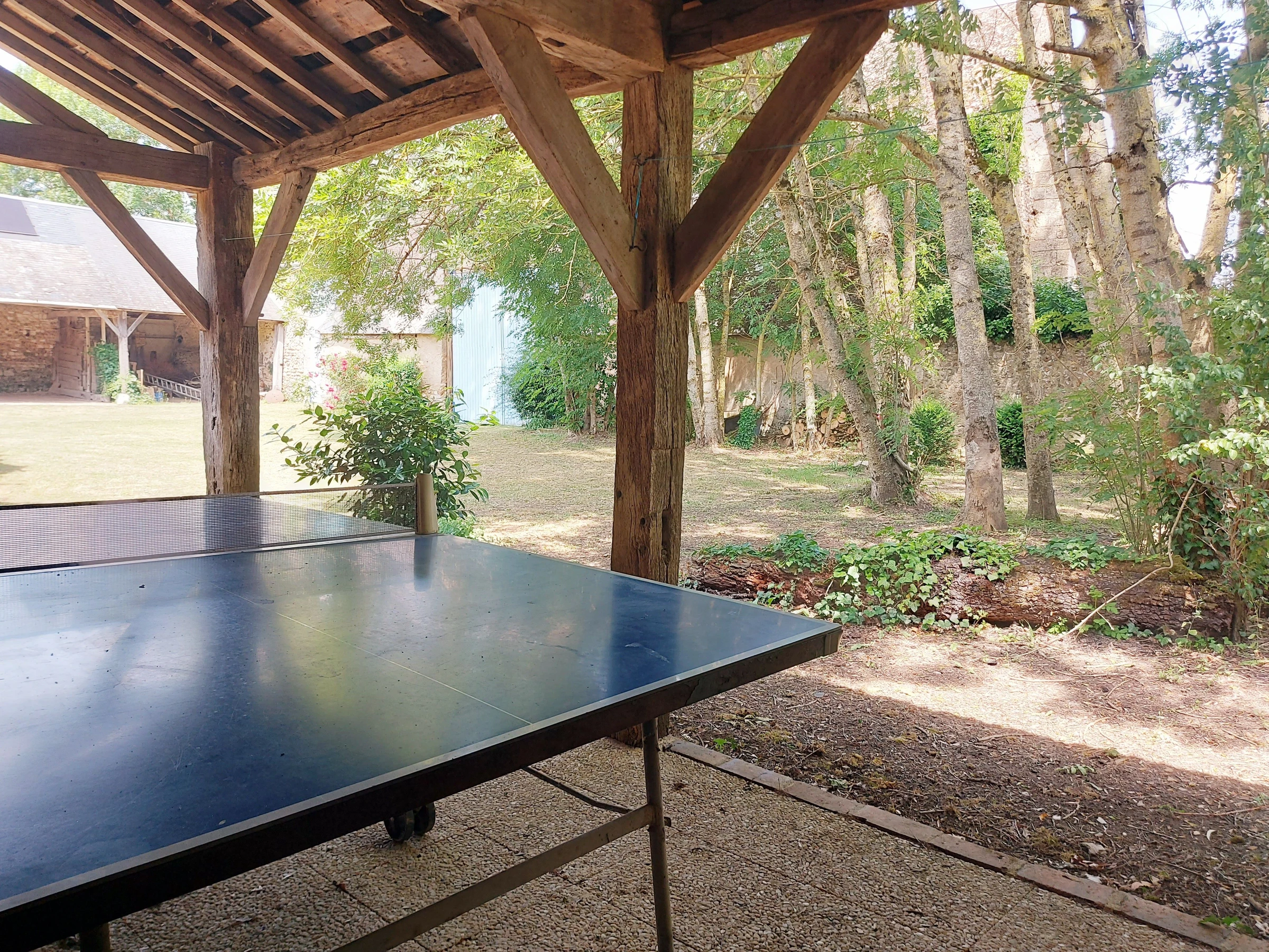Outside, you will enjoy a large 2,500 m² courtyard shared with the owners, ideal for children to play safely. A covered courtyard features a ping-pong table, perfect for socializing. Garden furniture, a barbecue, and a carport complete the amenities of this relaxing space.