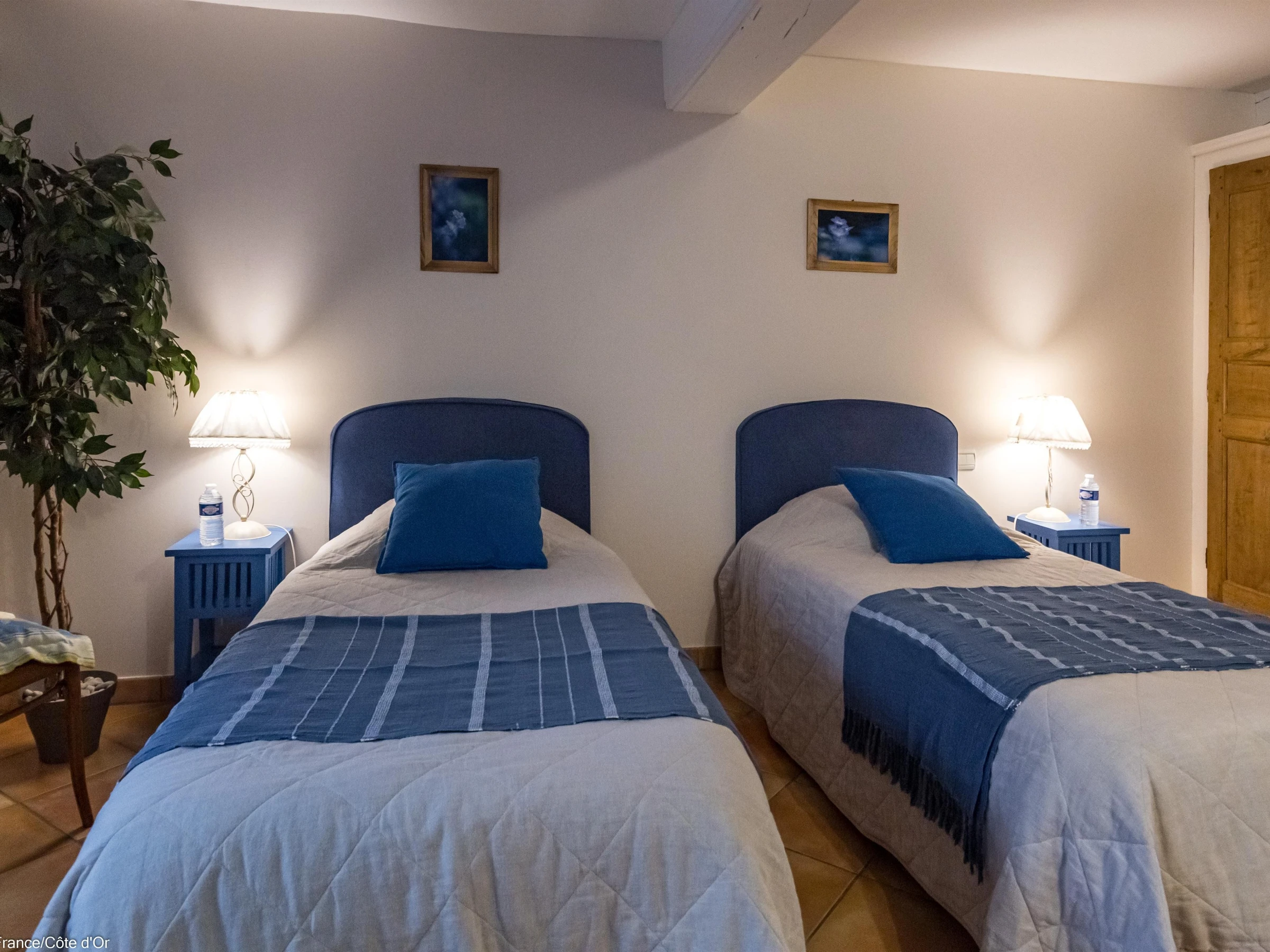 In a former farmhouse dating from 1830, completely renovated, Corinne offers 4 spacious rooms, with independent entrance, fitted out in an outbuilding. You have a large garden and several terraces offering a lovely view of the castle tower for your moments of relaxation. For the curious and the sporty, you will be spoiled for choice with a multitude of sites nearby such as the pretty medieval village of Châteauneuf en Auxois, the Chailly golf course or the Burgundy Canal. For your comfort, a small kitchen with dishes, fridge and microwave. Table d'hôtes by reservation. An ideal stopover for exploring this beautiful region. Free for children under 2 years old not using a child's bed (baby bed available). Tourist tax in addition to be paid to the owner. Pouilly-en-Auxois motorway exit only 13km away. Room for 2 people located on the 1st floor accessible by an external staircase. Exposed beams and beautiful stone fireplace. 160cm bed. Private bathroom and toilet. Direct access to a small private terrace. Flat-screen TV. Wi-Fi. Additional bedding available (€20).