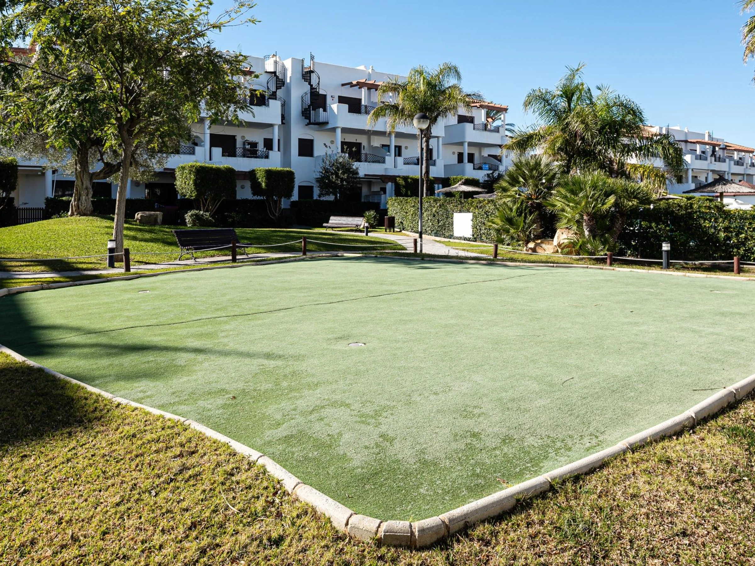 This magnificent complex includes 4 swimming pools: 2 for adults and 2 shallow ones for children. It boasts spacious landscaped communal areas, a picnic area for outdoor gatherings, a mini-golf course for sport enthusiasts, and a paddle court to stay active. Additionally, it offers assigned parking spaces to avoid any parking issues.