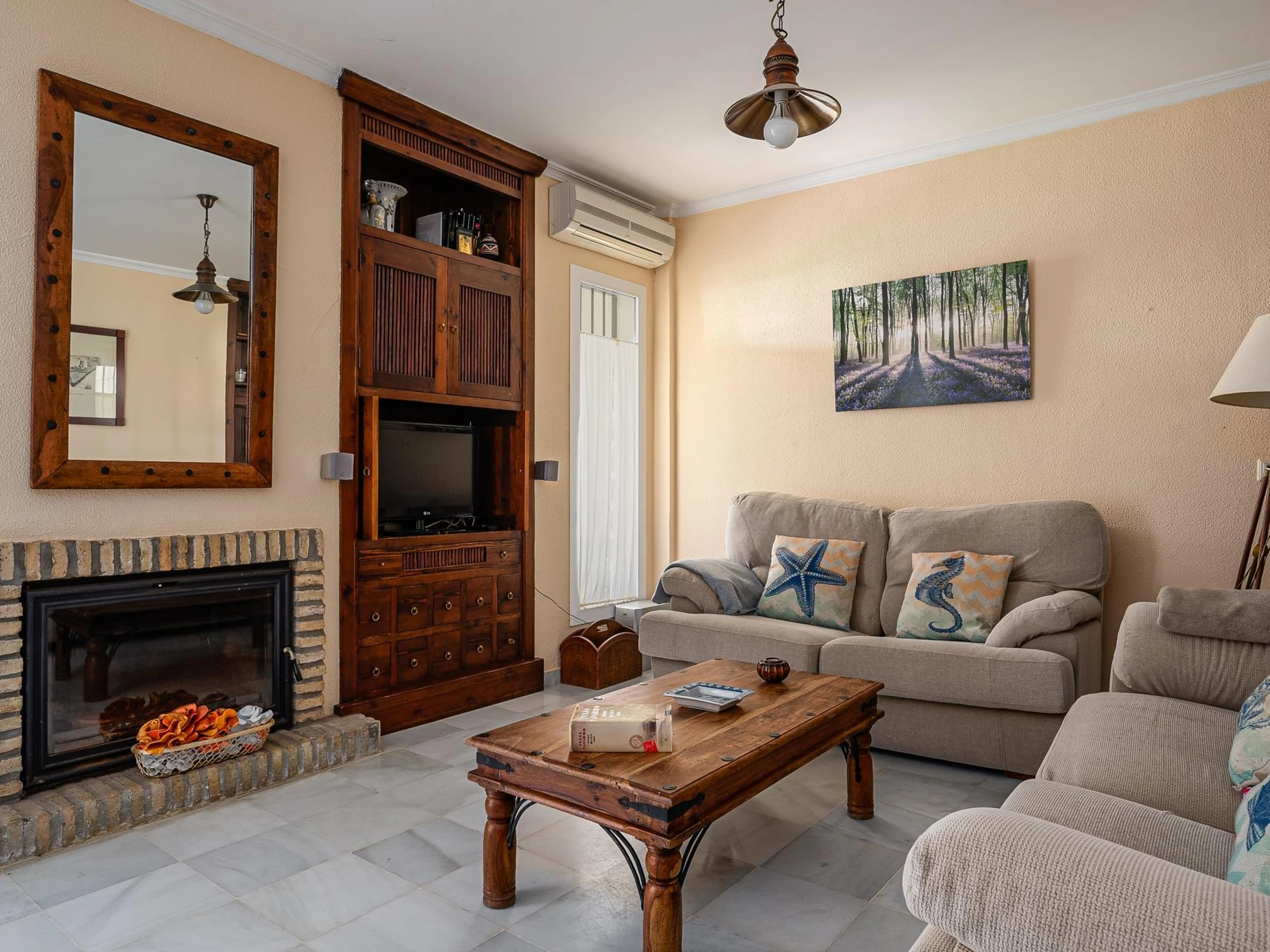 The property is distributed over two floors: ground floor and first floor. On the first floor, there are three bedrooms and a full bathroom, accommodating up to 6 people. Two of the bedrooms feature comfortable double beds, while the third bedroom is equipped with two single beds, making it perfect for families or groups of friends.